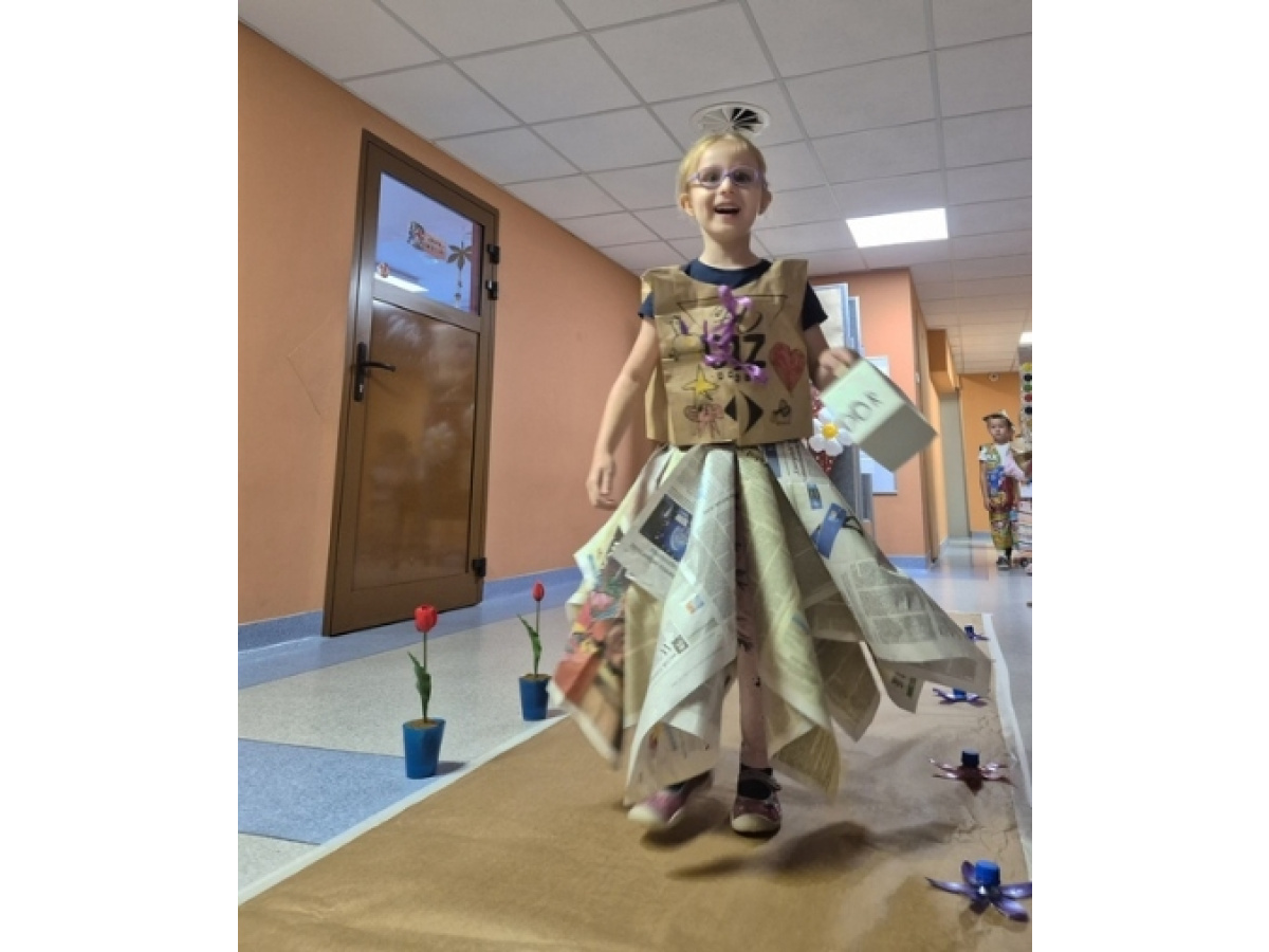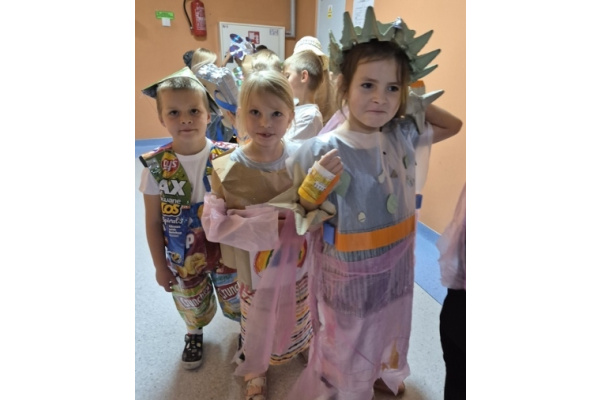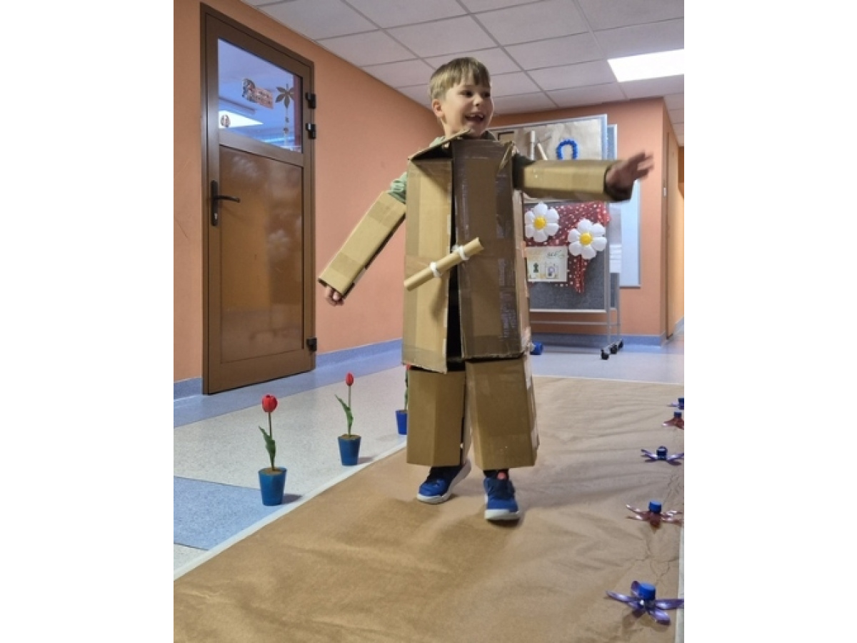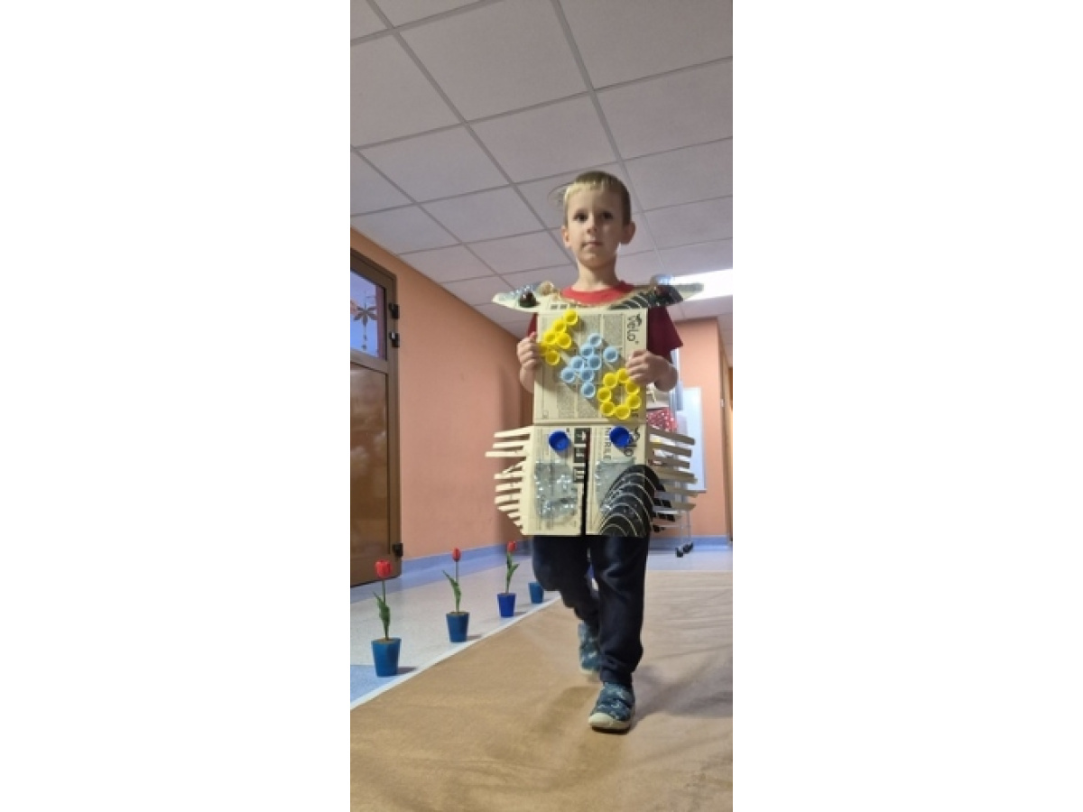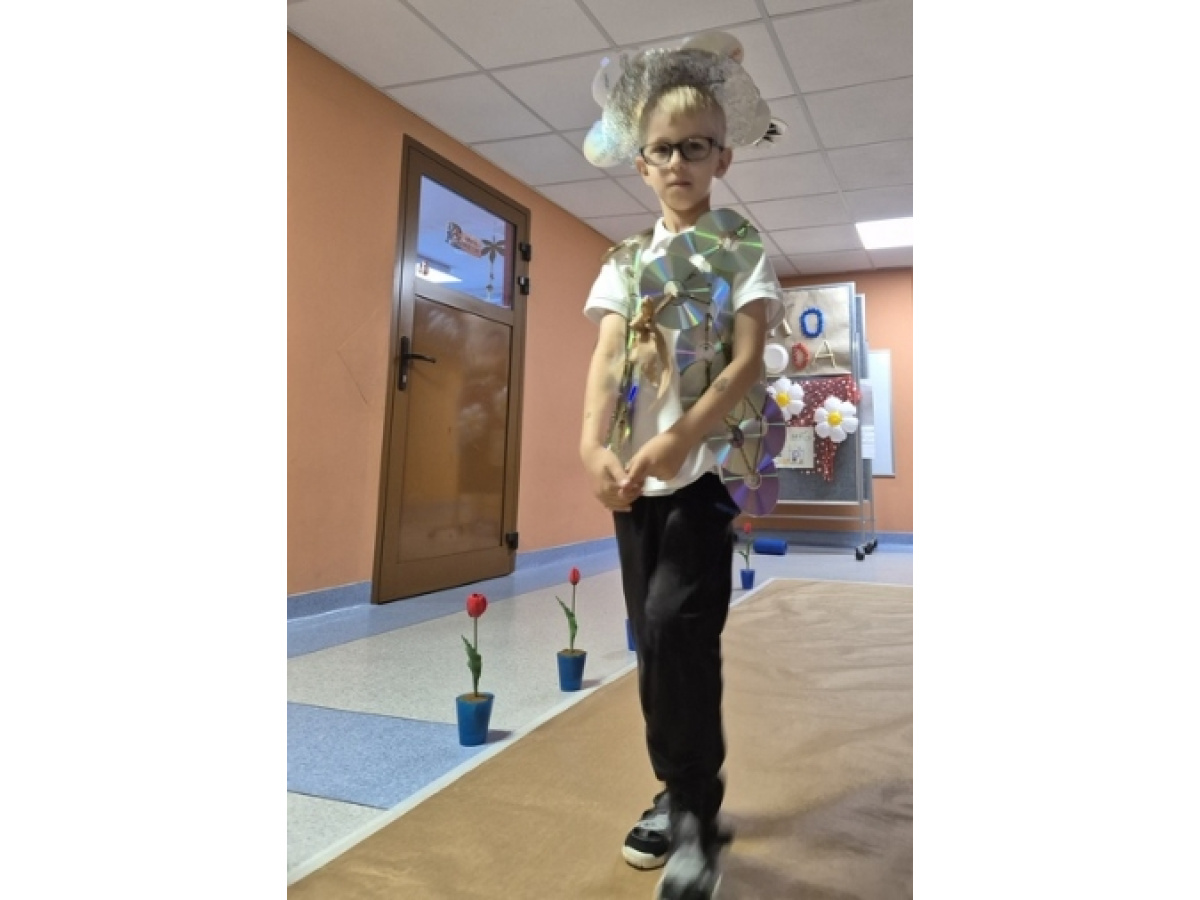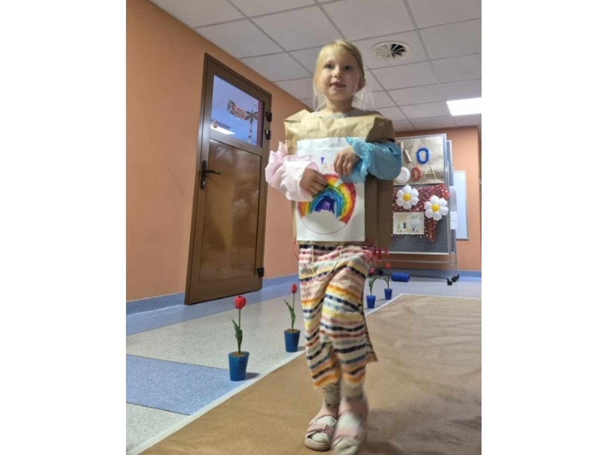 Po wspólnej pracy odbył się wyjątkowy pokaz Eko-mody, podczas którego dzieci, przy wsparciu rodziców, zaprezentowały pomysłowe stroje wykonane z materiałów przeznaczonych do recyklingu.