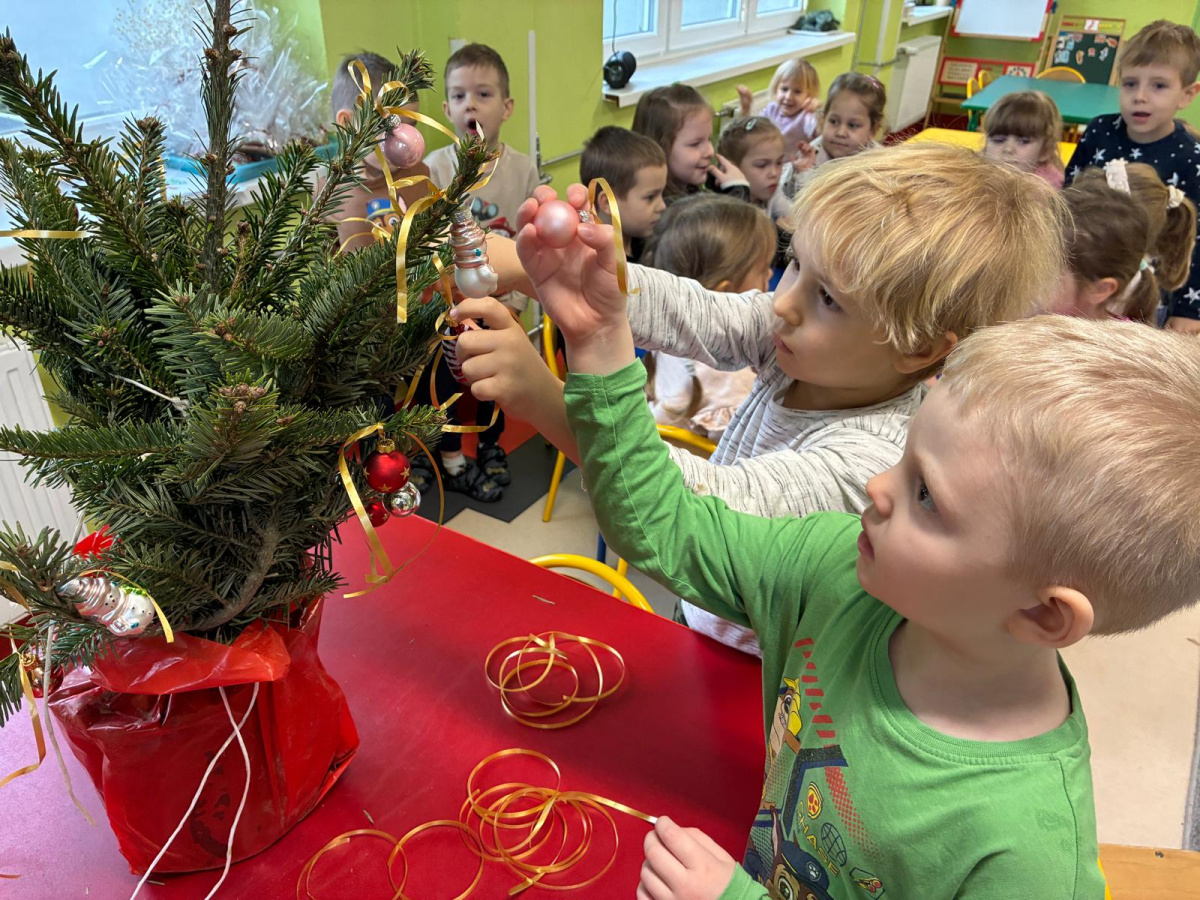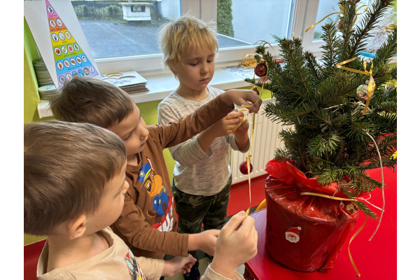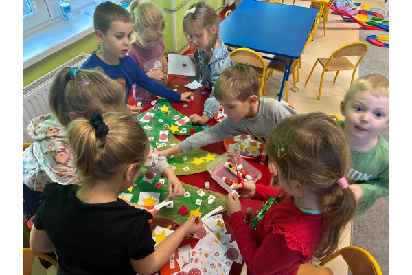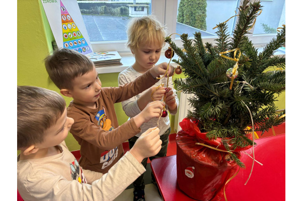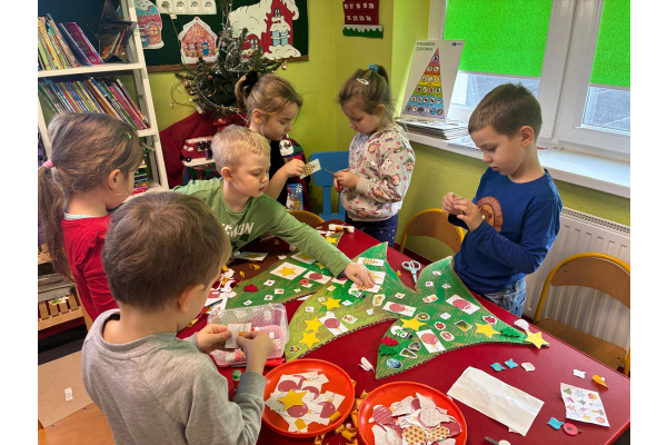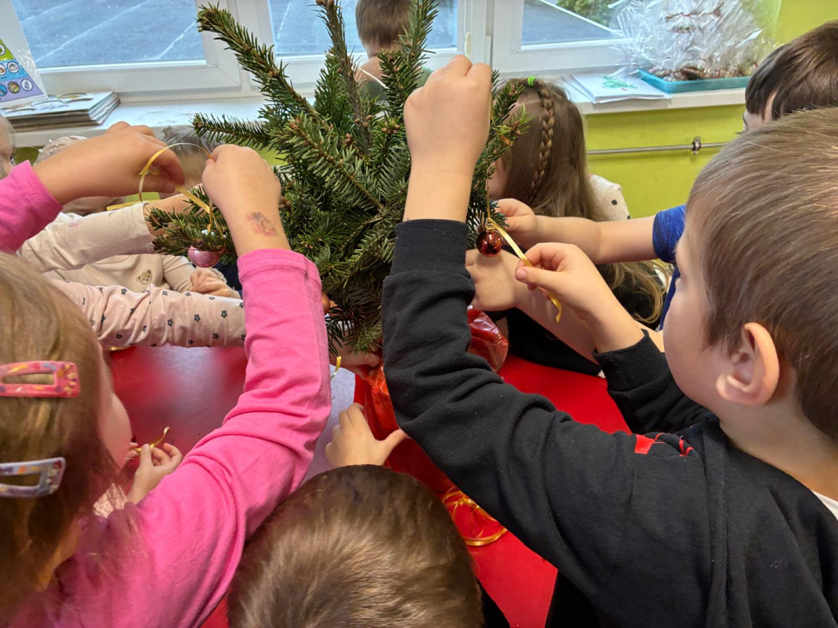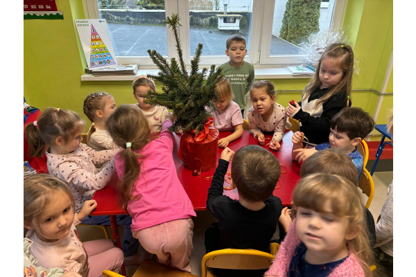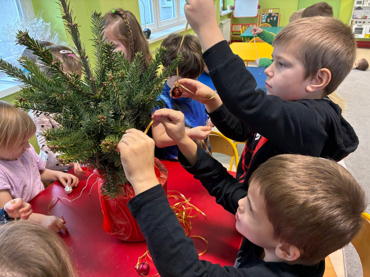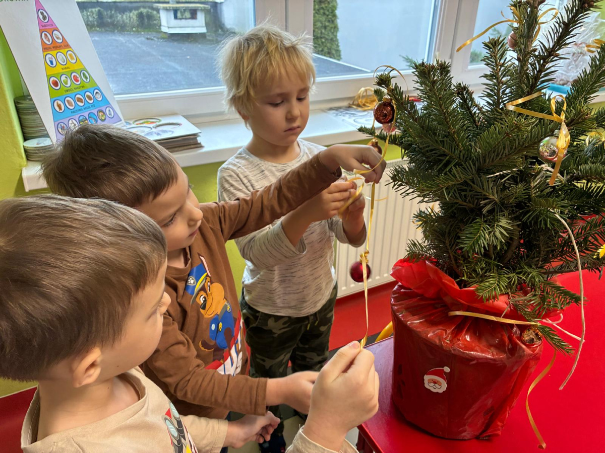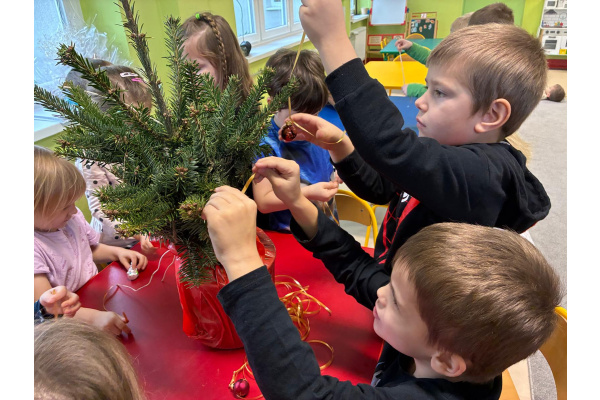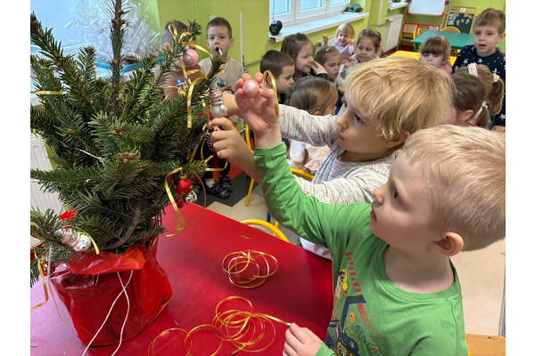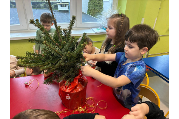 Nasza sala od dłuższego czasu jest pięknie ustrojona, ale brakowało wisienki na torcie. Królowa Choinka zagościła u nas i dopełniła świąteczny klimacik. Dodatkowo zrobiliśmy dwie kartonowe choinki i ustroiliśmy je pięknymi naklejkami.