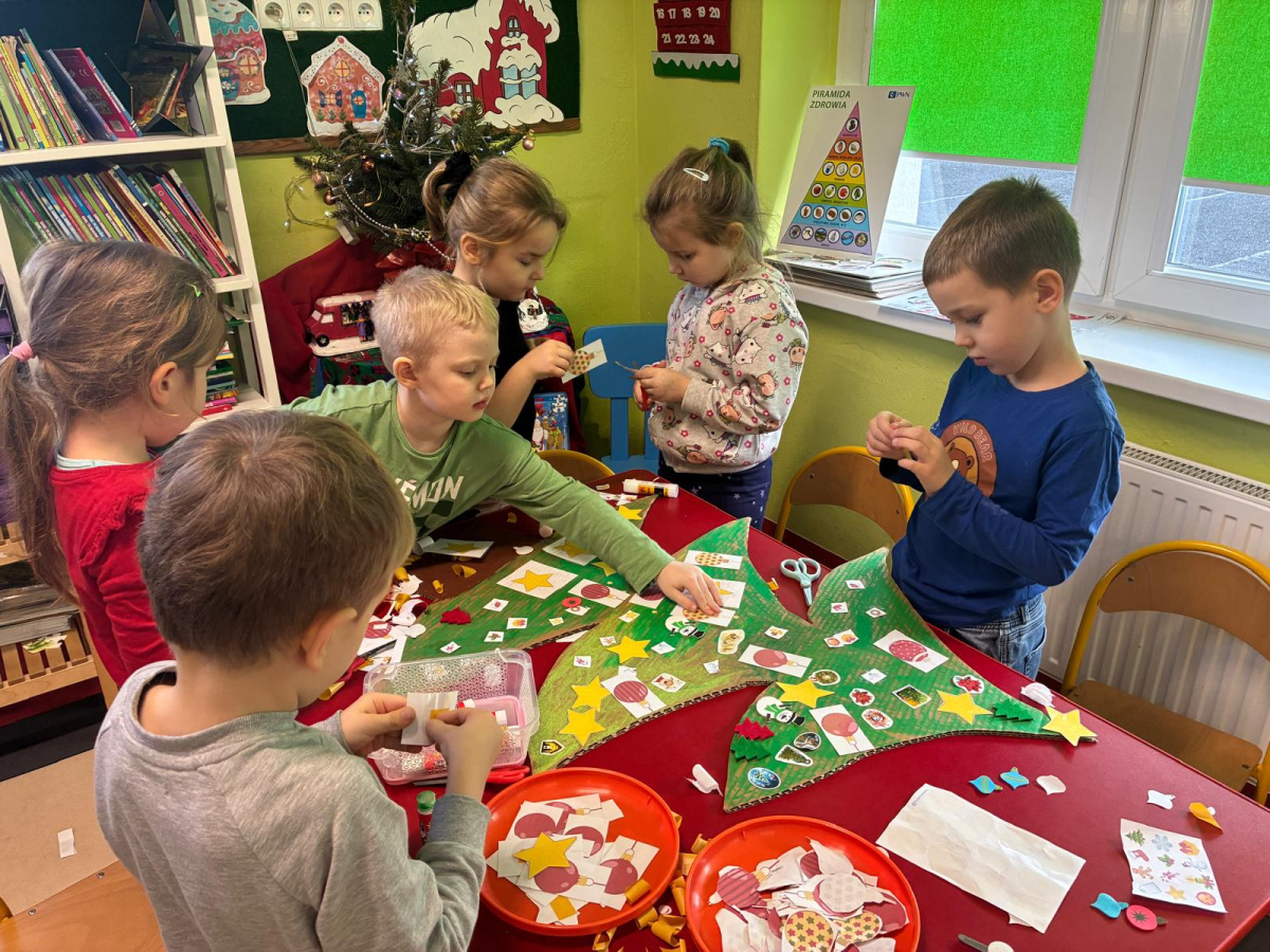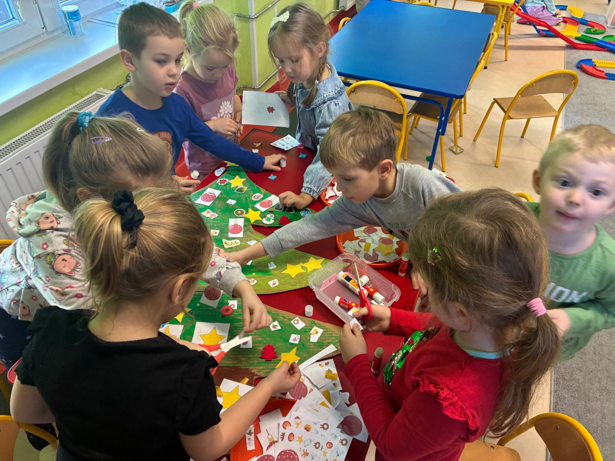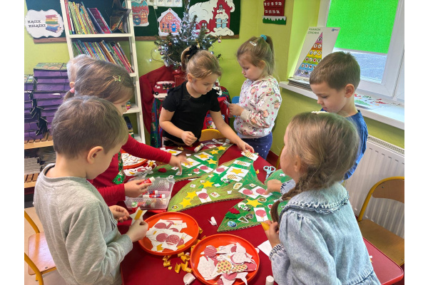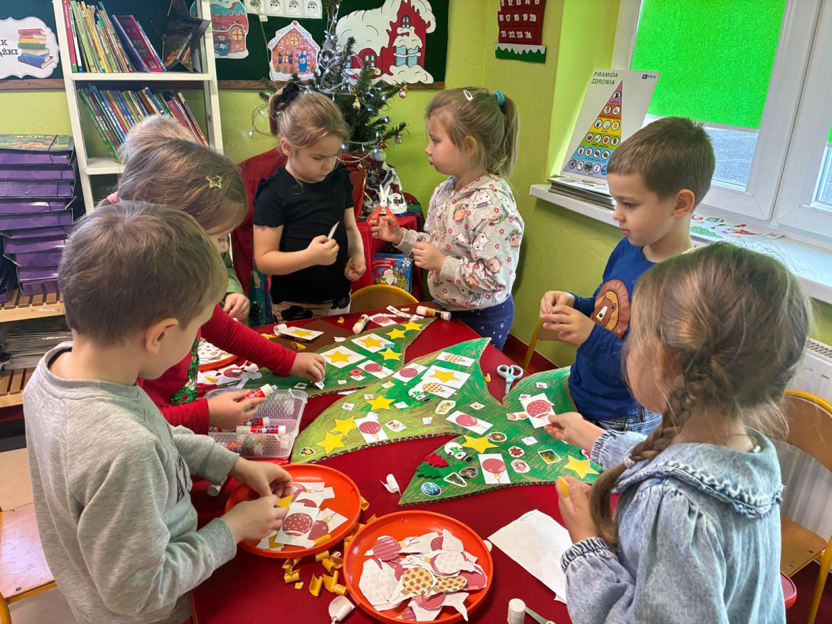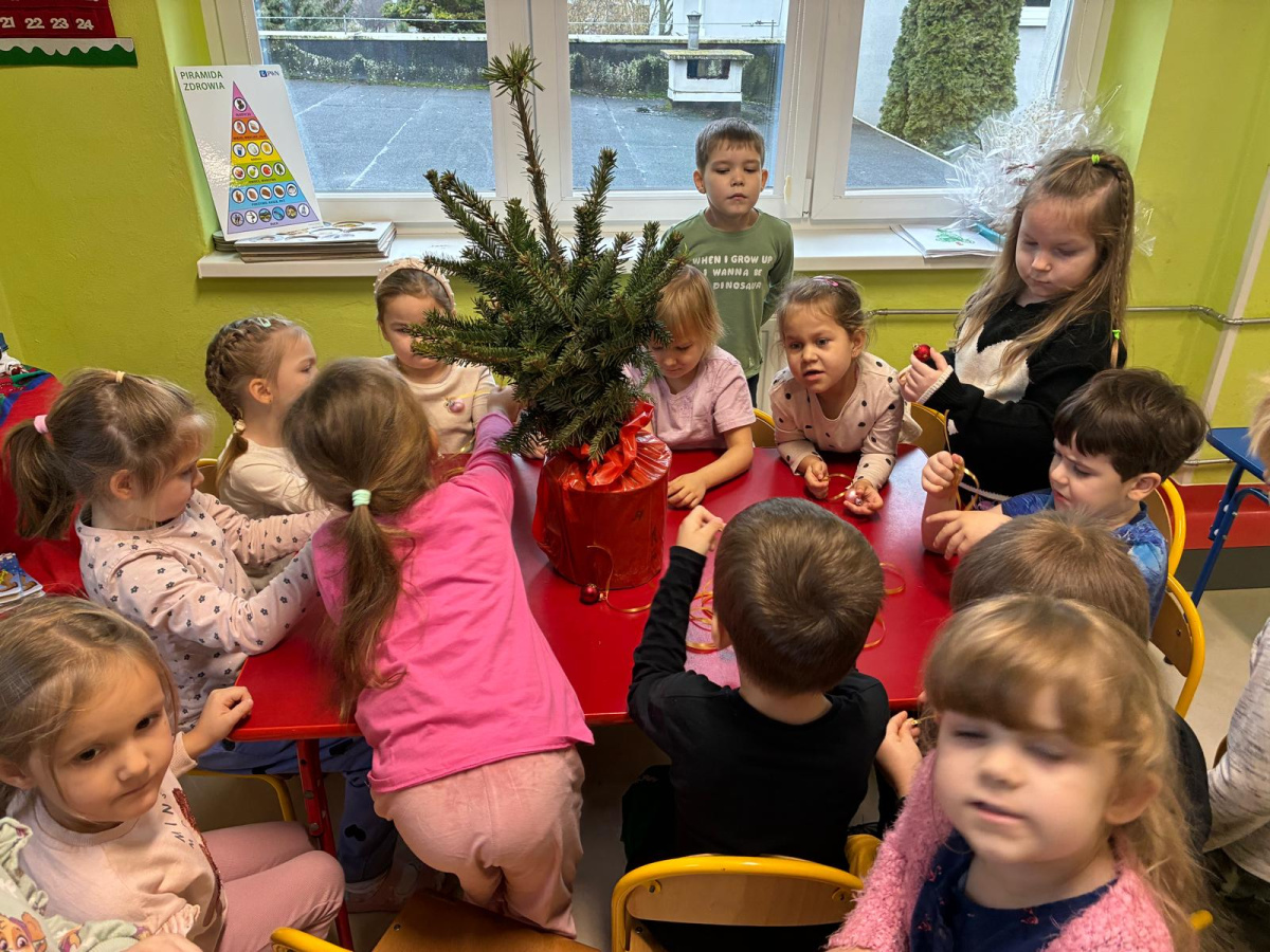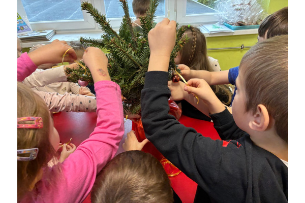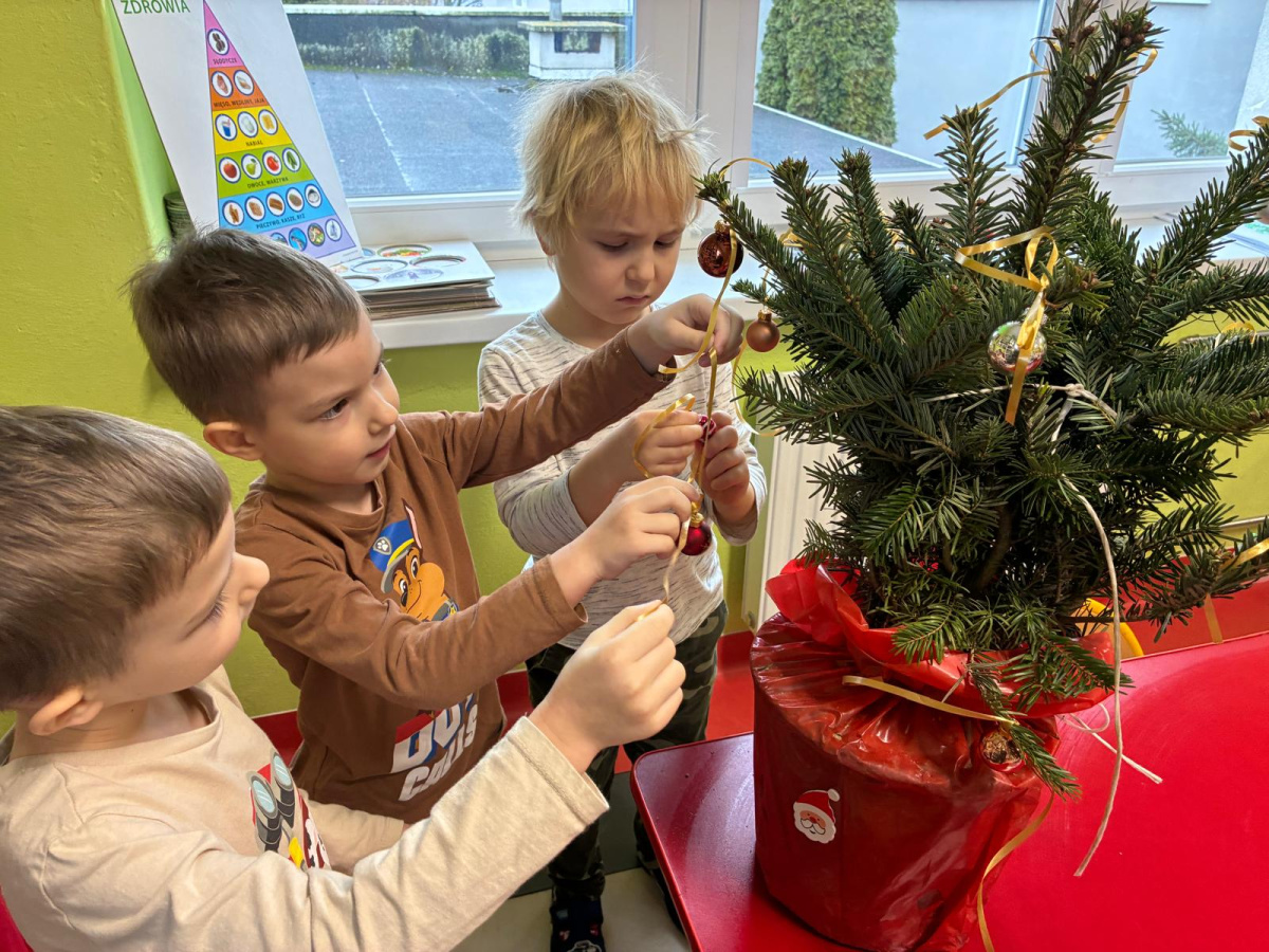 Nasza sala od dłuższego czasu jest pięknie ustrojona, ale brakowało wisienki na torcie. Królowa Choinka zagościła u nas i dopełniła świąteczny klimacik. Dodatkowo zrobiliśmy dwie kartonowe choinki i ustroiliśmy je pięknymi naklejkami.