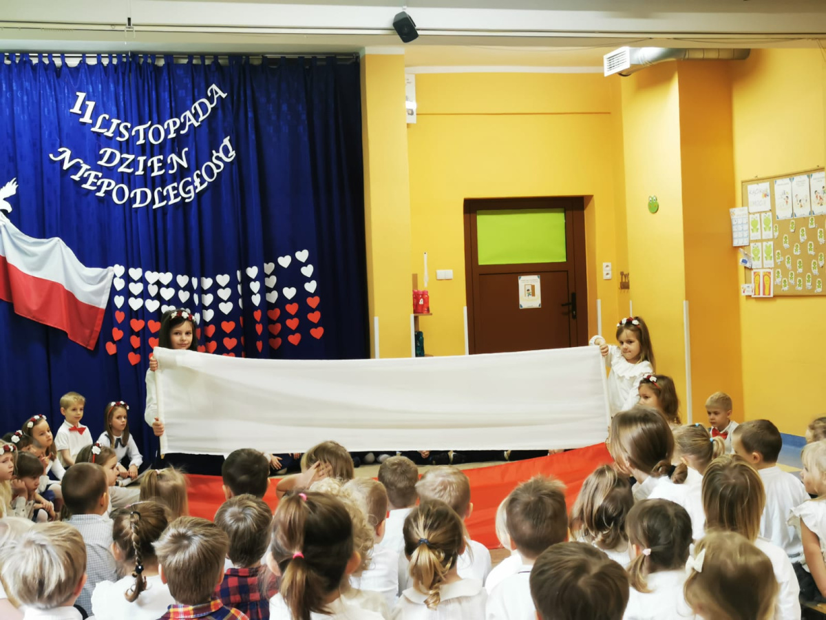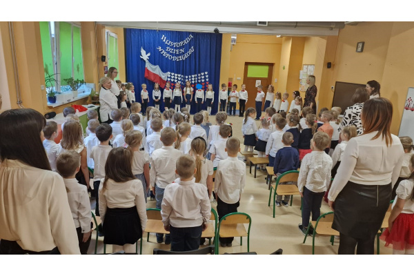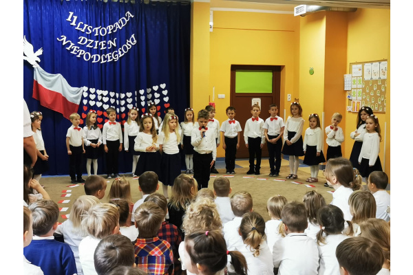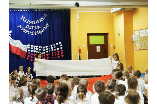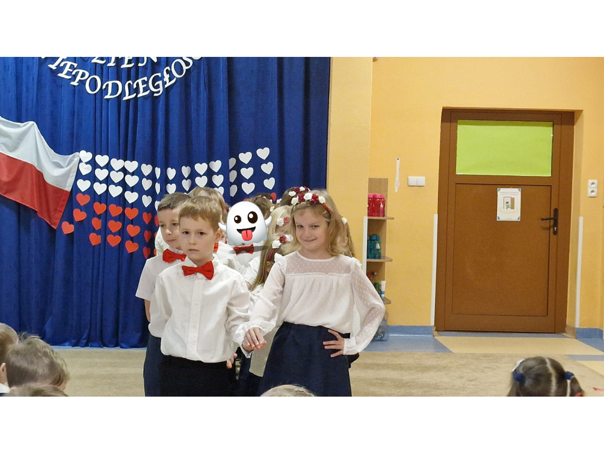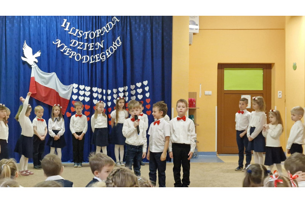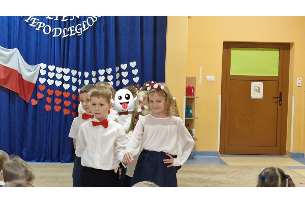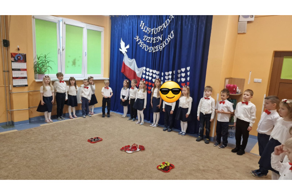 7. listopada obchodziliśmy w naszym przedszkolu Święto Odzyskania przez Polskę Niepodległości. Z tej okazji wszystkie przedszkolaki przyszły odświętnie ubrane, natomiast dzieci z najstarszej grupy 6- latków, z grupy "Żabek" zaprezentowały program muzyczno- artystyczny o tematyce patriotycznej. Były piosenki, wiersze, tańce, barwy biało- czerwone. Było dużo dumy i wzruszeń!