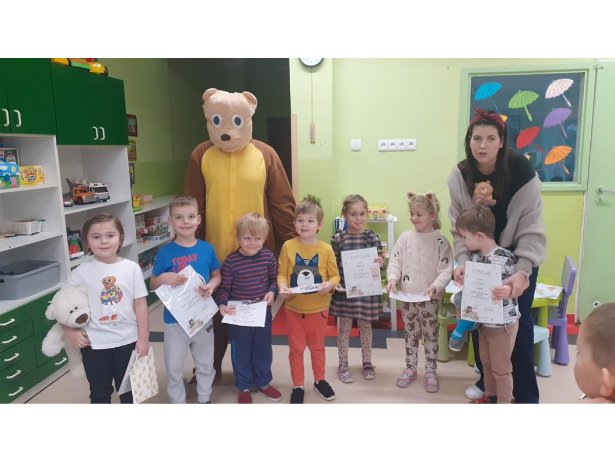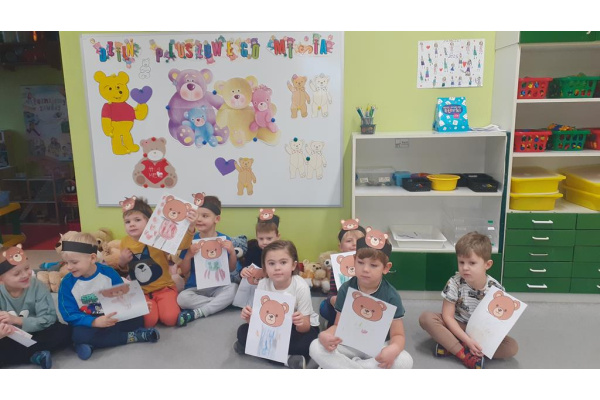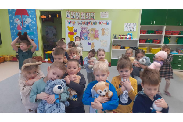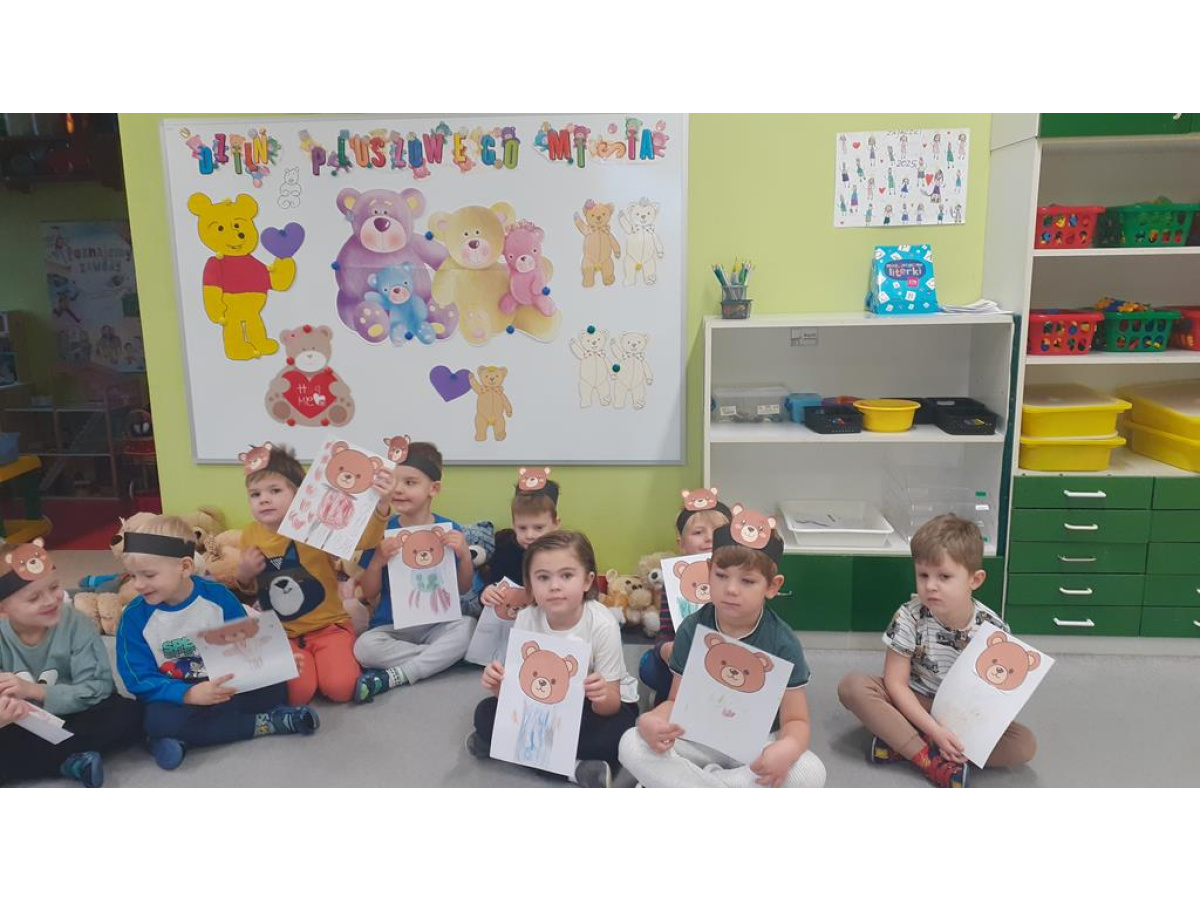 We wtorek, 25 listopada przedszkolaki przyszły do przedszkola ze swoim ulubionym misiem. Tego dnia, te miłe pluszaczki towarzyszyły dzieciom w zabawach ruchowych, muzycznych, plastycznych i relaksacyjnych. Przedszkolaki dowiedziały się o historii tego Święta. Wyrażały swoje uczucia i emocje w zabawach z misiami. Do grupy przybył DUŻY misiu, który wyróżnił dzieci biorące udział w konkursie plastycznym "Miś i Ja w moim ulubionym miejscu".