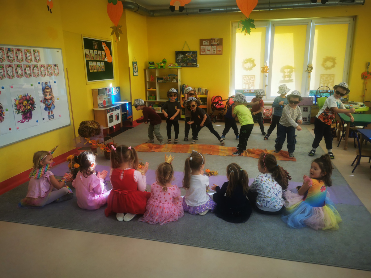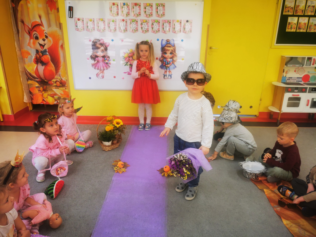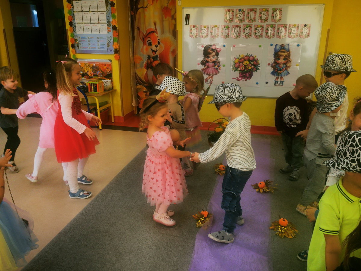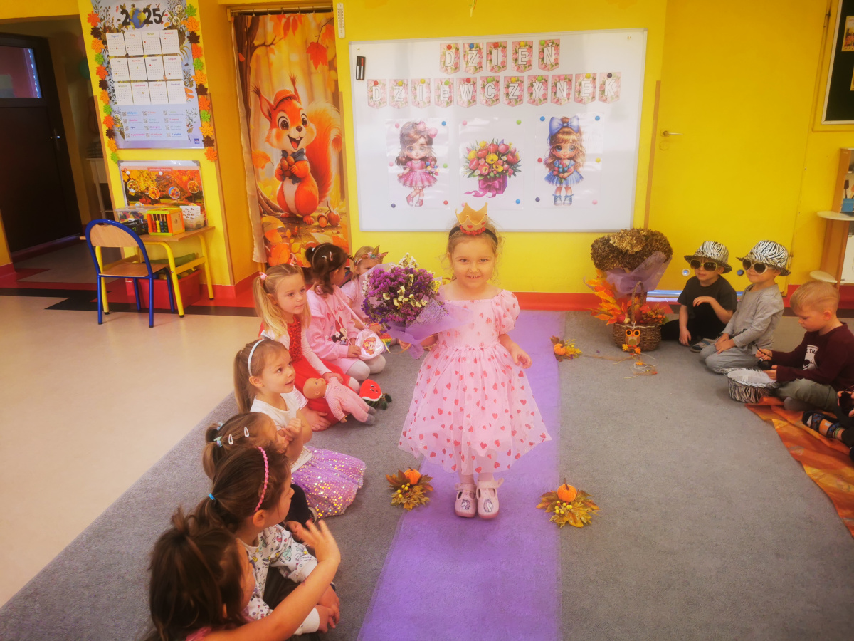 13 października w naszej grupie panowała wyjątkowa, radosna atmosfera – obchodziliśmy Dzień Dziewczynek! Wszystkie nasze małe księżniczki zachwycały swoimi pięknymi sukienkami, błyszczącą biżuterią i promiennymi uśmiechami. Podczas pokazu mody dziewczynki z dumą prezentowały swoje stylizacje, zdobywając gromkie brawa od kolegów. Chłopcy przygotowali dla swoich koleżanek laurki, kwiaty oraz taneczny występ, który był prawdziwą niespodzianką. Na zakończenie wszyscy bawili się wspólnie przy muzyce, tańcząc w parach i śmiejąc się do woli.