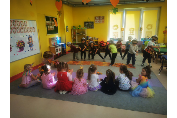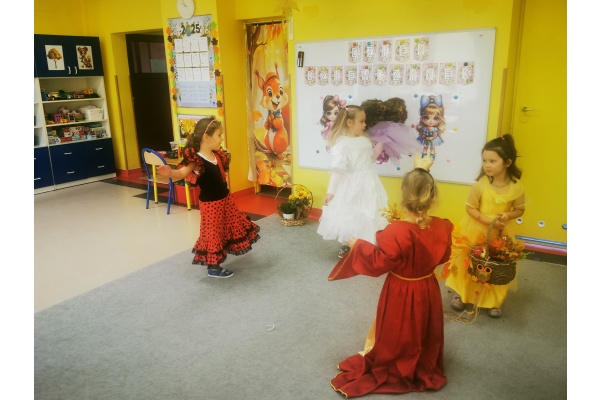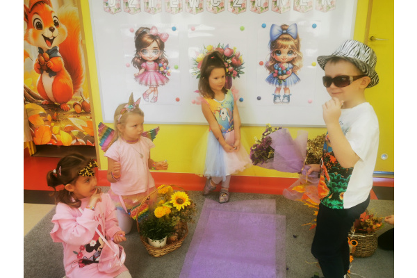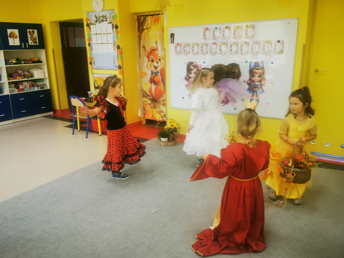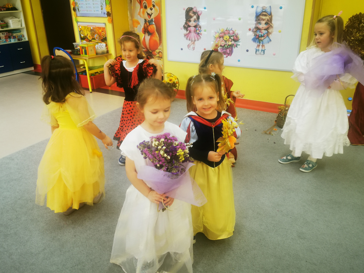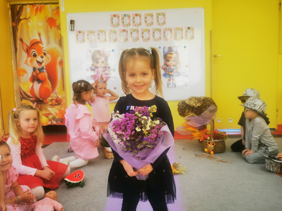13 października w naszej grupie panowała wyjątkowa, radosna atmosfera – obchodziliśmy Dzień Dziewczynek! Wszystkie nasze małe księżniczki zachwycały swoimi pięknymi sukienkami, błyszczącą biżuterią i promiennymi uśmiechami. Podczas pokazu mody dziewczynki z dumą prezentowały swoje stylizacje, zdobywając gromkie brawa od kolegów. Chłopcy przygotowali dla swoich koleżanek laurki, kwiaty oraz taneczny występ, który był prawdziwą niespodzianką. Na zakończenie wszyscy bawili się wspólnie przy muzyce, tańcząc w parach i śmiejąc się do woli.