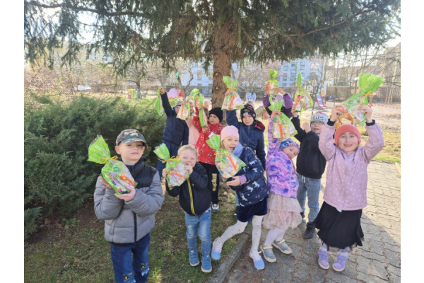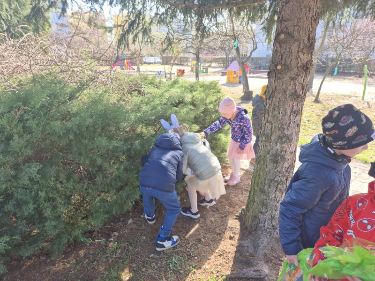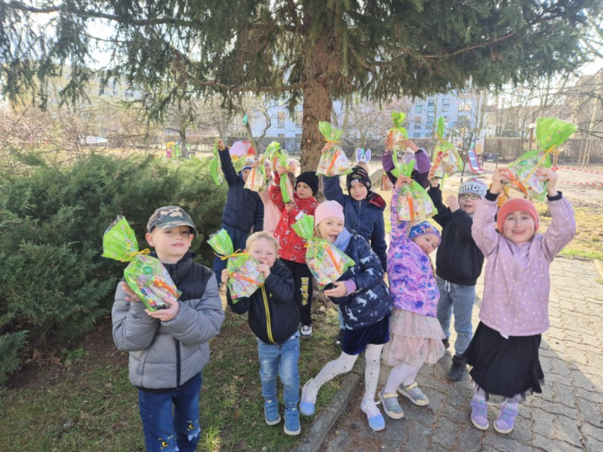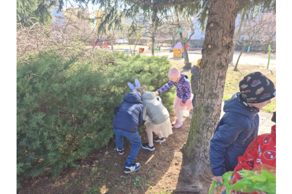 Dzieci z grupy Kreciki w minionym tygodniu poszukiwały wielkanocnych niespodzianek ukrytych w przedszkolnym ogrodzie. Z ogromnym zaangażowaniem i ciekawością odkrywały kolejne schowane upominki, czerpiąc z tego wiele radości :)