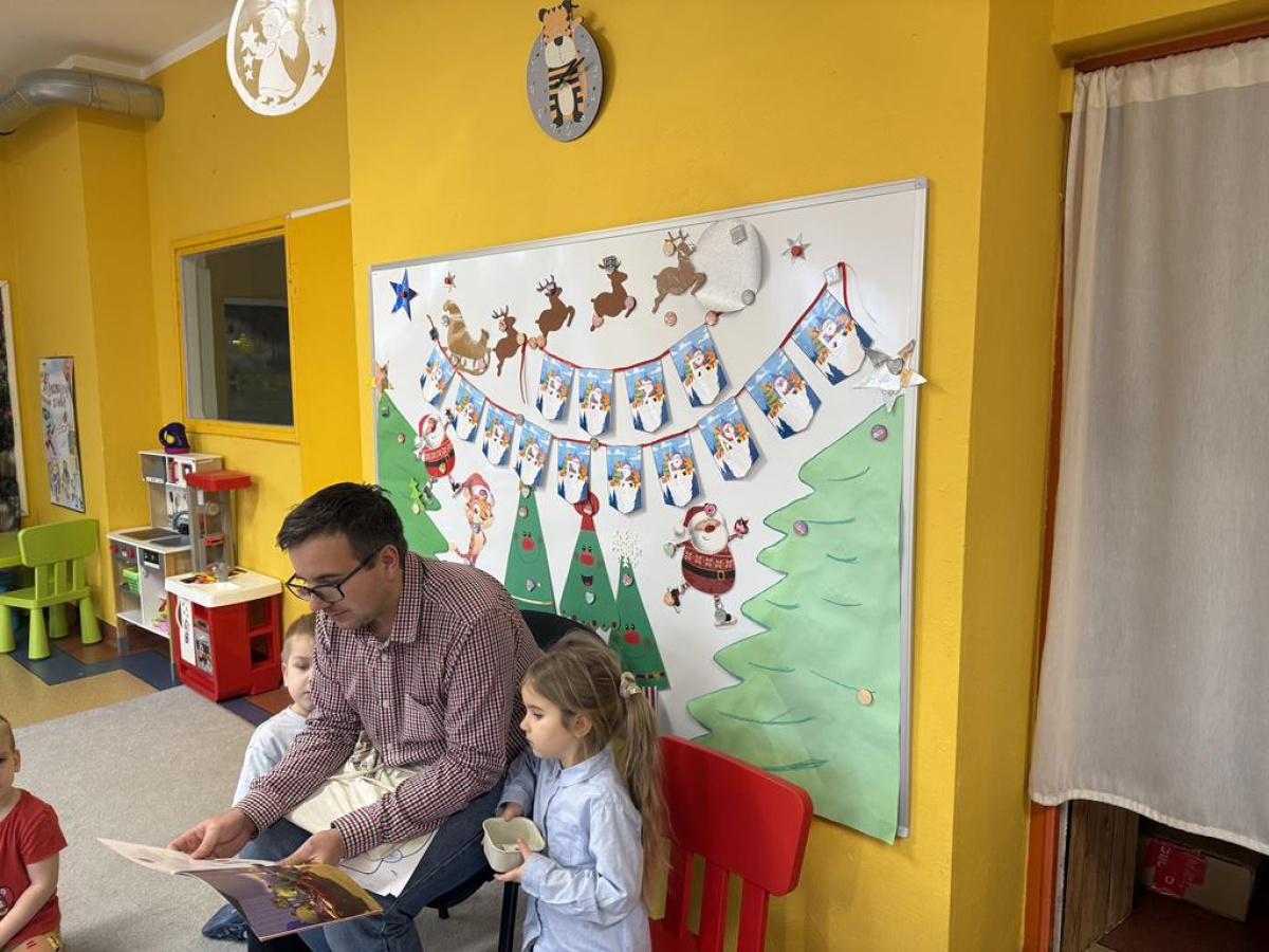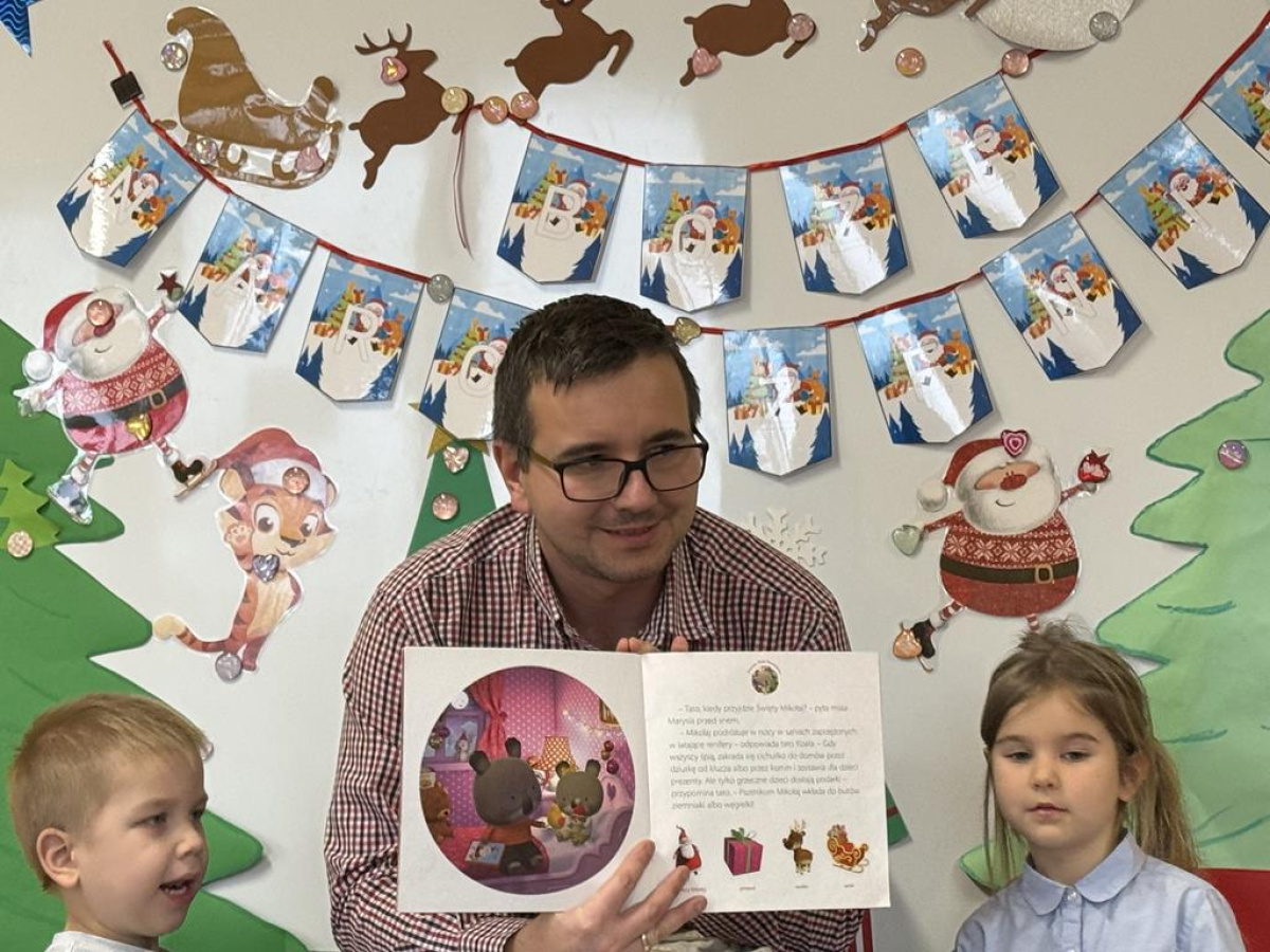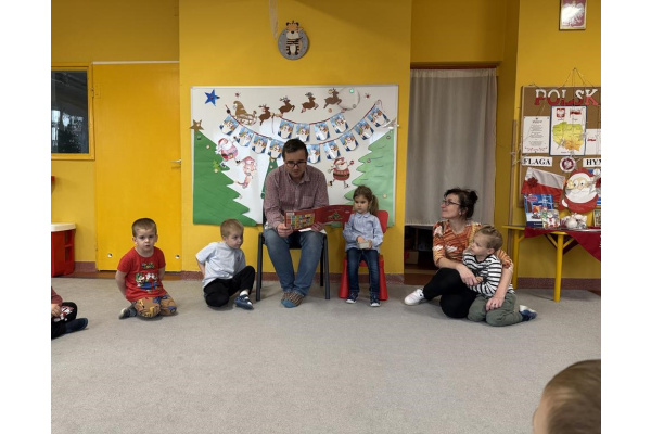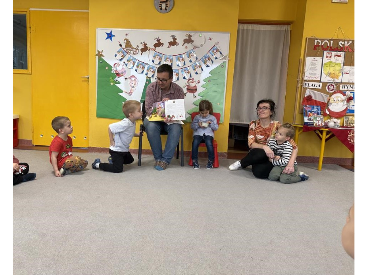 Przed Świętami naszą grupę odwiedził tata Liwki, aby przeczytać dzieciom bajkę pod tytułem "Marysia i Boże Narodzenie" o kilkuteniej dziewczynce, która przeżywa piękne Święta. Pan Damian przeczytał Tygryskom również jedną z opowieści biblijnych Nowego Testamentu dla dzieci. Tygryski wysłuchały obu opowiadań, które przybliżyły dzieciom istotę Świąt Bożego Narodzenia, każda na swój sposób. Tacie Liwii bardzo dziękujemy za odwiedziny i zapraszamy do nas ponownie!