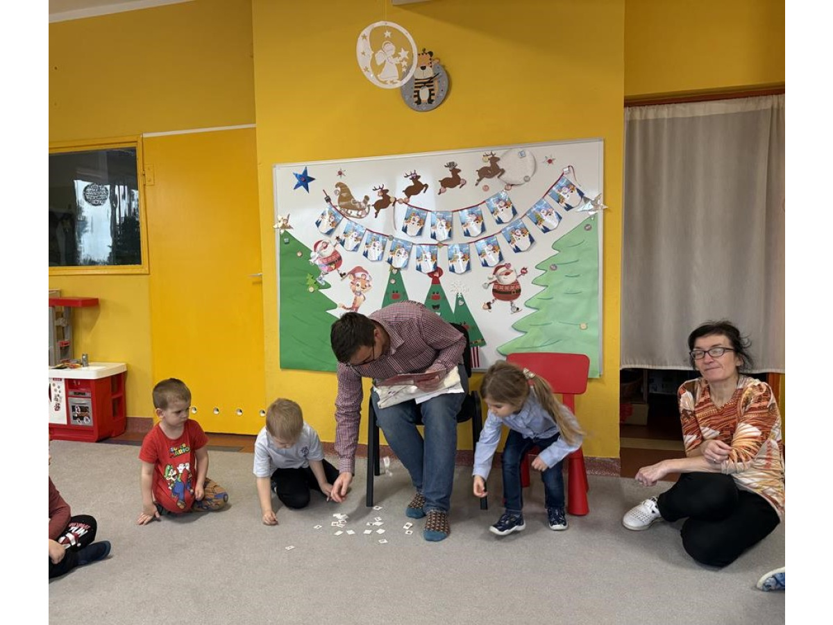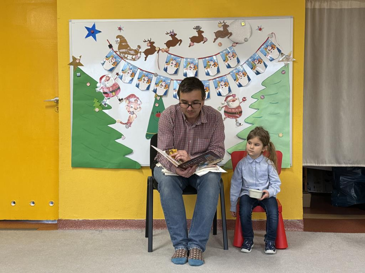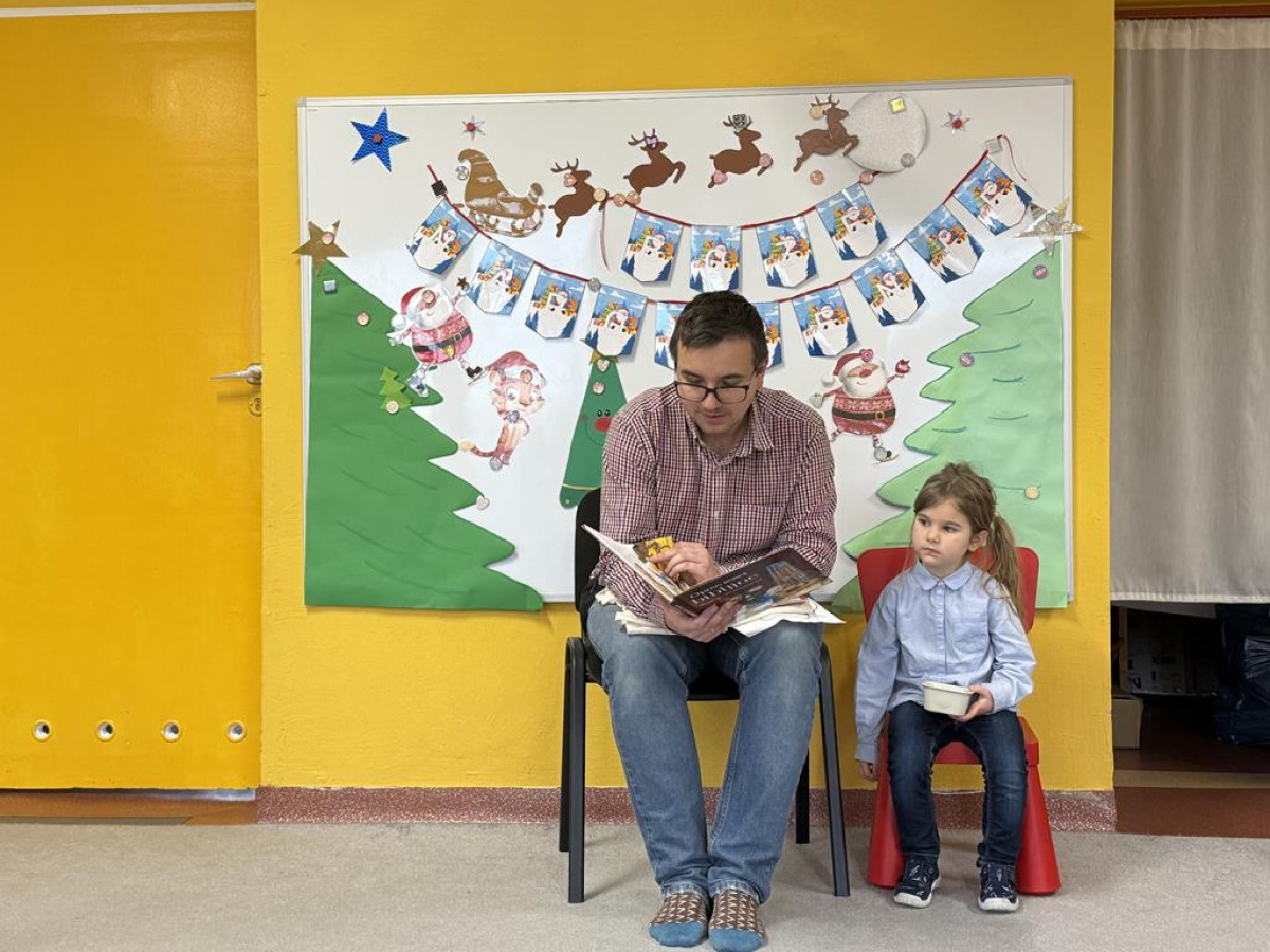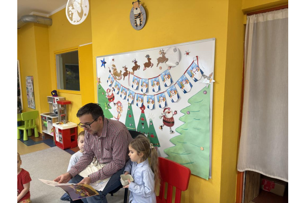 Przed Świętami naszą grupę odwiedził tata Liwki, aby przeczytać dzieciom bajkę pod tytułem "Marysia i Boże Narodzenie" o kilkuteniej dziewczynce, która przeżywa piękne Święta. Pan Damian przeczytał Tygryskom również jedną z opowieści biblijnych Nowego Testamentu dla dzieci. Tygryski wysłuchały obu opowiadań, które przybliżyły dzieciom istotę Świąt Bożego Narodzenia, każda na swój sposób. Tacie Liwii bardzo dziękujemy za odwiedziny i zapraszamy do nas ponownie!