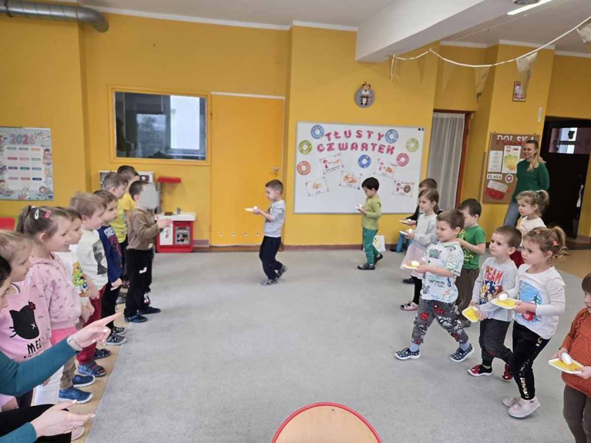 "Powiedział Bartek, że dziś tłusty czwartek, a Bartkowa uwierzyła, tłustych pączków nasmażyła". 12. lutego obchodziliśmy w naszej grupie Tłusty Czwartek. Dzieci brały udział w wielu zabawach z pączkami w roli głównej. Tym samym rozpoczęliśmy ostatni tydzień karnawału, który zakończył się balem karnawałowym.