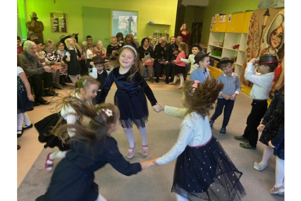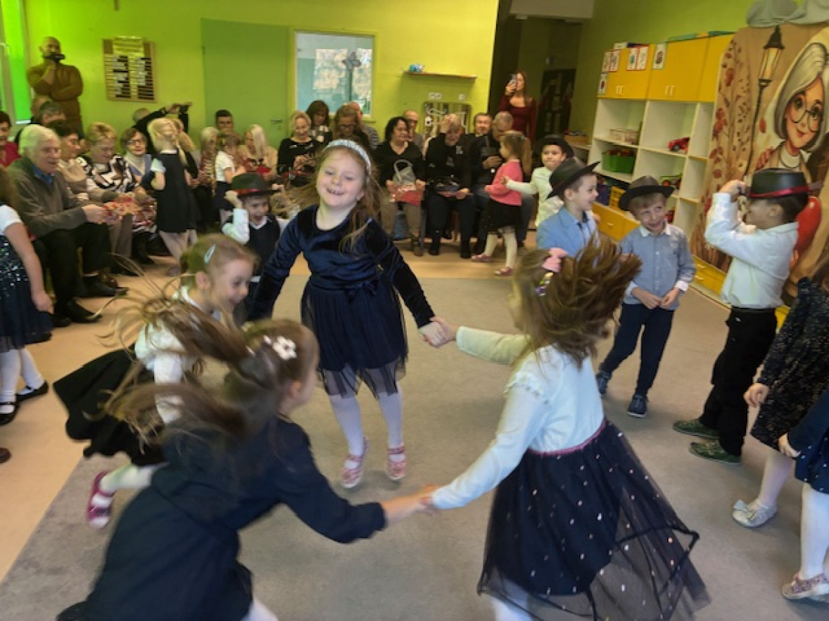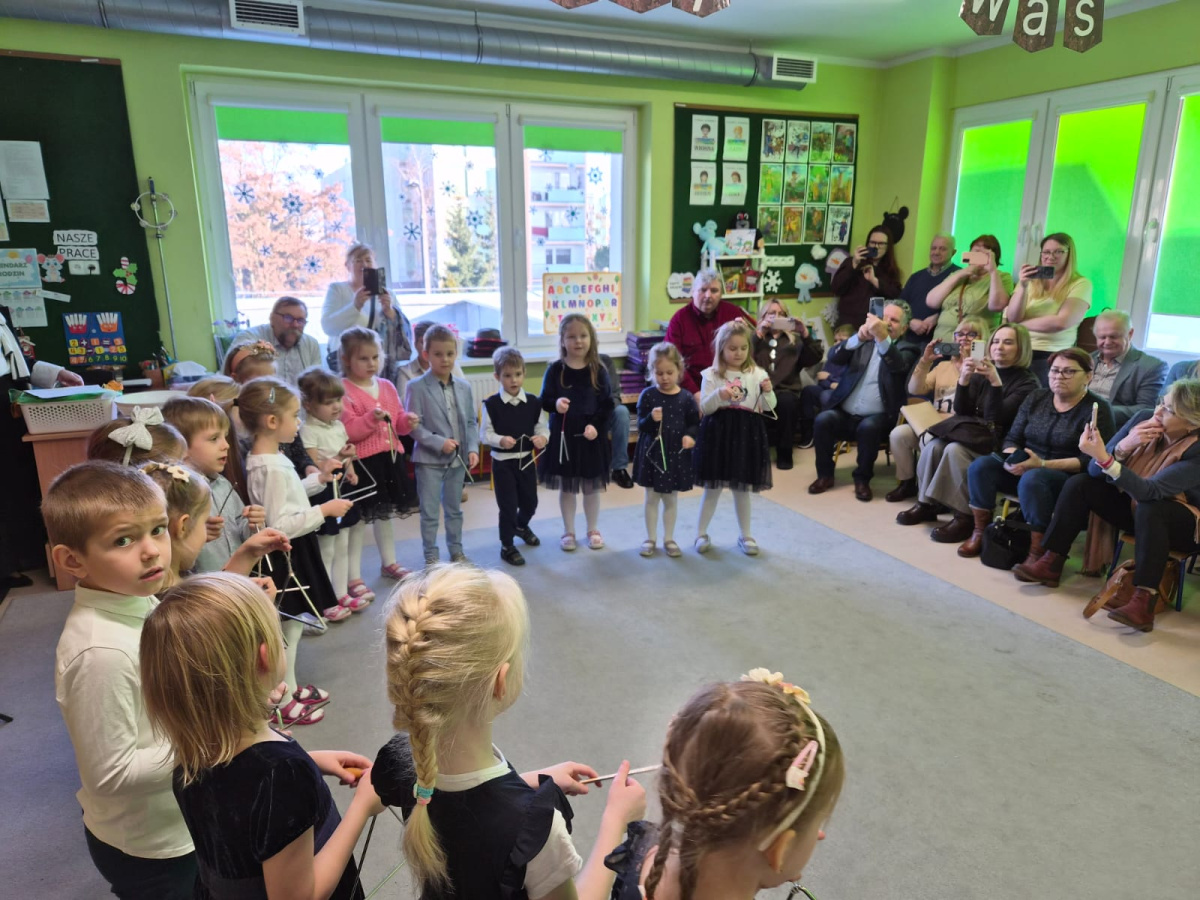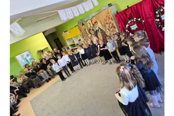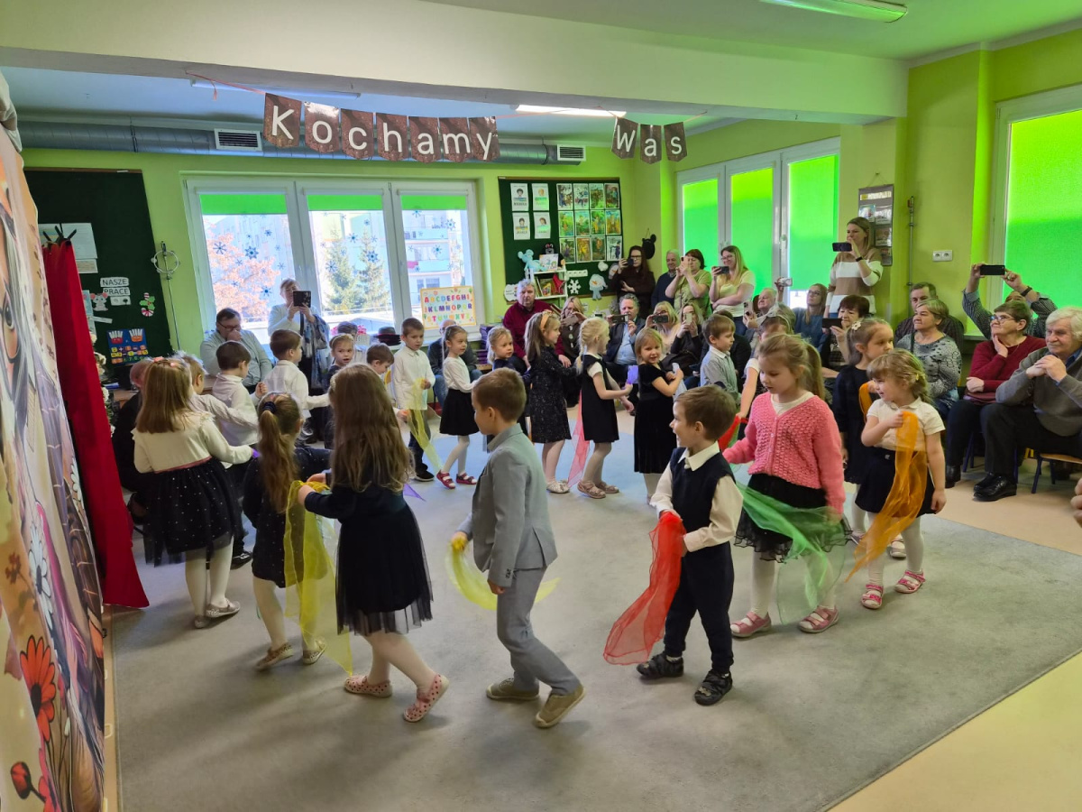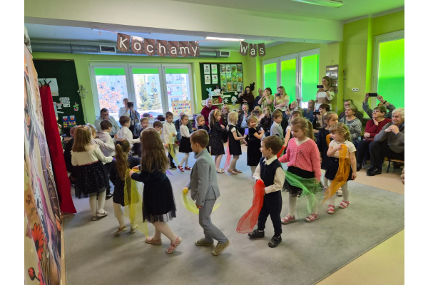 Z okazji święta Babci i Dziadka dzieci z grupy „Myszek” zaprezentowały program artystyczny, recytując wiersze, śpiewając piosenki oraz tańcząc taniec z chustami. Przedszkolaki zagrały również na instrumentach do piosenki „Wesoły dziadek”. Na zakończenie dzieci wręczyły upominki, przytulały się do dziadków i dziękowały im za wspólnie spędzony czas.