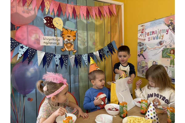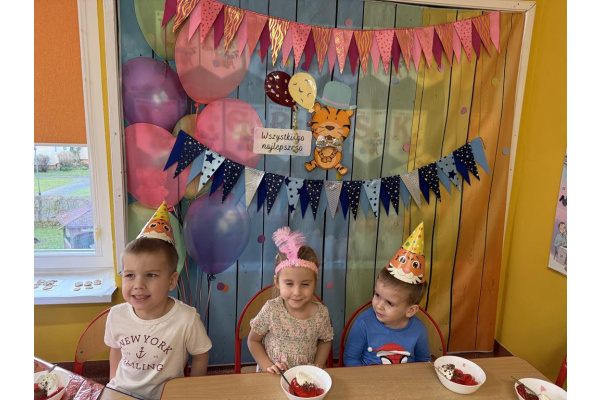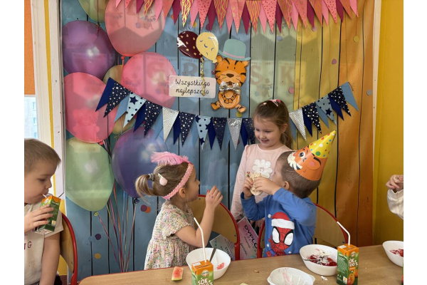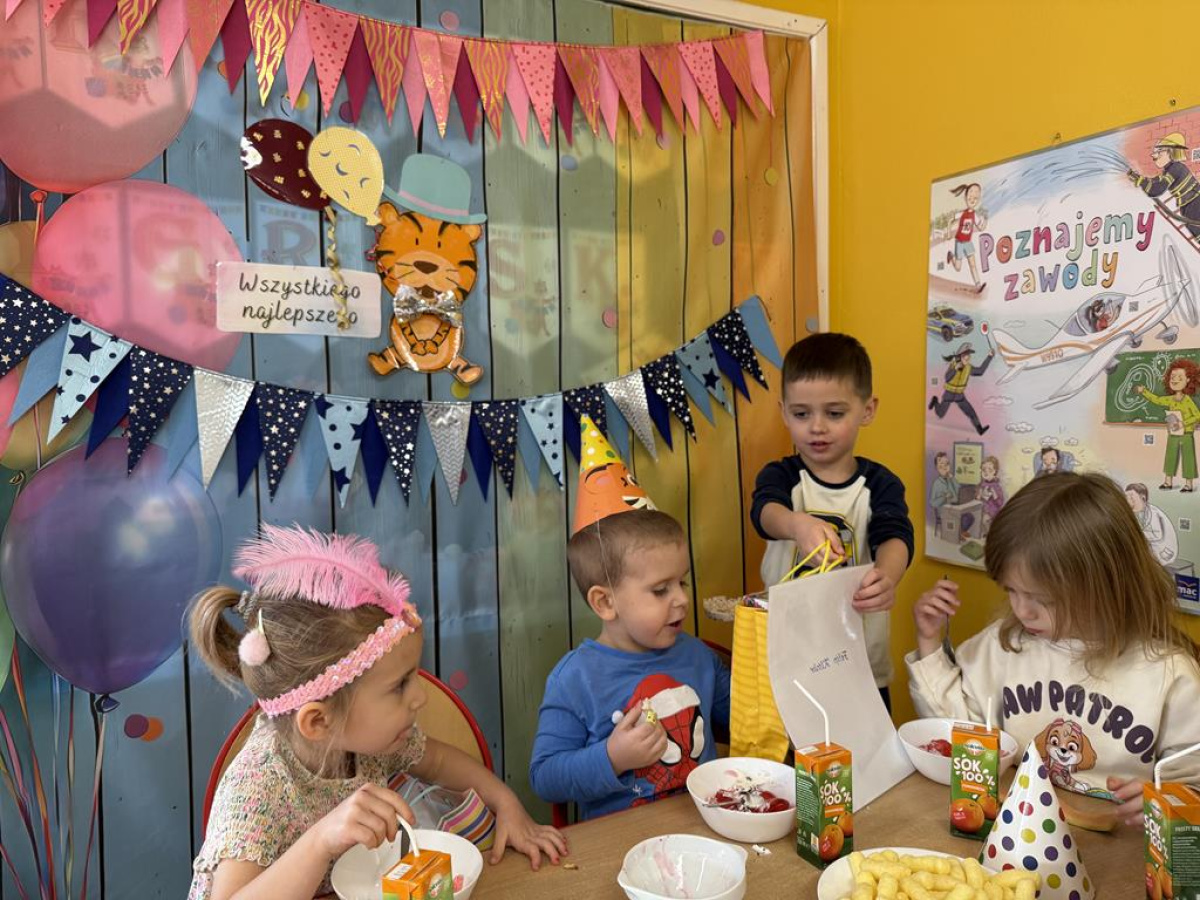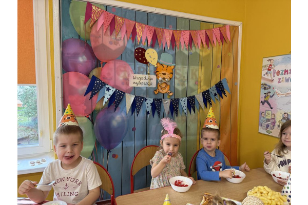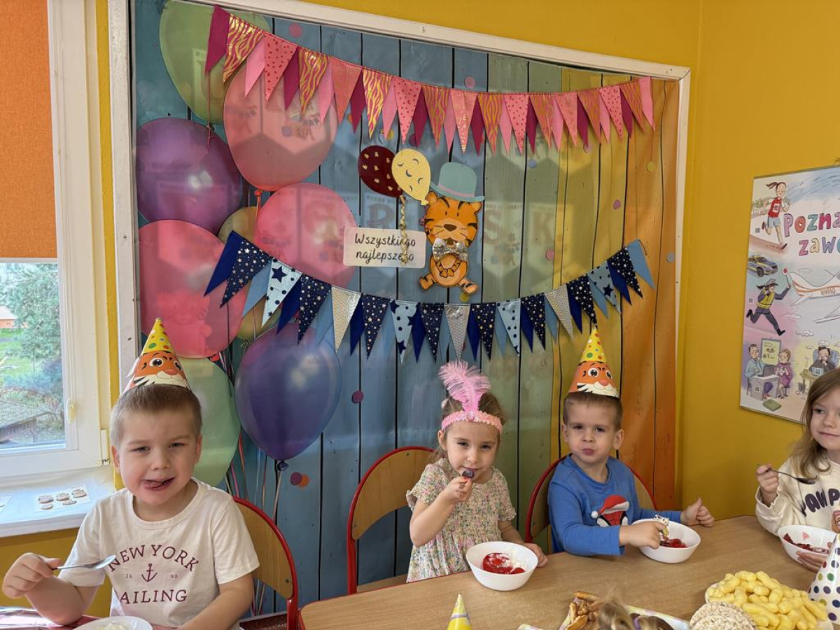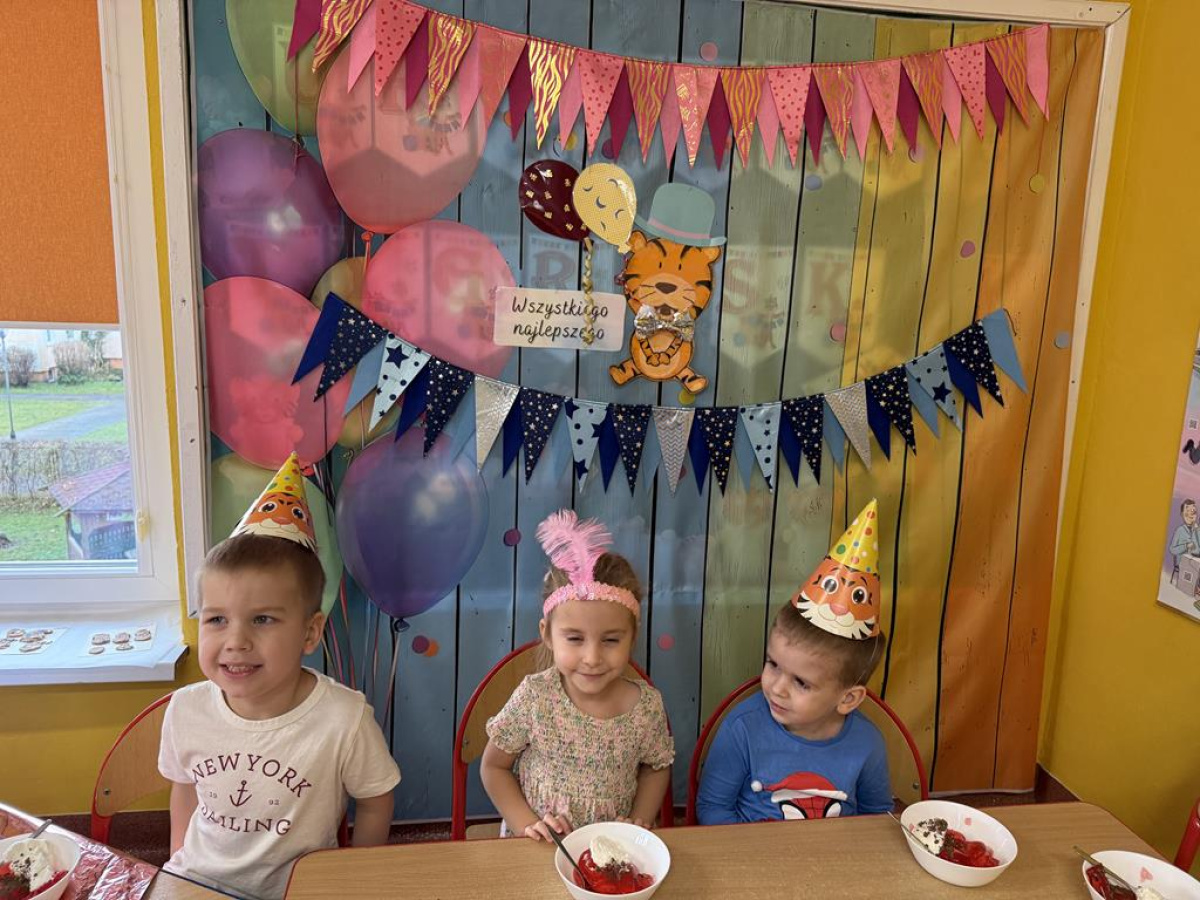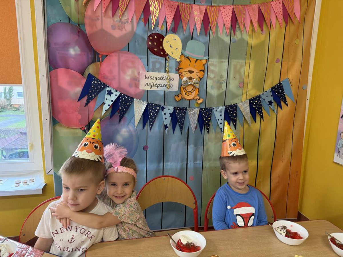 W grudniu do grona czterolatków dołączyli Basia, Filip i Jaś. Podczas uroczystości urodzinowej było radośnie, kolorowo i smacznie! Naszym Kochanym Tygryskom życzymy jeszcze raz SPEŁNIENIA MARZEŃ!