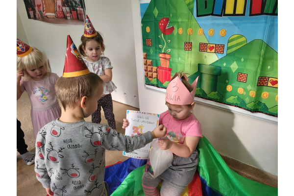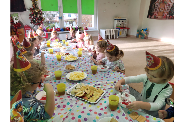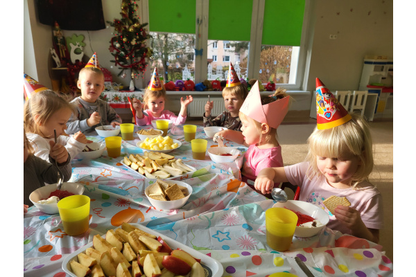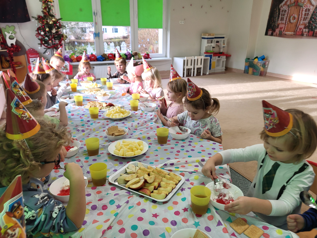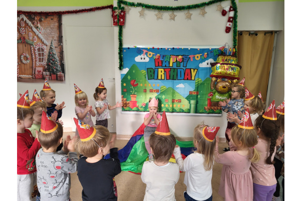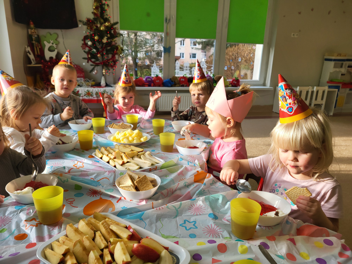W grudniu świętowaliśmy urodziny Oliwki, które upłynęły w radosnej i wesołej atmosferze. Solenizantka otrzymała prezent oraz dyplom, a dzieci częstowały się pysznymi owocami i zdrowymi przekąskami – był to wspaniały dzień pełen uśmiechu i radości Oliwki.