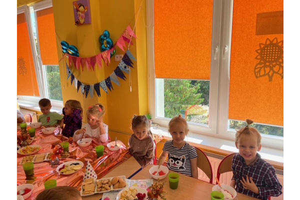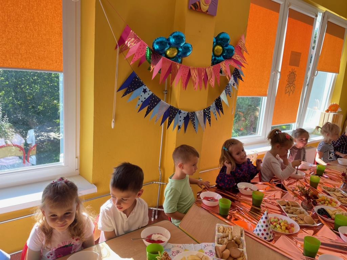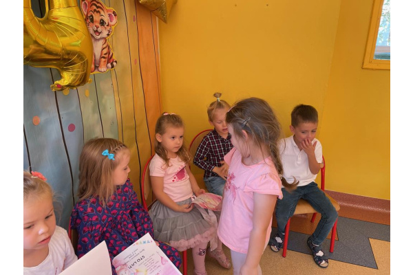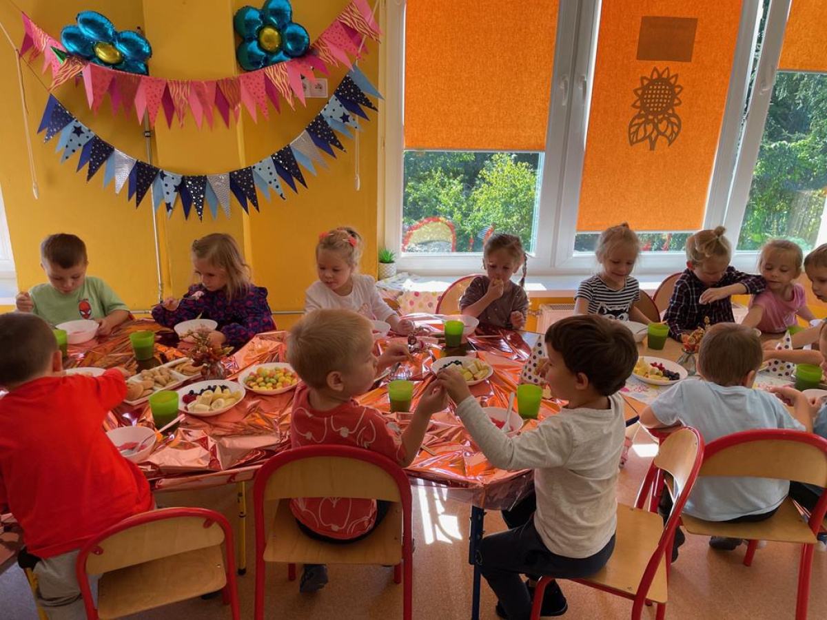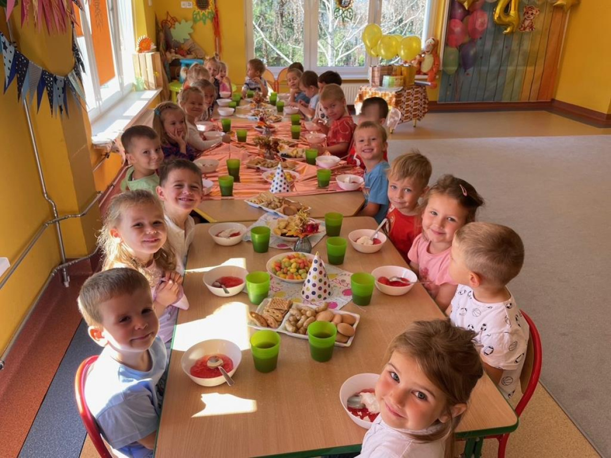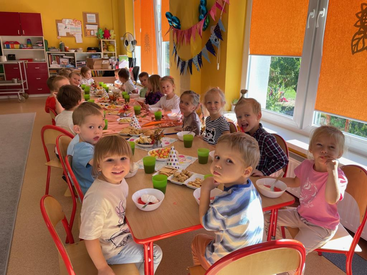 We wrześniu urodziny obchodziły dzieci urodzone w sierpniu i wrześniu. Naszych Jubilatów było aż ośmioro! Rówieśnicy złożyli Im życzenia, zaśpiewali sto lat, wręczyli upominki. Poczęstunek był pyszny i zdrowy, a pląsy przy muzyce urozmaiciły nam kolorowe baloniki w kształcie piesków, które dla dzieci przygotowała mama Ignasia. Naszym Tygryskom życzymy spełnienia marzeń!