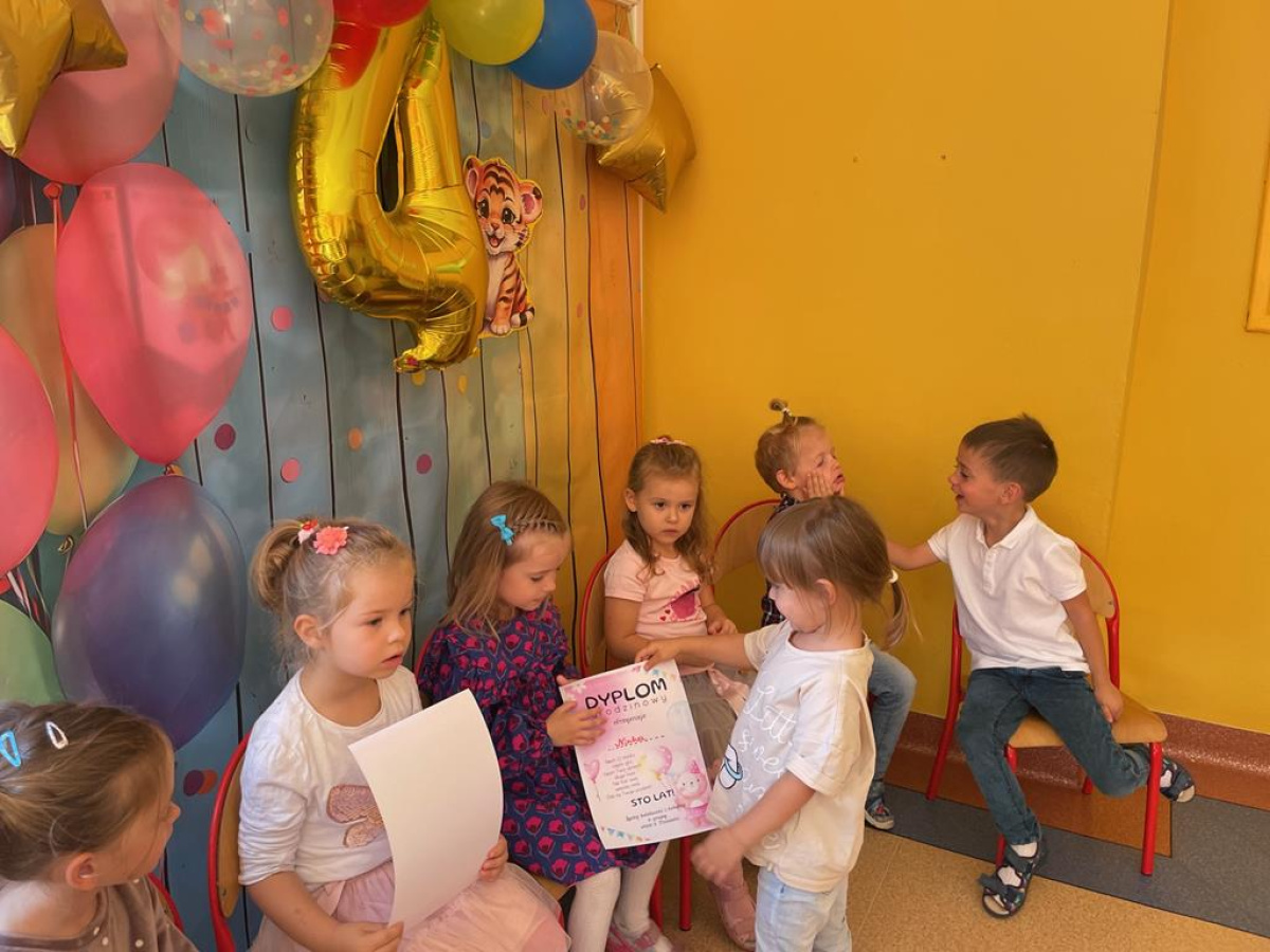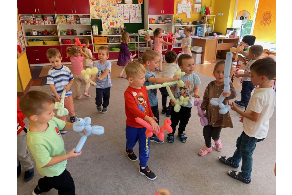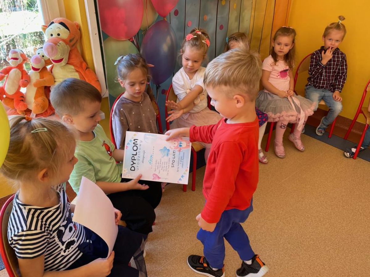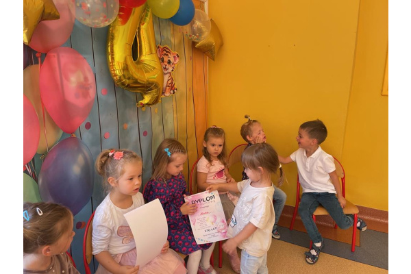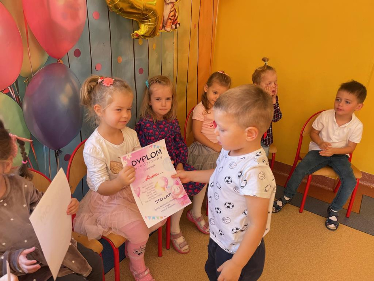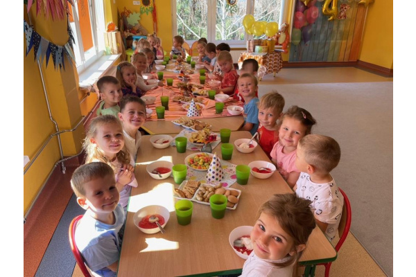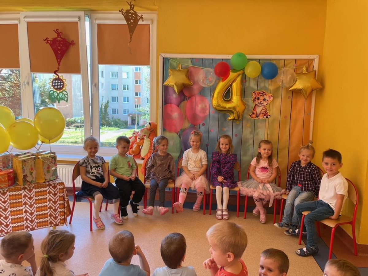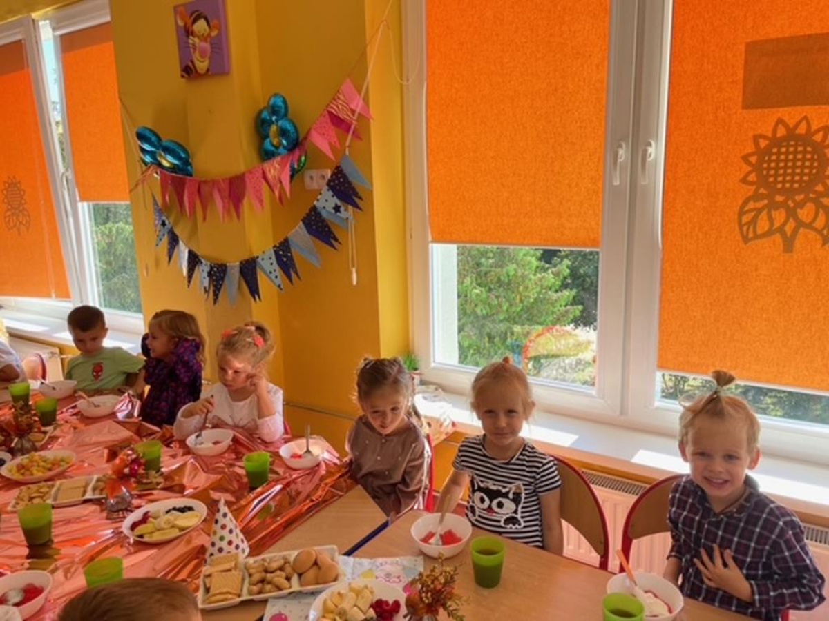 We wrześniu urodziny obchodziły dzieci urodzone w sierpniu i wrześniu. Naszych Jubilatów było aż ośmioro! Rówieśnicy złożyli Im życzenia, zaśpiewali sto lat, wręczyli upominki. Poczęstunek był pyszny i zdrowy, a pląsy przy muzyce urozmaiciły nam kolorowe baloniki w kształcie piesków, które dla dzieci przygotowała mama Ignasia. Naszym Tygryskom życzymy spełnienia marzeń!