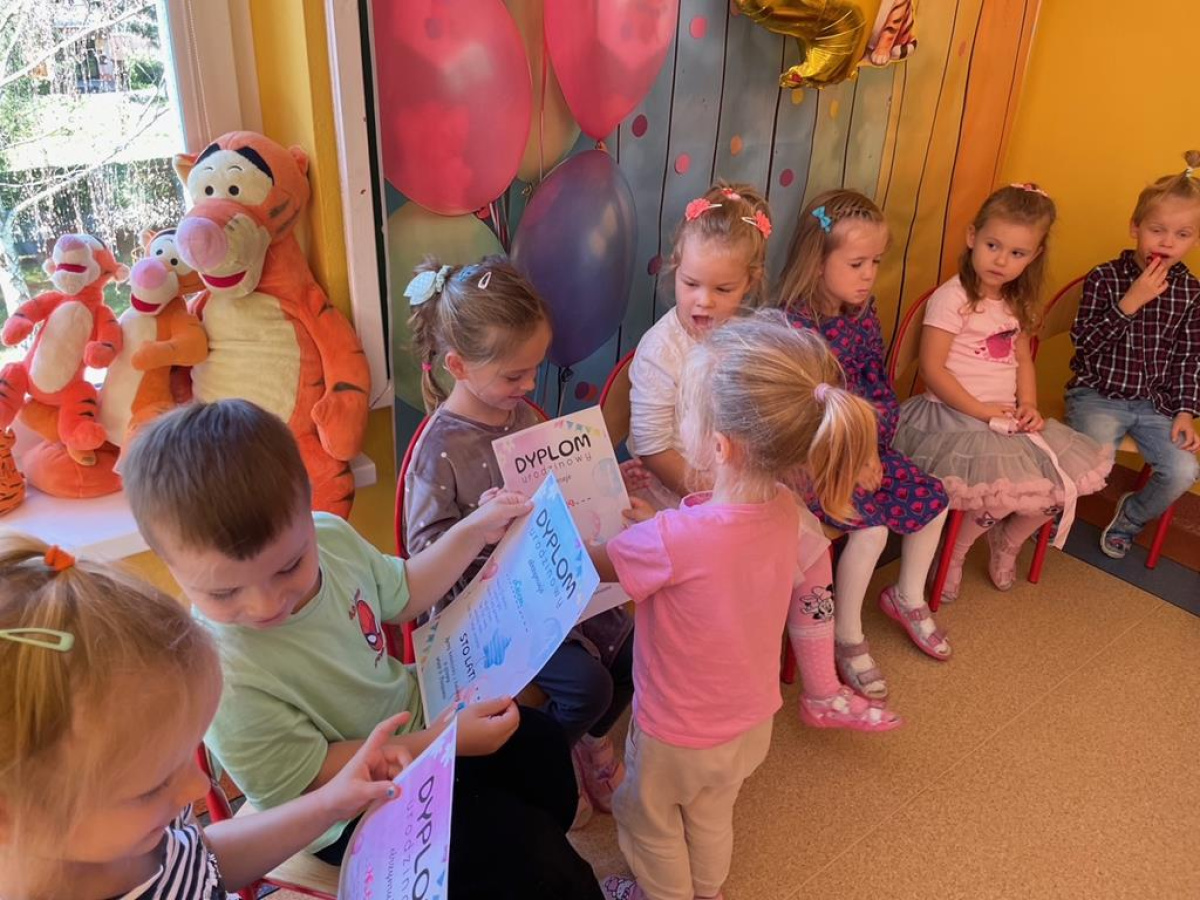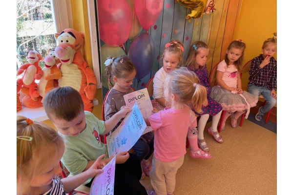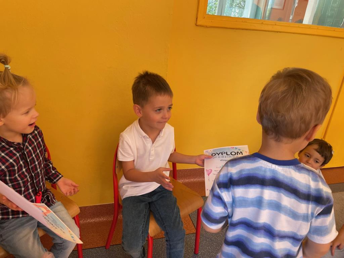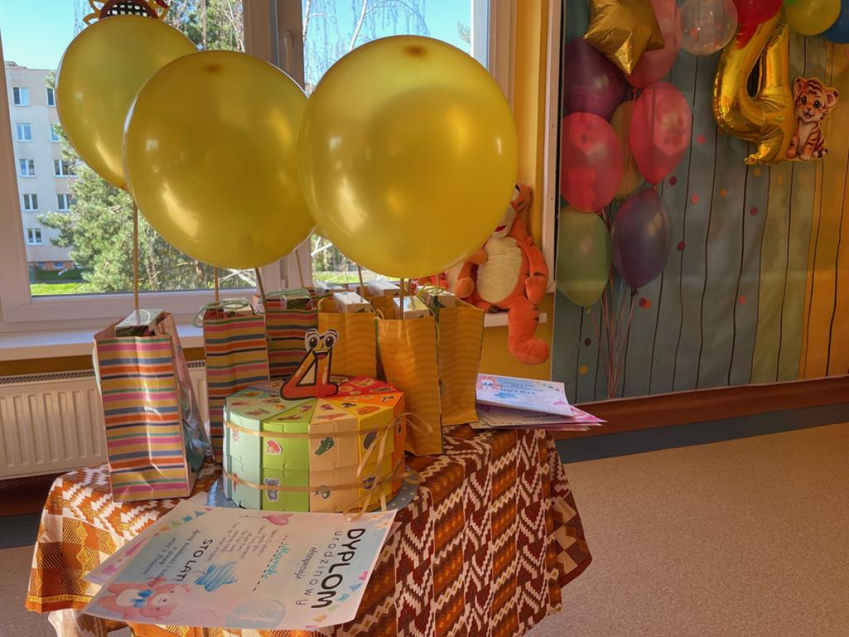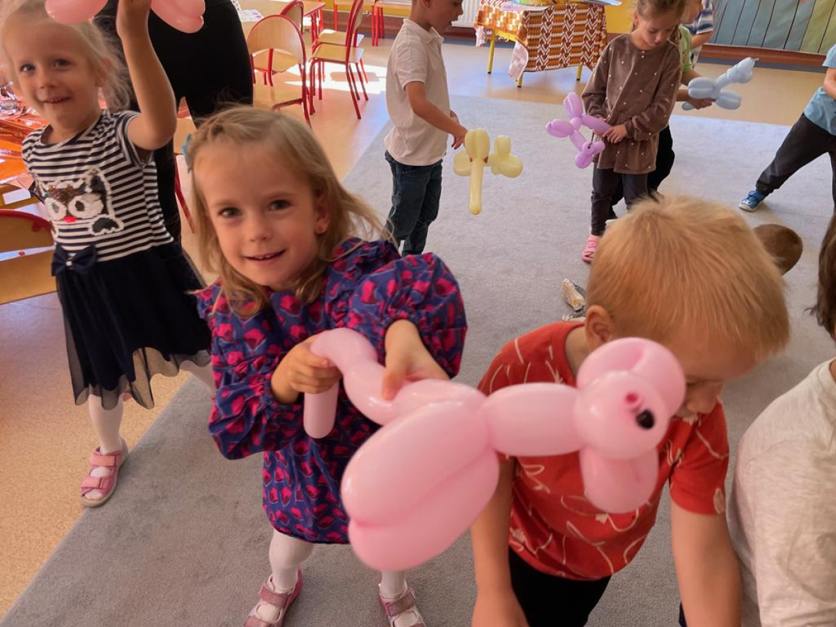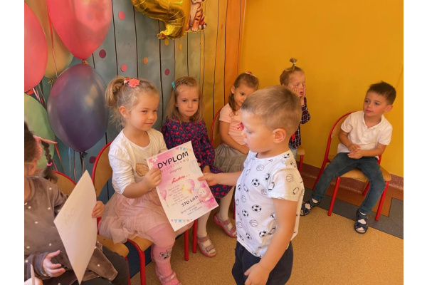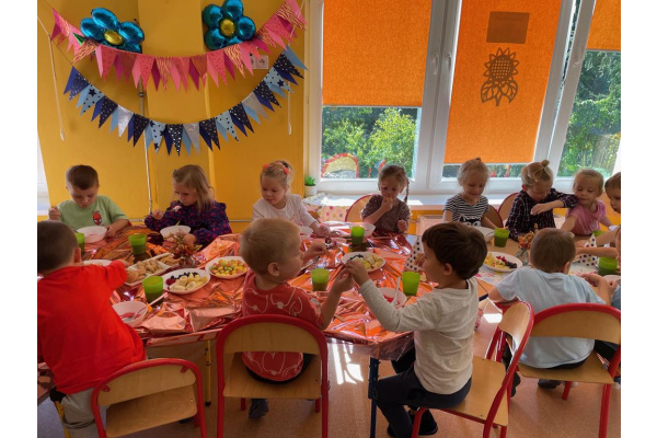 We wrześniu urodziny obchodziły dzieci urodzone w sierpniu i wrześniu. Naszych Jubilatów było aż ośmioro! Rówieśnicy złożyli Im życzenia, zaśpiewali sto lat, wręczyli upominki. Poczęstunek był pyszny i zdrowy, a pląsy przy muzyce urozmaiciły nam kolorowe baloniki w kształcie piesków, które dla dzieci przygotowała mama Ignasia. Naszym Tygryskom życzymy spełnienia marzeń!