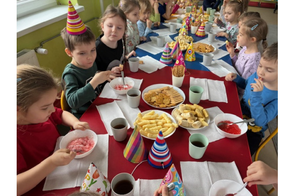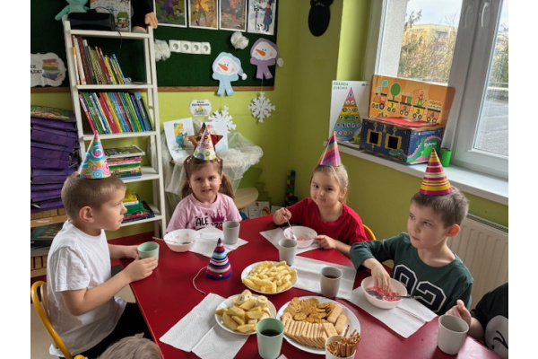 25 lutego w naszej grupie przedszkolnej świętowaliśmy wyjątkowe urodziny Zuzi, Julki, Kacpra i Adasia. Był to dzień pełen radości, uśmiechu i wspólnej zabawy.