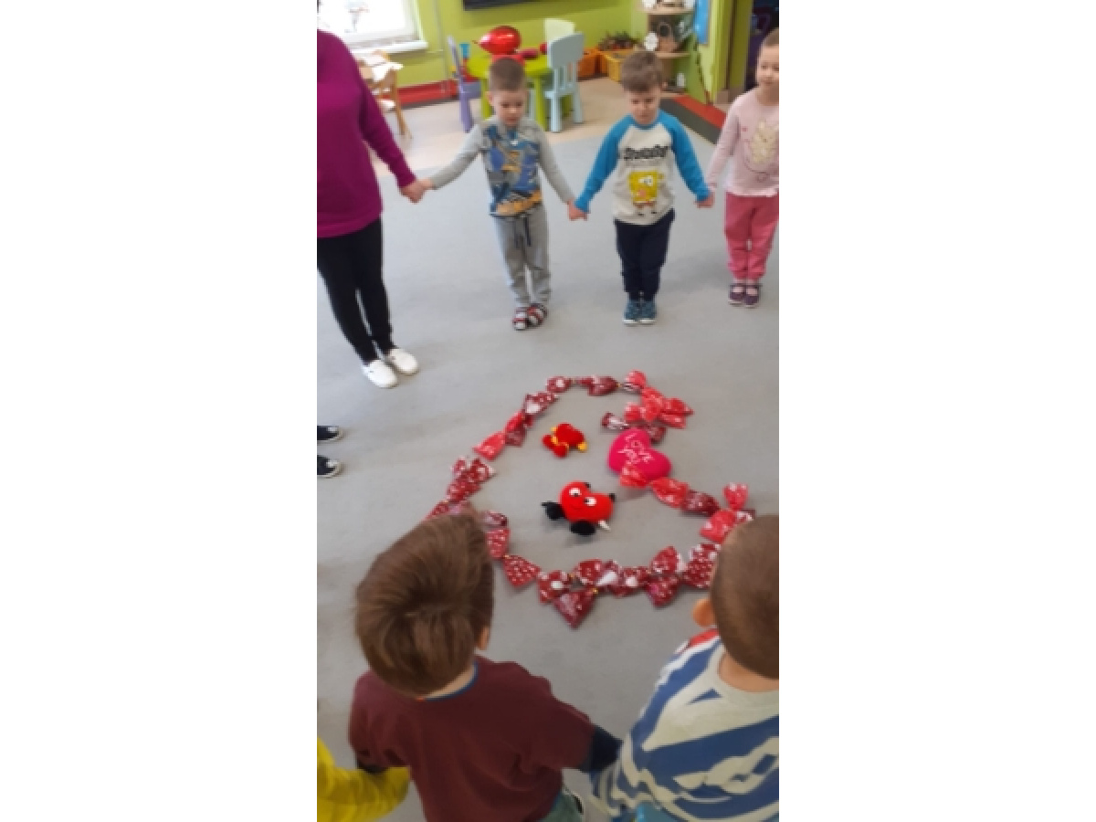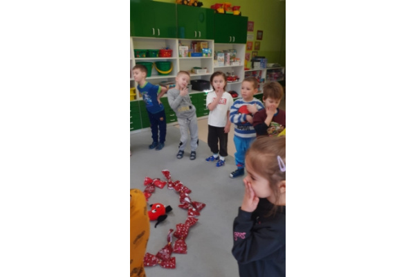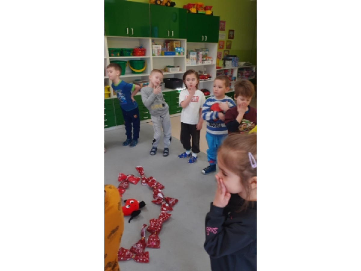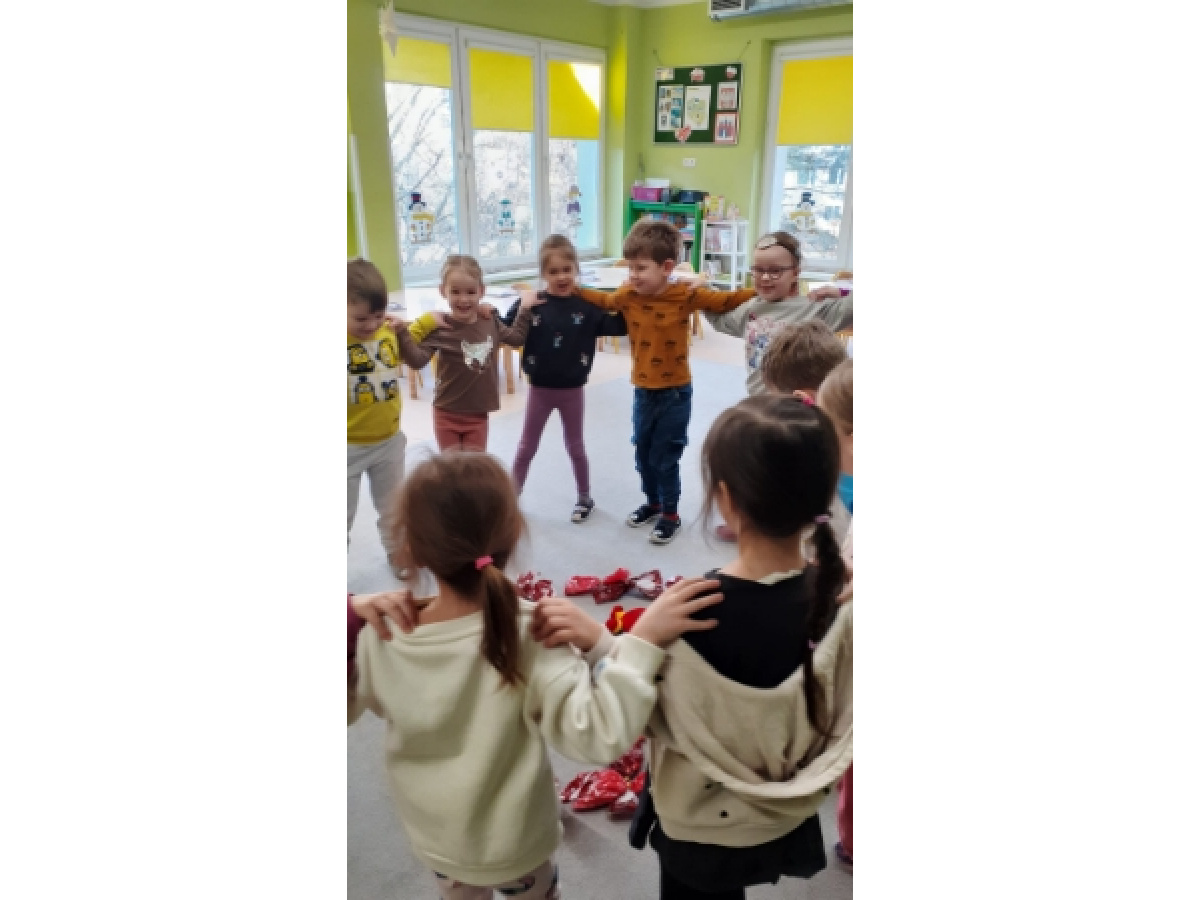 W naszej grupie świętowaliśmy Walentynki – dzień pełen radości, życzliwości i przyjacielskich gestów. Dzieci rozmawiały o przyjaźni oraz o tym, jak okazywać sympatię innym. Przedszkolaki wykonały walentynkowe kartki i serduszka z masy solnej, brały udział w wesołych zabawach oraz tańcach. W sali panowała ciepła, serdeczna atmosfera, a uśmiechy towarzyszyły nam przez cały dzień.