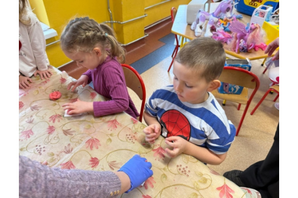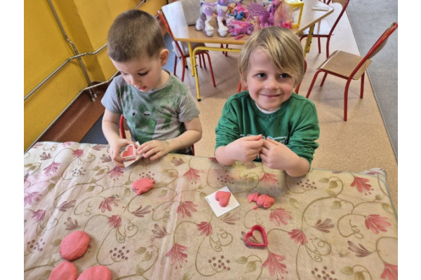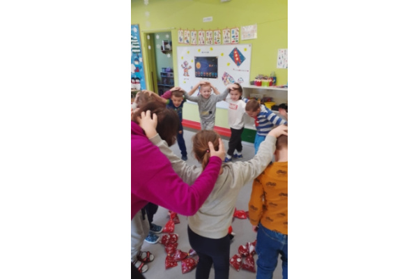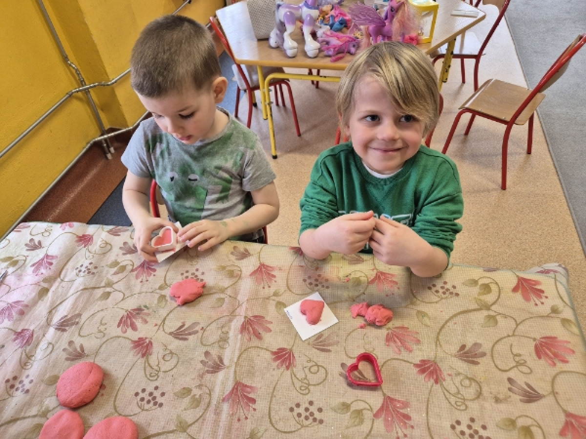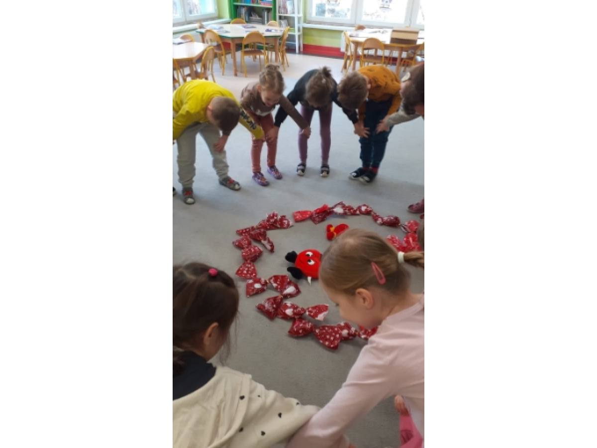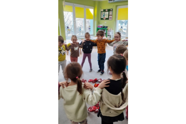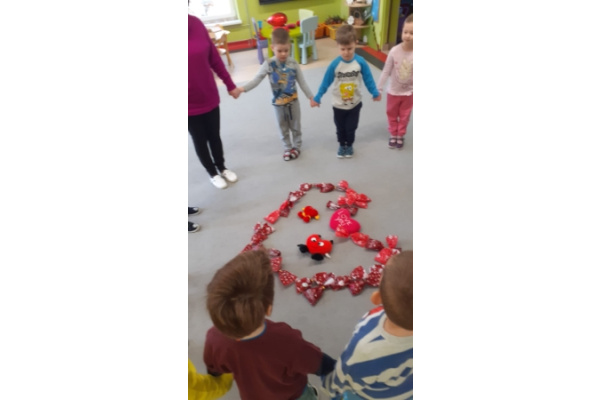 W naszej grupie świętowaliśmy Walentynki – dzień pełen radości, życzliwości i przyjacielskich gestów. Dzieci rozmawiały o przyjaźni oraz o tym, jak okazywać sympatię innym. Przedszkolaki wykonały walentynkowe kartki i serduszka z masy solnej, brały udział w wesołych zabawach oraz tańcach. W sali panowała ciepła, serdeczna atmosfera, a uśmiechy towarzyszyły nam przez cały dzień.