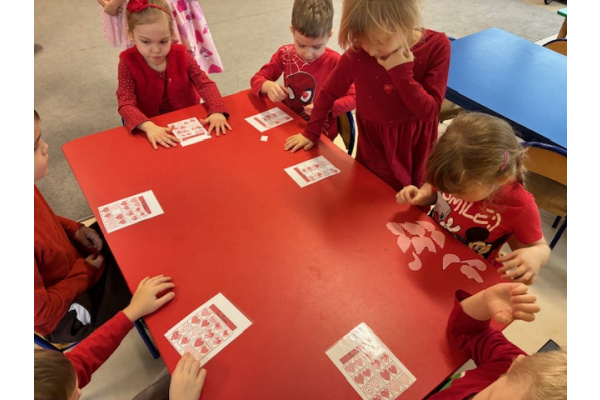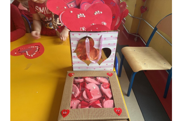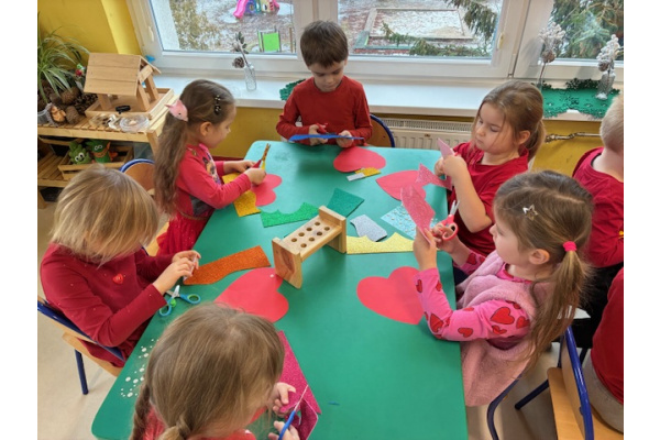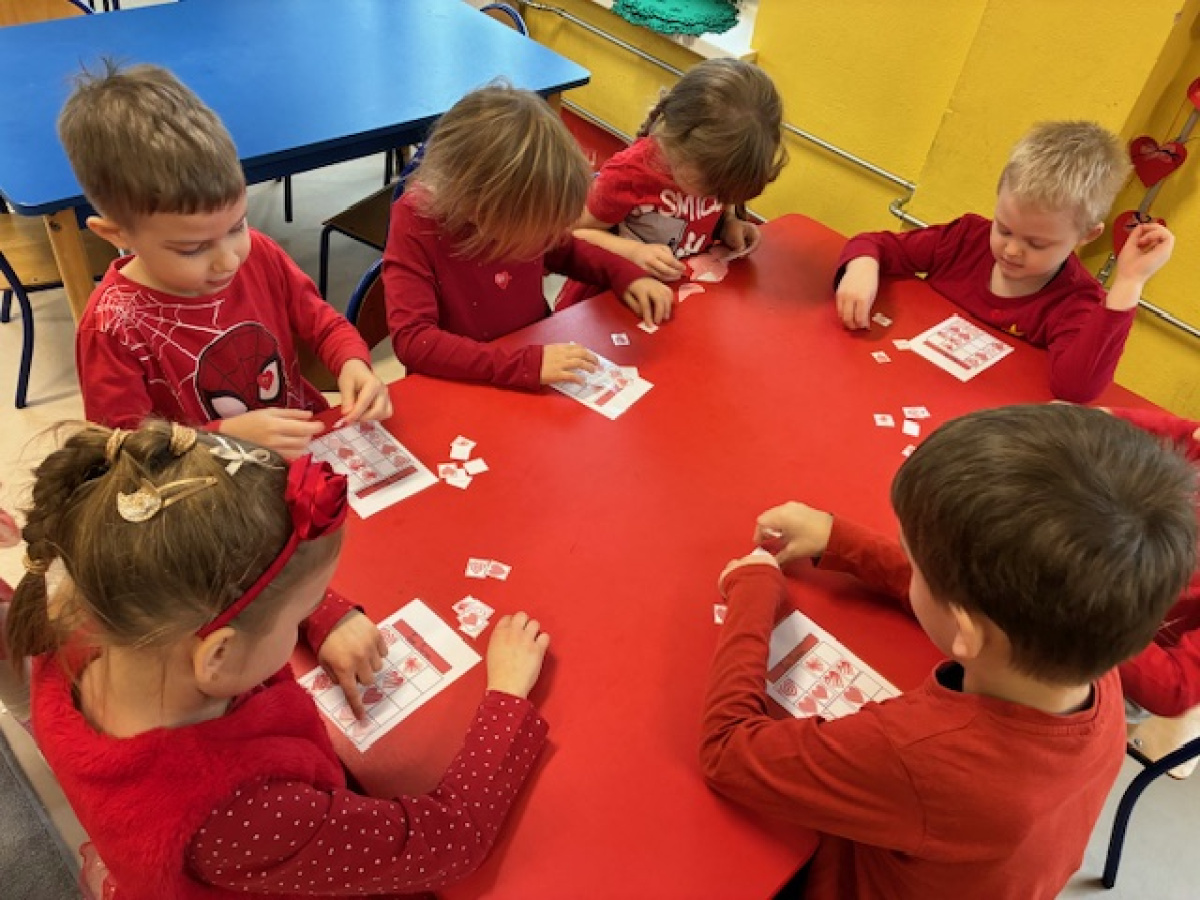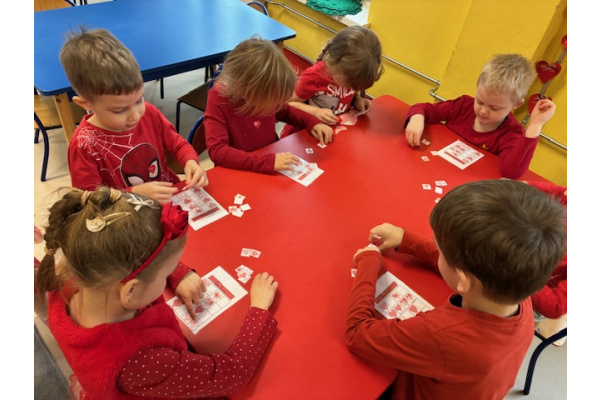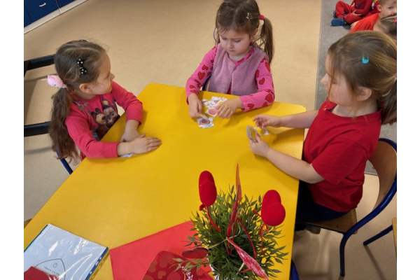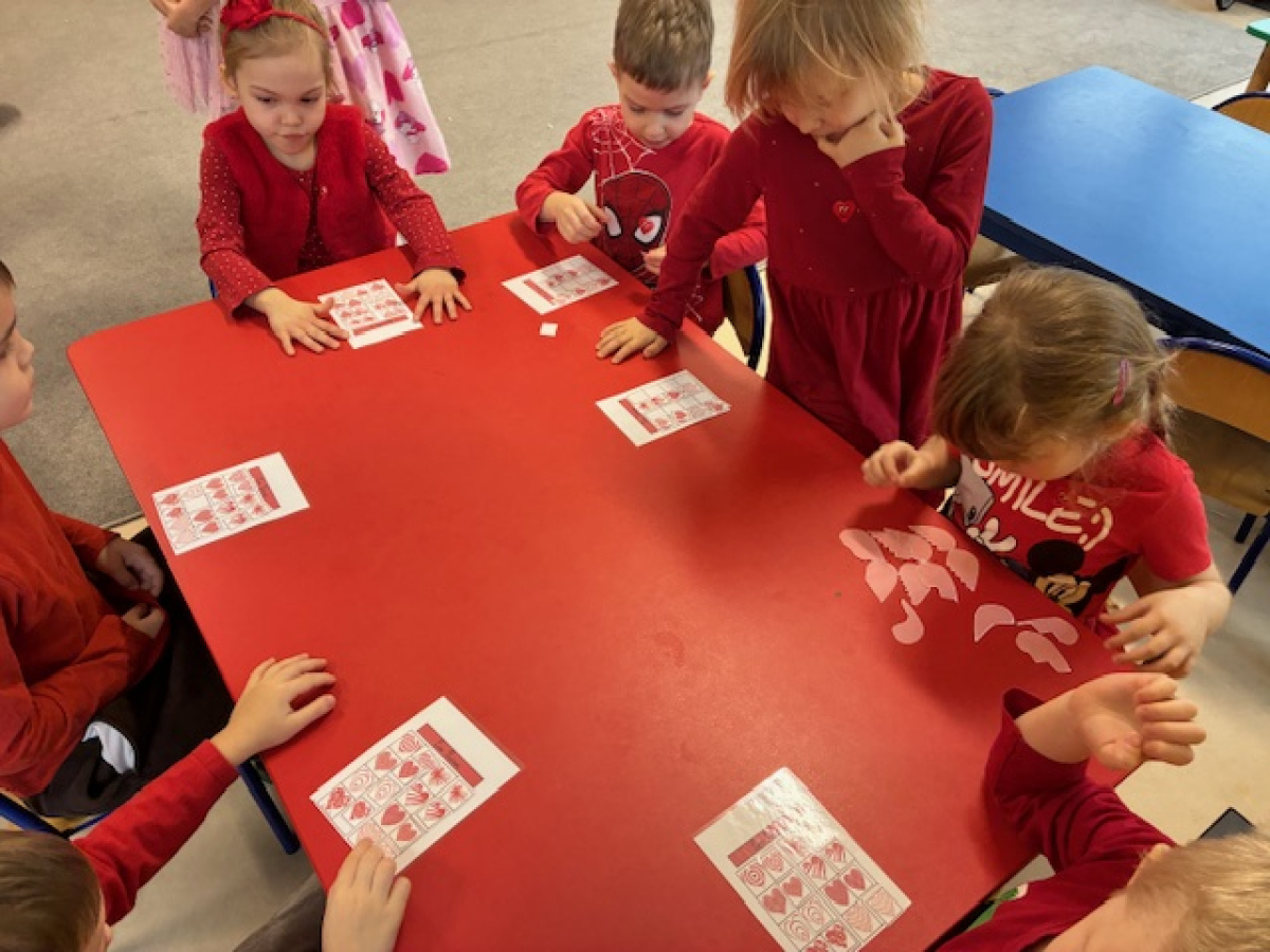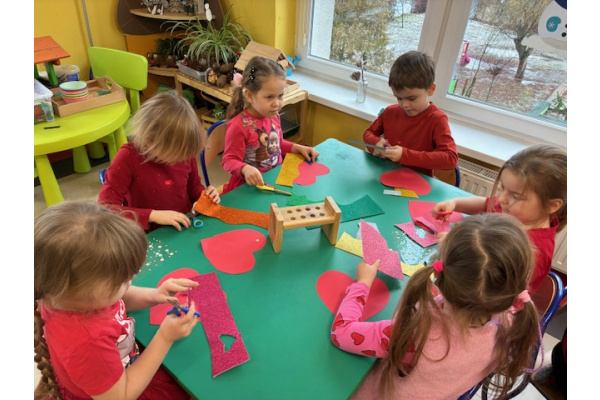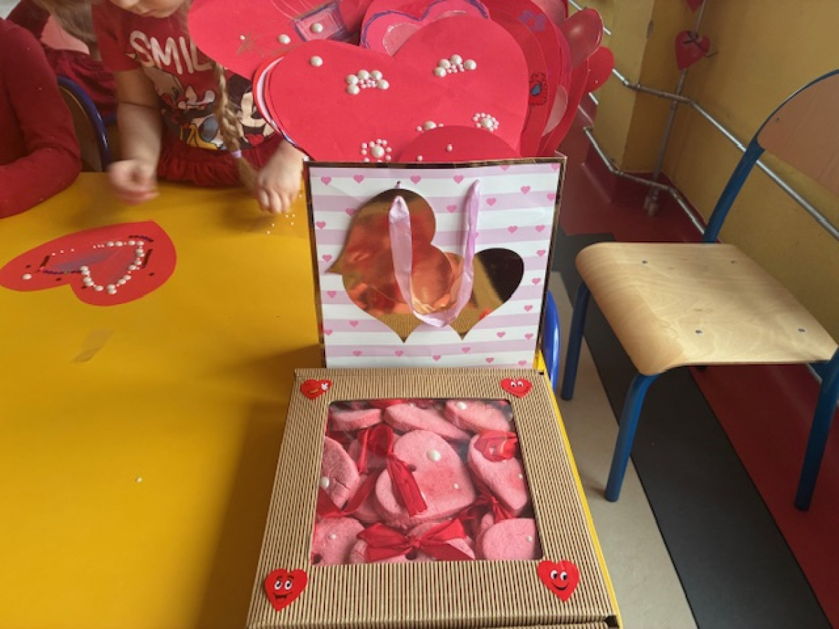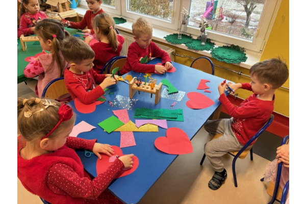 Dzieci obchodziły Walentynki w radosnej i serdecznej atmosferze. Na początku obejrzały film edukacyjny przybliżający tradycję Walentynek oraz znaczenie okazywania sympatii i życzliwości innym.Następnie dzieci samodzielnie przygotowywały kartki walentynkowe dla siebie, po czym wymieniały się nimi i wręczały je kolegom oraz koleżankom z grupy.W dalszej części dnia układały memory, kodowały serduszka oraz uczestniczyły w zabawach ruchowych z balonami i wspólnych zabawach w kole.Wszystkie aktywności sprawiły dzieciom wiele radości, a dzień upłynął w miłej, pełnej uśmiechu atmosferze.