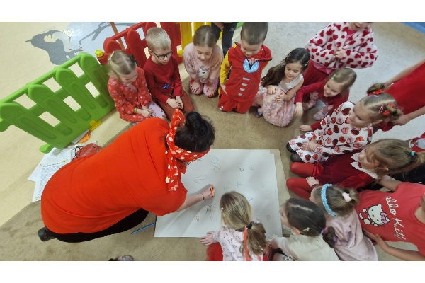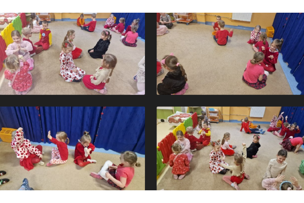 14 lutego w naszym przedszkolu obchodziliśmy Walentynki – dzień przyjaźni, życzliwości i okazywania sobie dobrych uczuć. W grupie Kreciki, Świetliki i Żabki świętowaliśmy Walentynki w wyjątkowo radosnej atmosferze! ❤️ Dzieci przyszły ubrane na czerwono, nie zabrakło serduszek, wspólnych zabaw i uśmiechów. Była to doskonała okazja do rozmów o tym, jak ważne są szacunek, koleżeństwo i empatia. To był dzień pełen życzliwości, przyjaźni i dobrej zabawy!