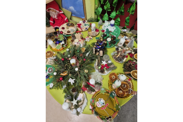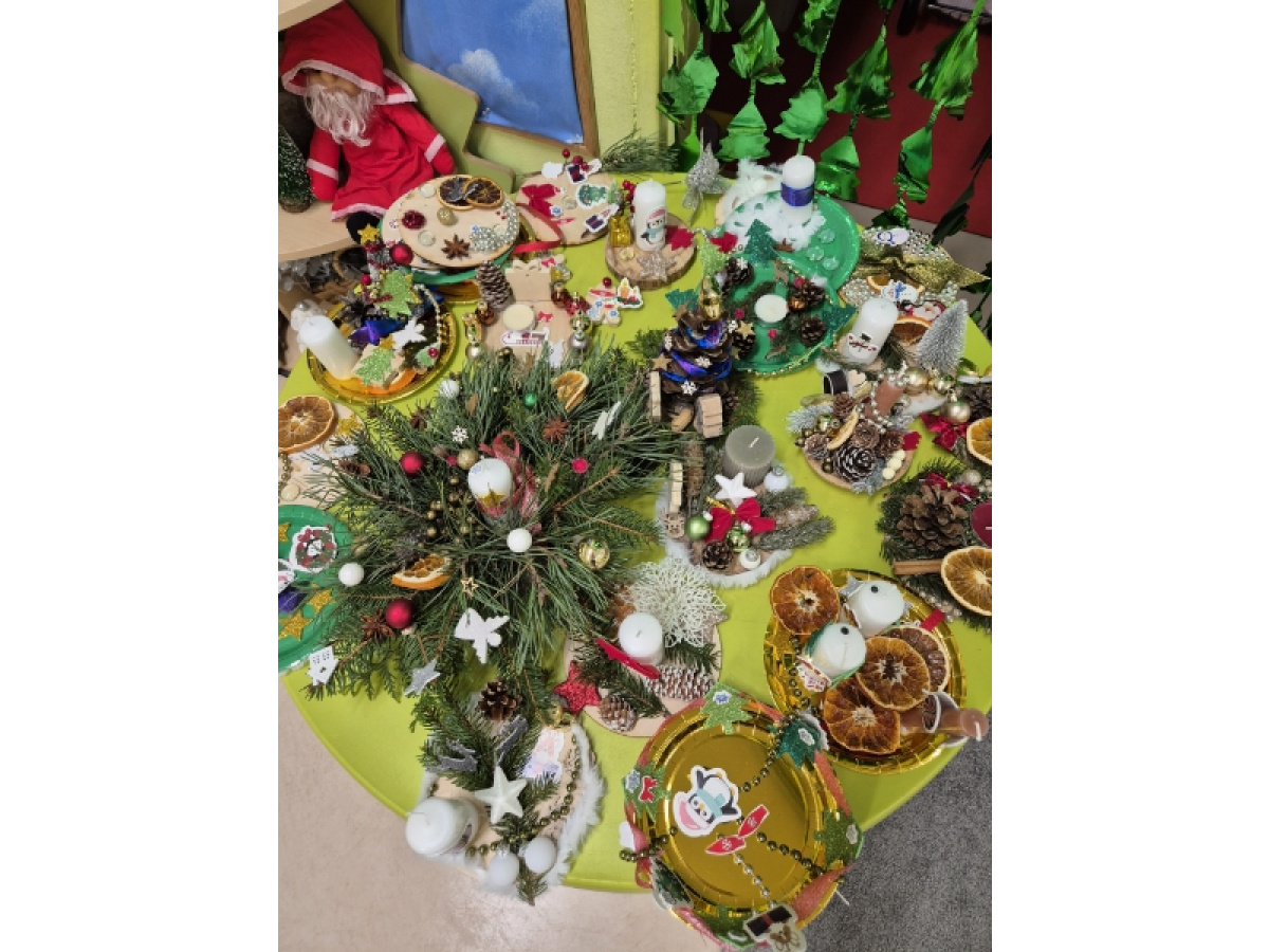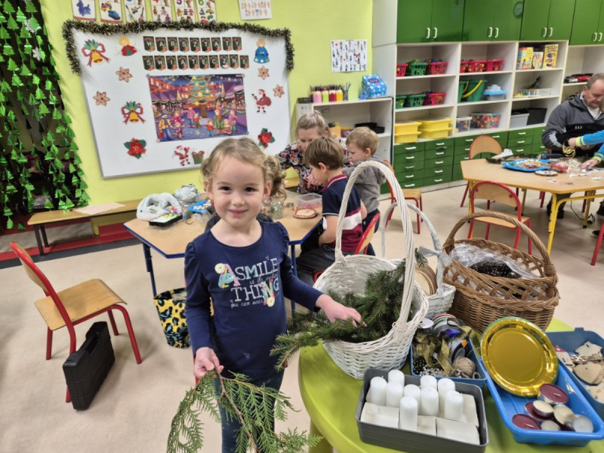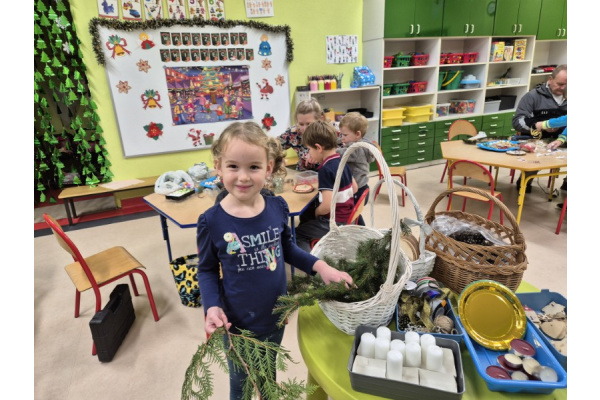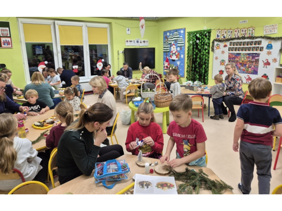27 listopada spotkaliśmy się z rodzicami w naszej sali 'Zajączków', aby przygotować dekoracje świąteczne na kiermasz przedszkolny. Wszyscy razem zasiedliśmy do pracy, a efektem są piękne stroiki. Dziękujemy za zaangażowanie i obecność, to te chwile spędzone razem są bezcenne.