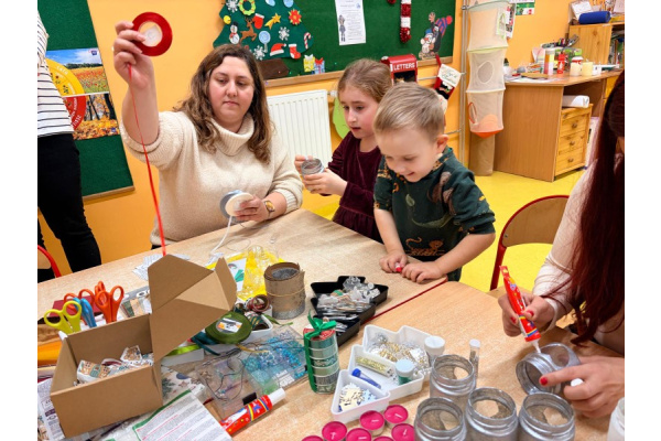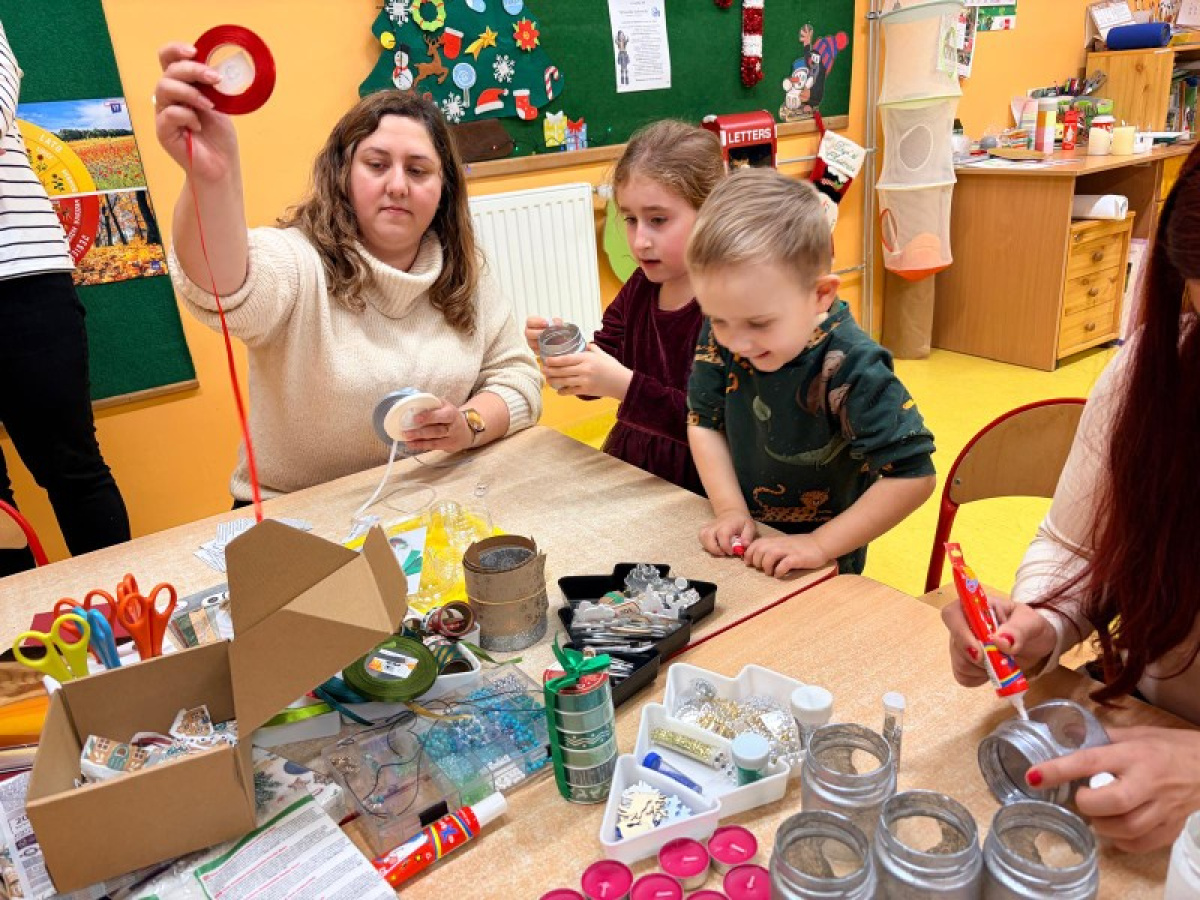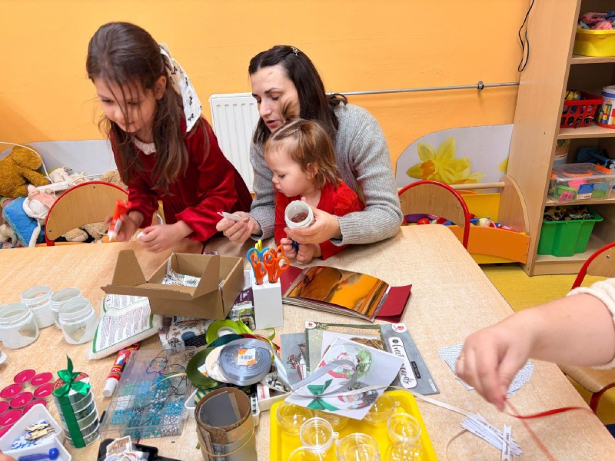 26 listopada mieliśmy okazję spotkać się, aby razem czynić dobro. Dzieci z grupy Kreciki powitały swoich rodziców piosenką "Wesołych Świąt". Tym miłym akcentem wprowadziliśmy się w przedświątecznych nastrój. Następnie przystąpiliśmy do twórczego działania. Powstały piękne kartki świąteczne, świeczniki oraz drewniane szopki i autka na choinki. Serdecznie dziękujemy wszystkim obecnym rodzicom, rodzeństwu oraz dzieciom za wspólnie spędzony czas i przygotowanie ozdób świątecznych na kiermasz dla Karolinki Kolasy.