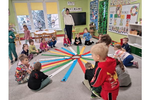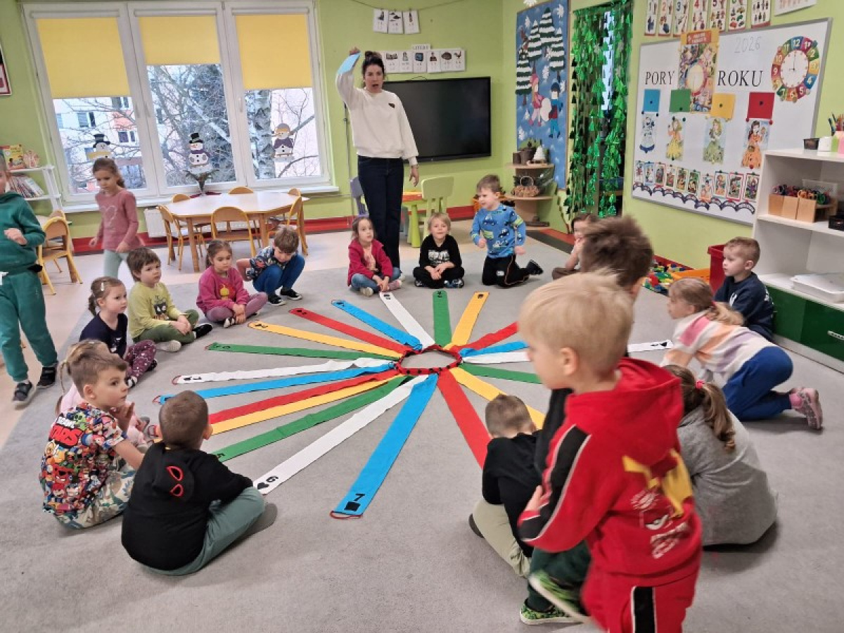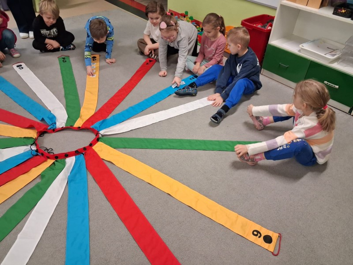 Wiatrak matematyczny łączy ruch i edukację ze wspaniałą zabawą. Zabawy z wiatrakiem są żywiołowe, z dużą dawką ruchu. Przedszkolaki z przyjemnością koncentrują się na zadaniach, nie odczuwając znudzenia. Tak było też w naszej grupie podczas kolejnych zimowych zabaw z wiatrakiem matematycznym.