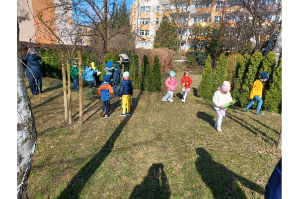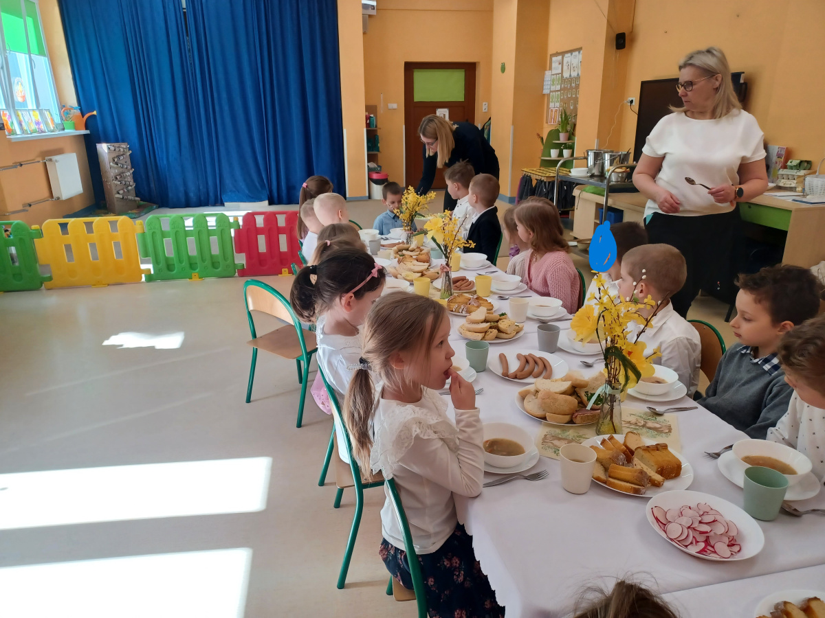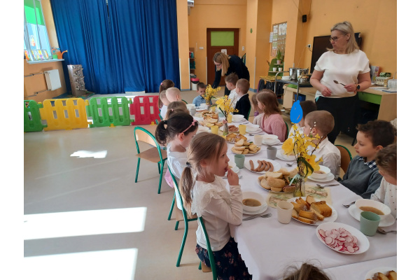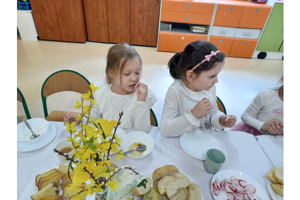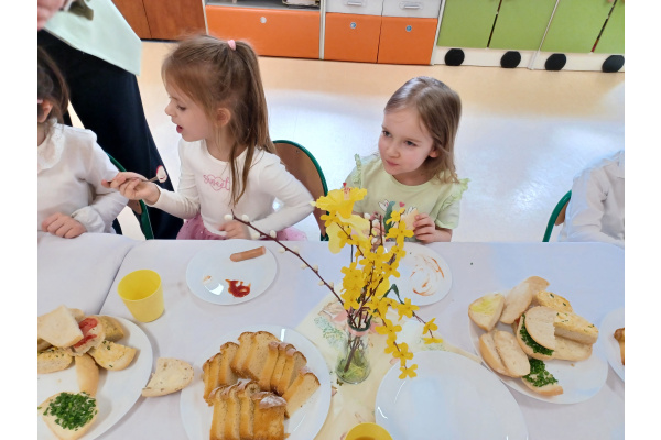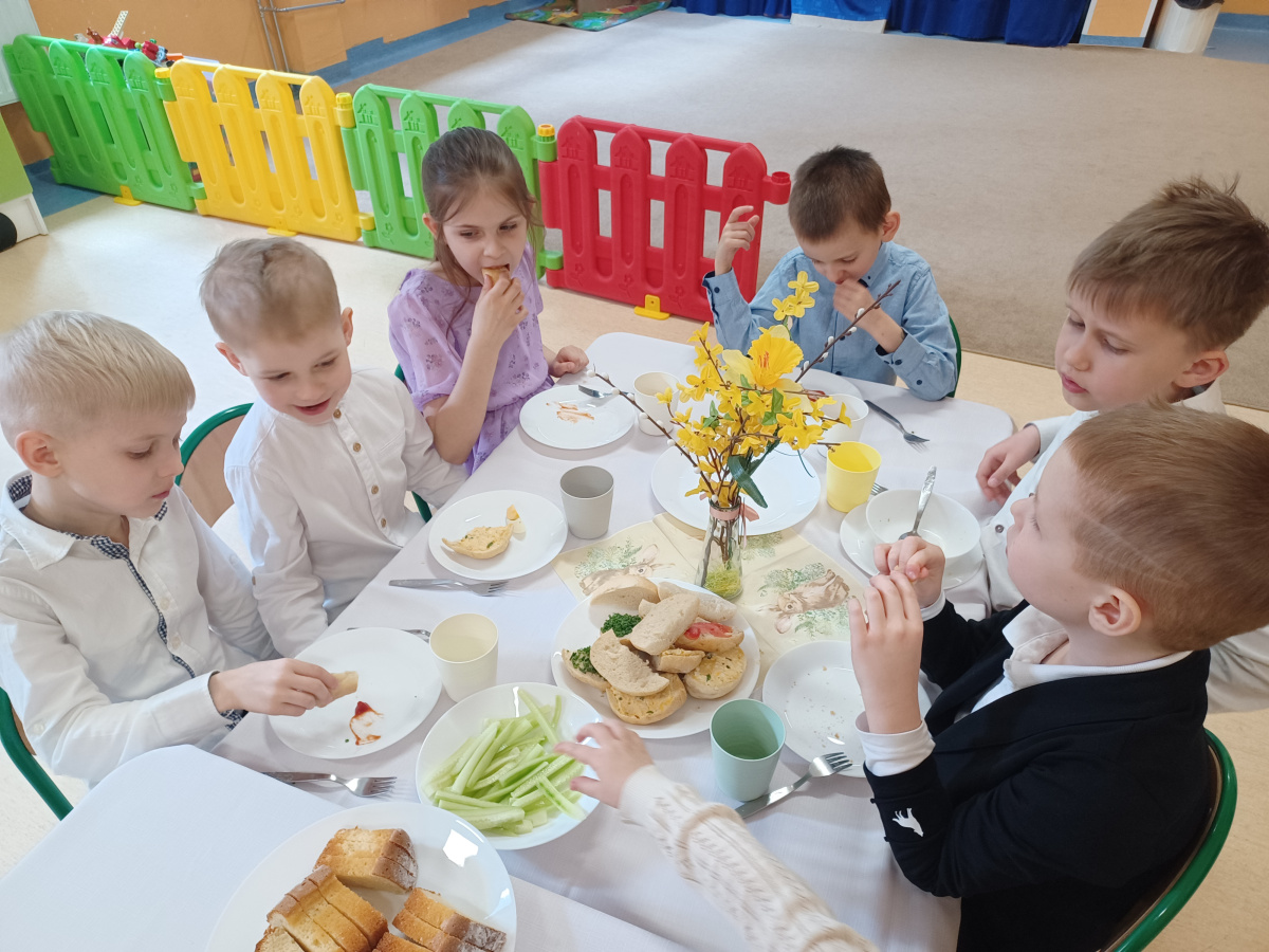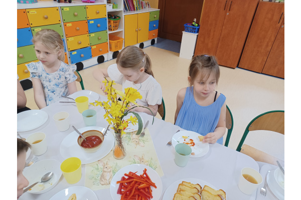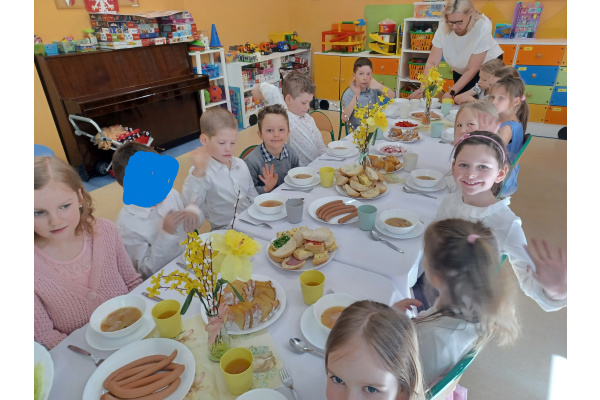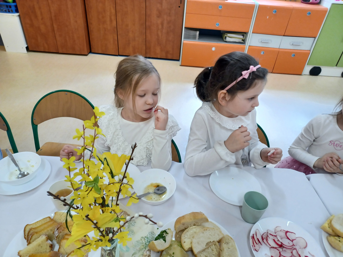 31. marca w naszym przedszkolu odbyło się uroczyste Śniadanie Wielkanocne. Elegancko ubrani zasiedliśmy do udekorowanego stołu, podzieliliśmy się jajkiem, złożyliśmy życzenia i zaczęliśmy ucztę. Po śniadaniu wyruszyliśmy w poszukiwaniu zajączka, który zostawił dla dzieci prezenty w ogrodzie. Dzień był pełen atrakcji i pozytywnych emocji.