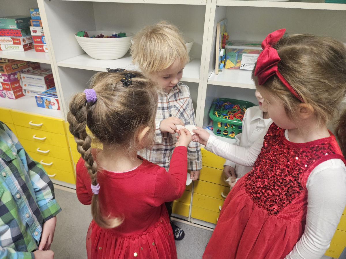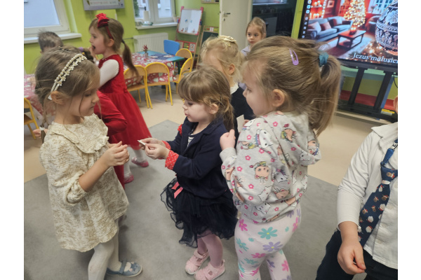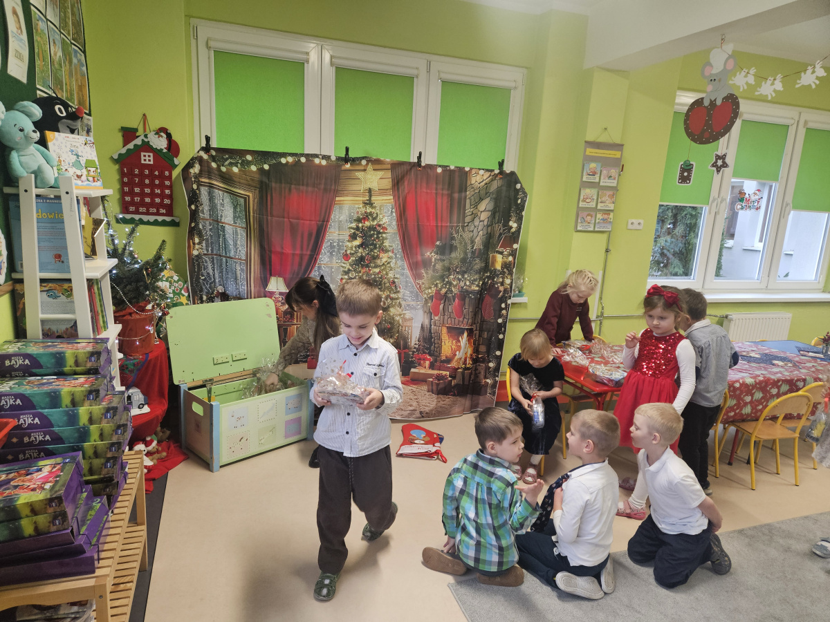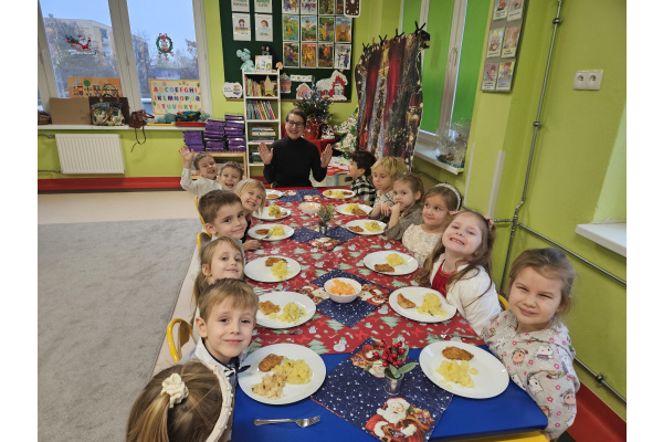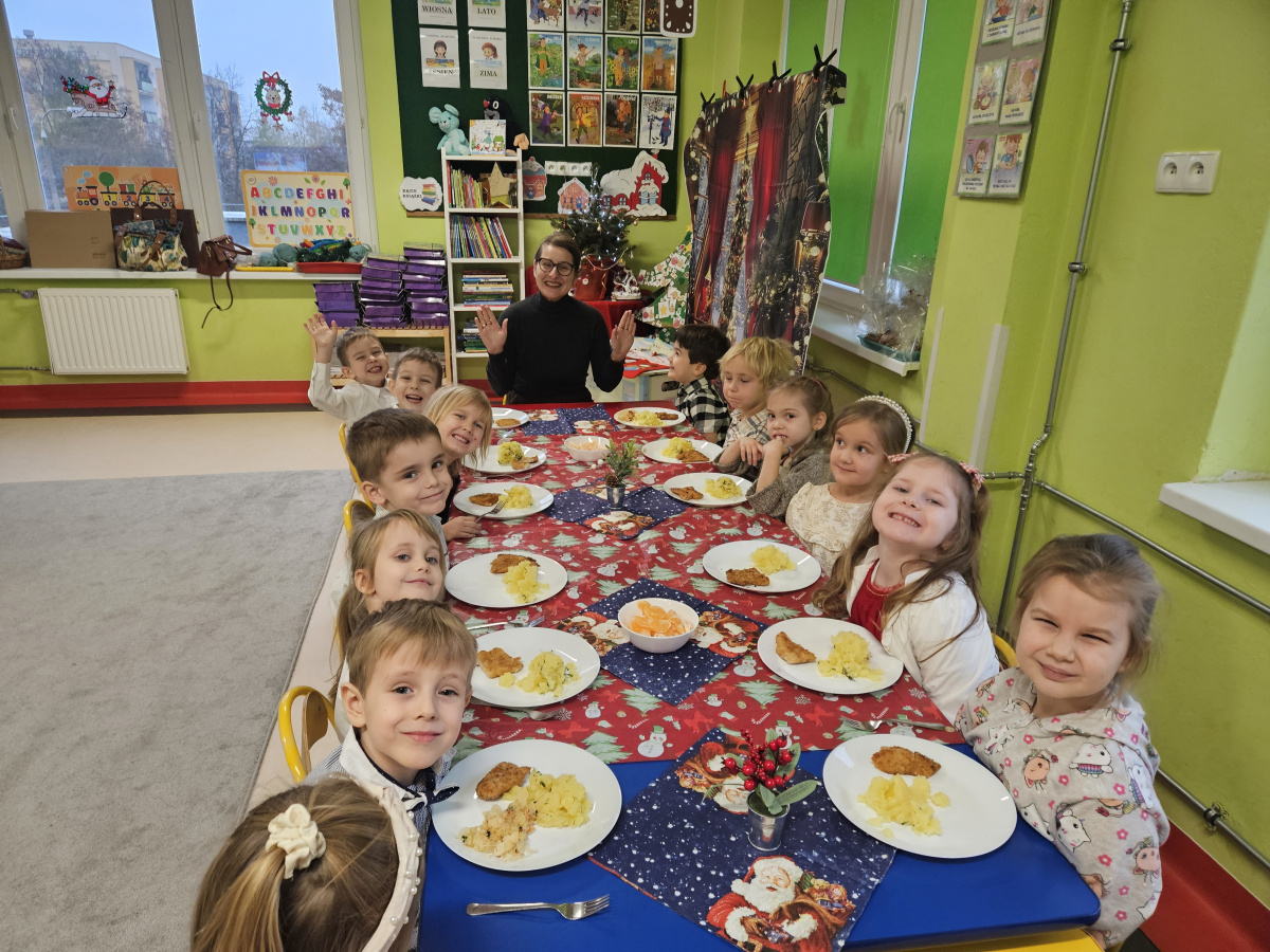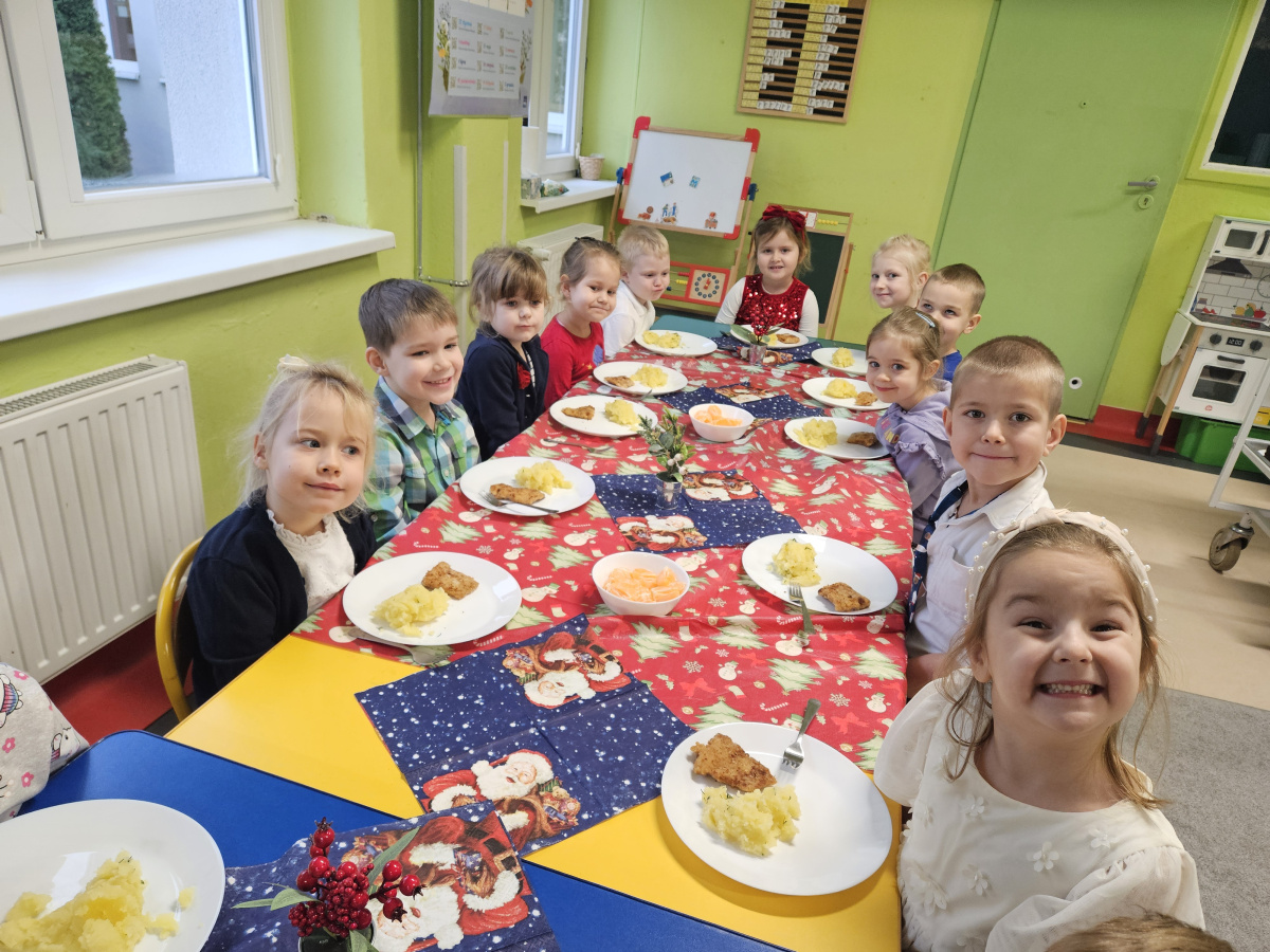 Wigilia to czas spędzony w gronie najbliższych. Nasza grupa myszki uwielbia spędzać ze sobą czas. Jak tradycja mówi najpierw podzieliliśmy się opłatkiem i złożyliśmy sobie serdeczne życzenia. Następnie zasiedliśmy do uroczystego obiadu. Naszym gościem specjalnym była Pani od Angielskiego. Na koniec czas na prezenty!!! Było miło i przyjemnie.