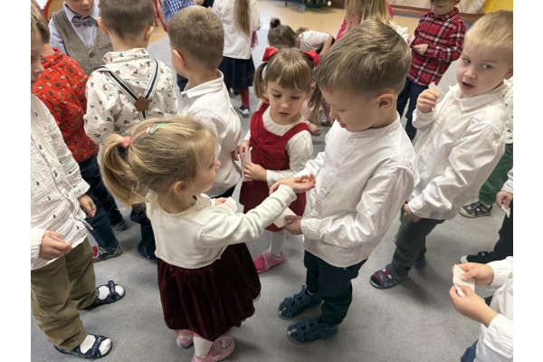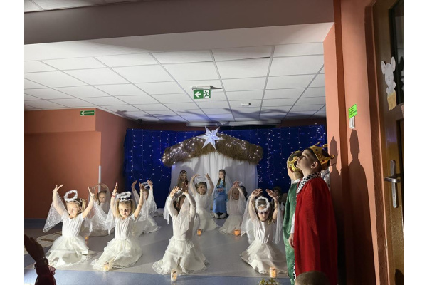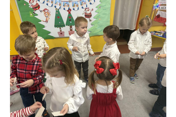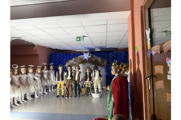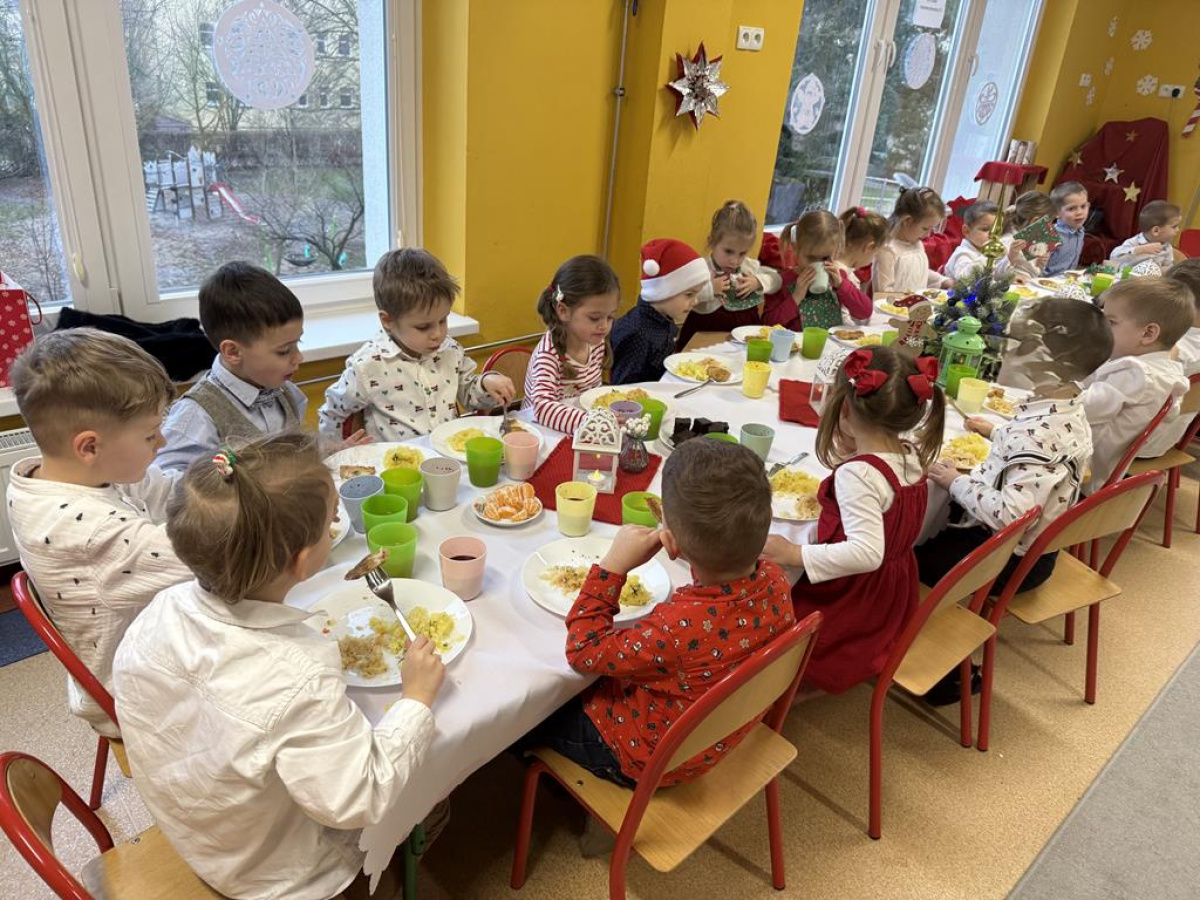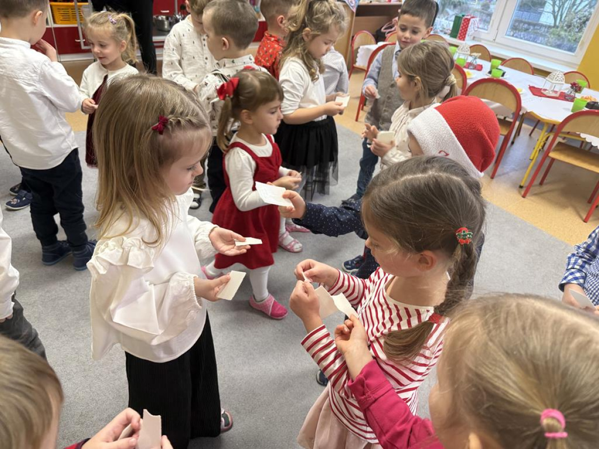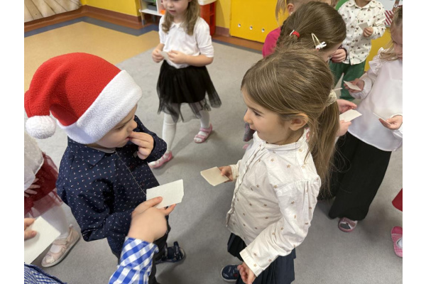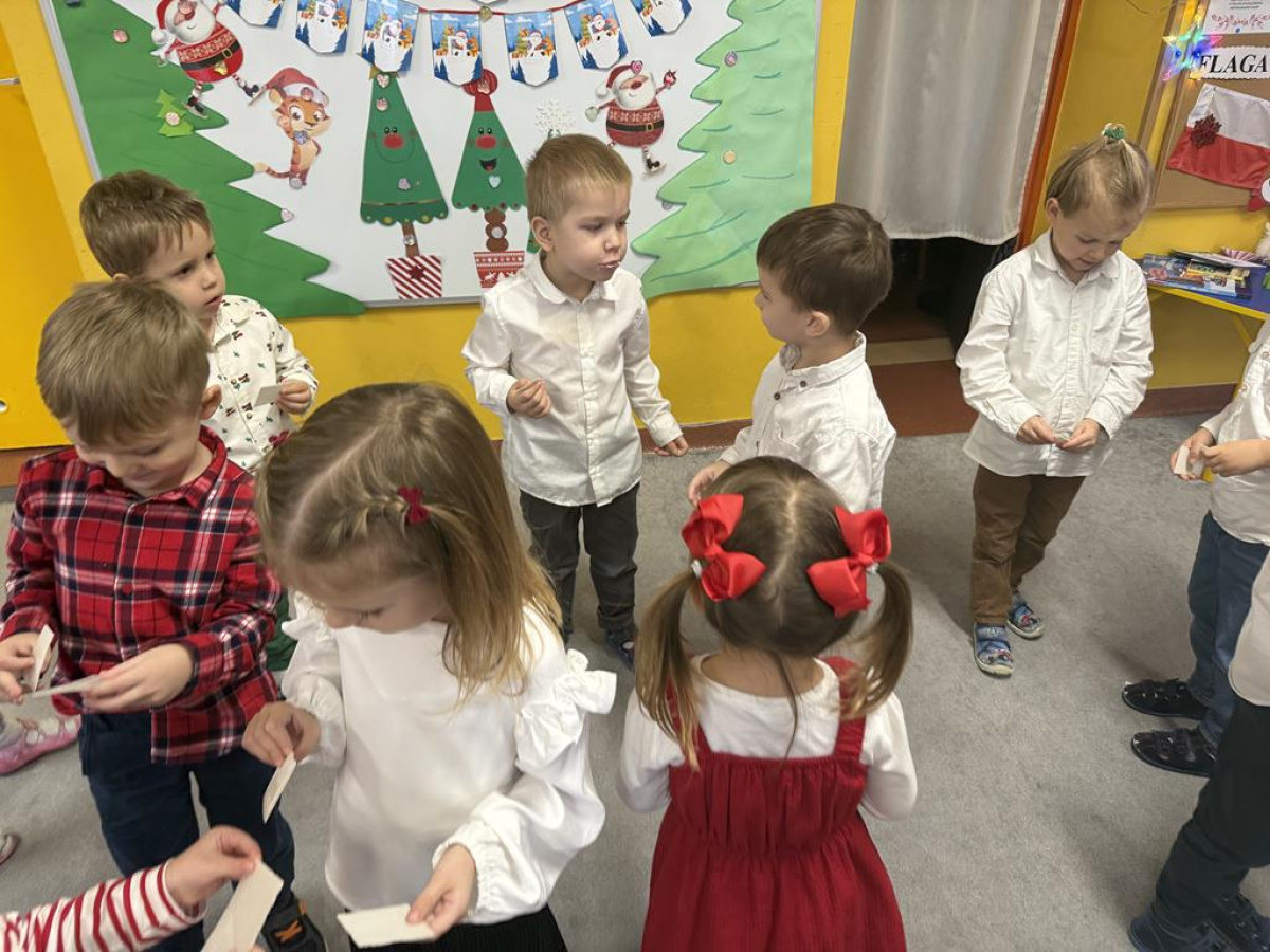 17 stycznia w przedszkolu odbyła się Wigilia przedszkolna. Tygryski ubrane odświętnie obejrzały piękne Jasełka w wykonaniu dzieci z grupy Świetliki. Kiedy wróciliśmy do sali okazało się, że Gwiazdor już w niej był i zostawił pod choinką prezenty dla dzieci. Przyszedł też czas na wspólne śpiewanie kolęd oraz przypomnienie sobie kolejnej tradycji - dzielenia się opłatkiem i składania życzeń na Święta. Po złożeniu sobie życzeń dzieci zasiadły do uroczystego obiadu wigilijnego. To był wyjątkowy dzień pełen radości i prawdziwie świątecznej atmosfery.