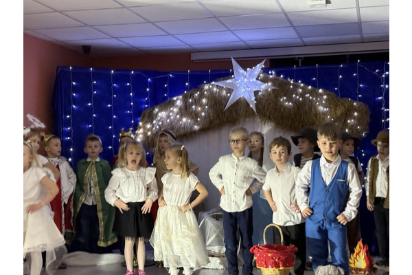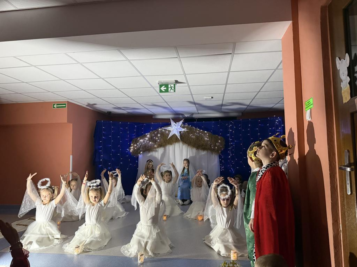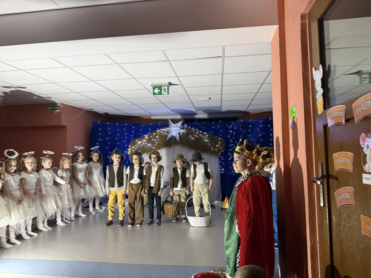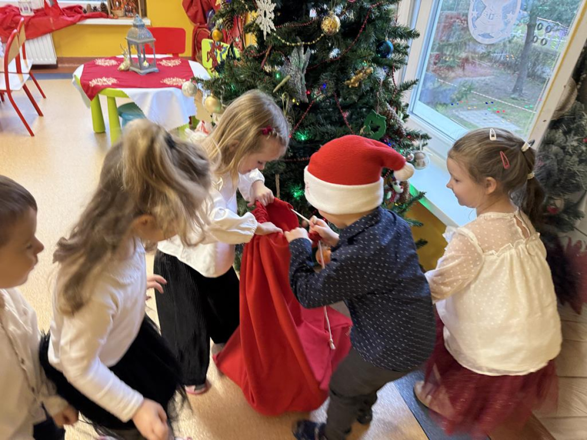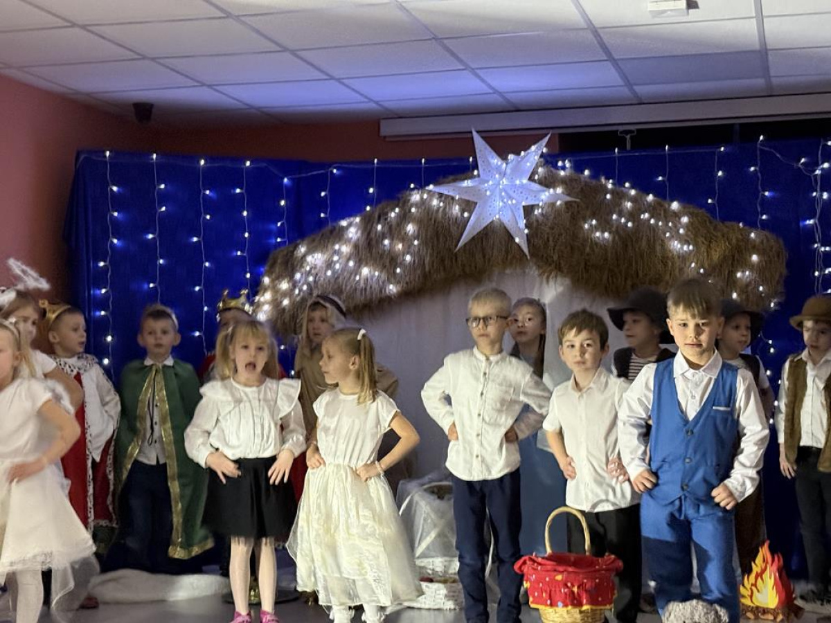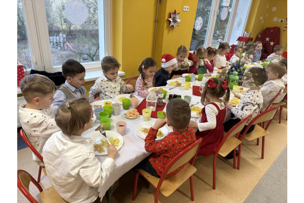 17 stycznia w przedszkolu odbyła się Wigilia przedszkolna. Tygryski ubrane odświętnie obejrzały piękne Jasełka w wykonaniu dzieci z grupy Świetliki. Kiedy wróciliśmy do sali okazało się, że Gwiazdor już w niej był i zostawił pod choinką prezenty dla dzieci. Przyszedł też czas na wspólne śpiewanie kolęd oraz przypomnienie sobie kolejnej tradycji - dzielenia się opłatkiem i składania życzeń na Święta. Po złożeniu sobie życzeń dzieci zasiadły do uroczystego obiadu wigilijnego. To był wyjątkowy dzień pełen radości i prawdziwie świątecznej atmosfery.