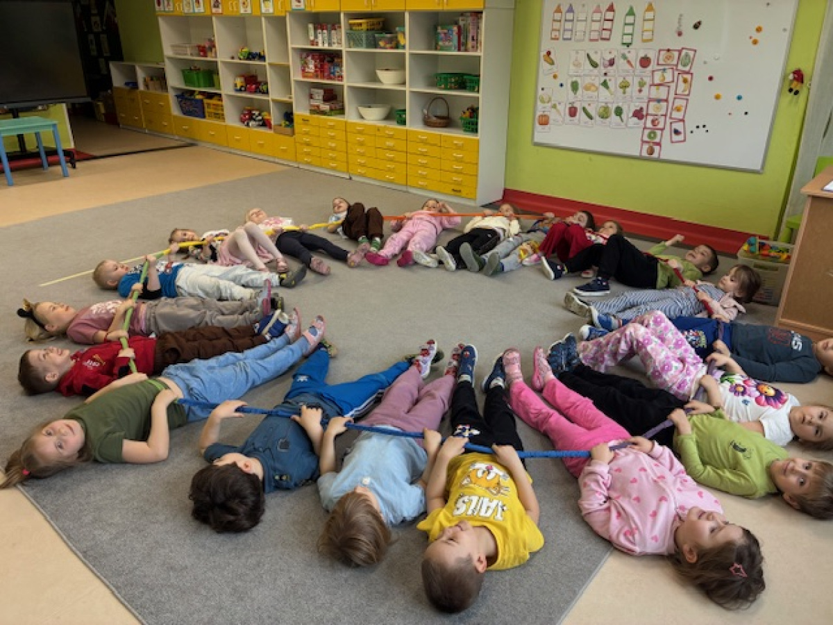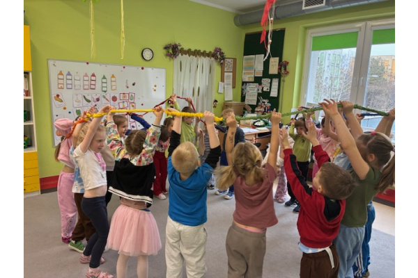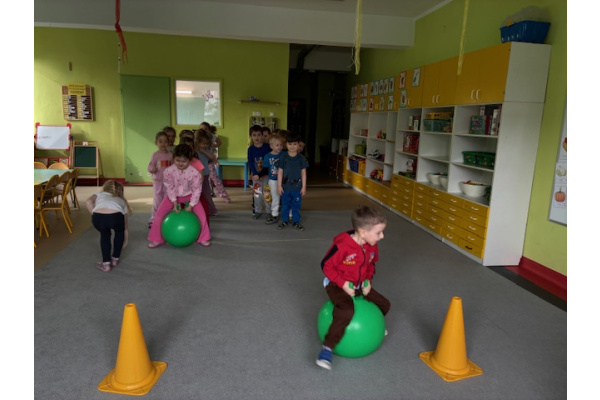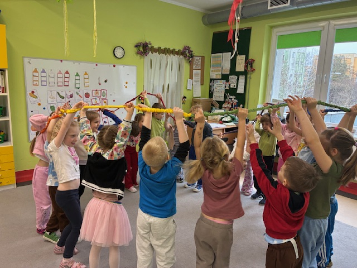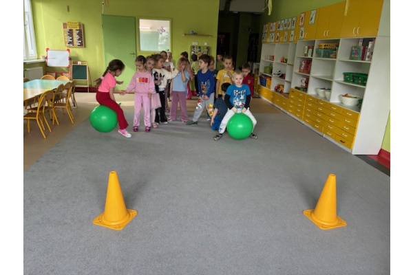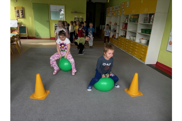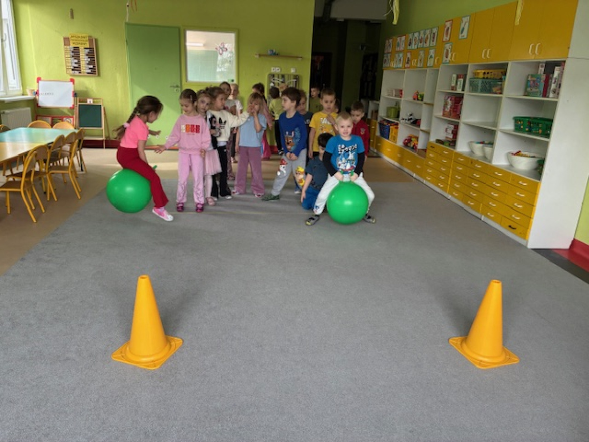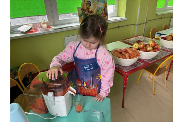 Wiosną dzieci z grupy „Myszek”rozmawiały o zdrowym odżywianiu i znaczeniu codziennej aktywności ruchowej. Przedszkolaki z radością uczestniczyły w różnych zabawach i ćwiczeniach ruchowych – skakały na piłce, bawiły się z gumą sensoryczną oraz porównywały produkty zdrowe i niezdrowe.Na zakończenie zajęć dzieci samodzielnie przygotowały pyszny sok marchwiowo-jabłkowy, poznając przy tym wartości zdrowych warzyw i owoców. Był to czas pełen ruchu, radości i zdrowych inspiracji!