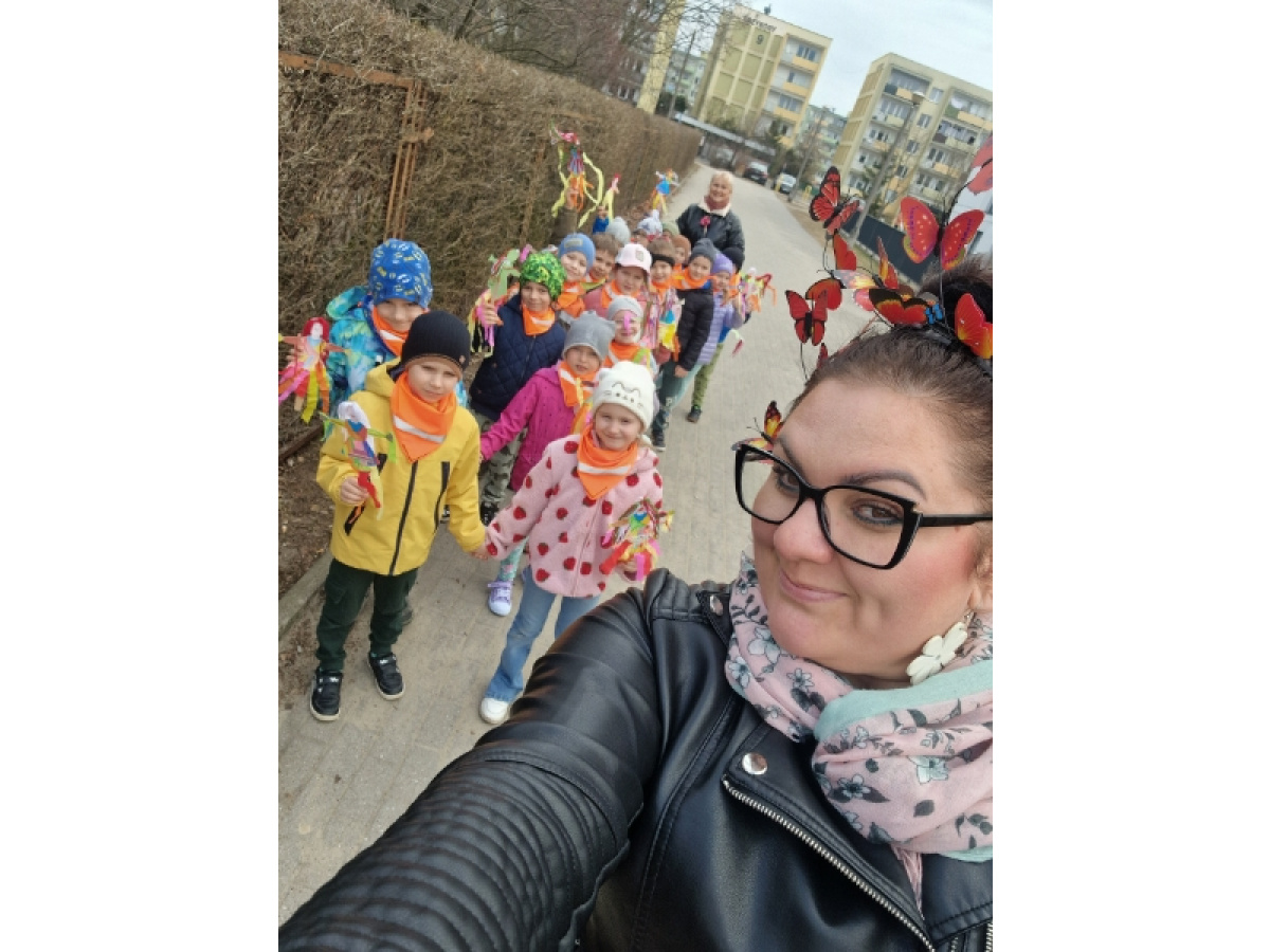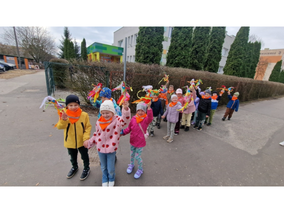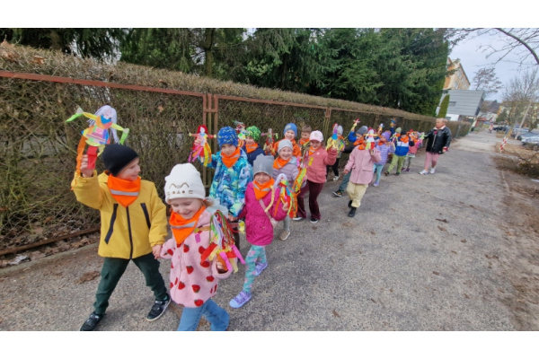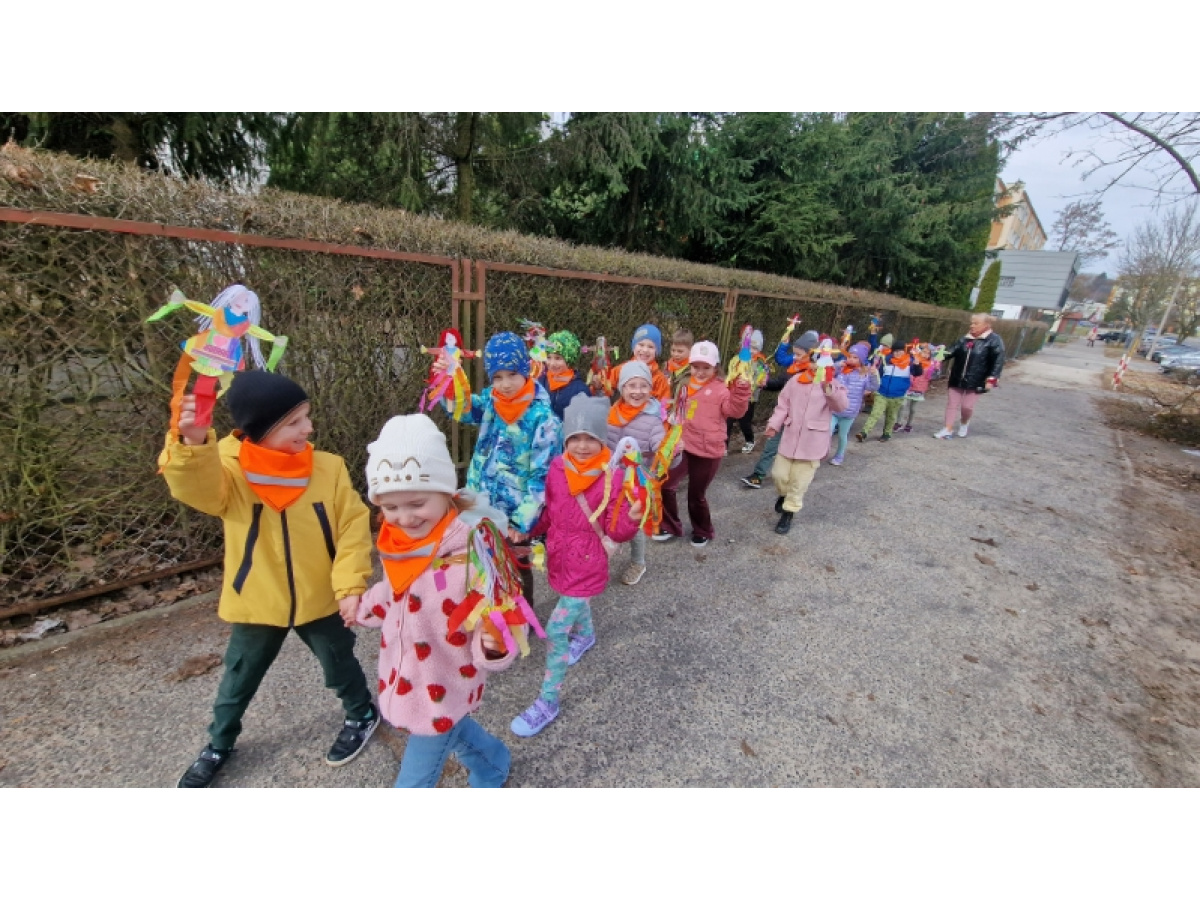 Dnia 20 marca Świetliki przywitały wiosnę. Najpierw obejrzeli występ dzieci z grupy Zajączki. Następnie udały się na pochód z własnoręcznie zrobionymi Marzannami i głośno przeganiały zimę! Potem stworzyli piękne wiosenne ilustarcje.