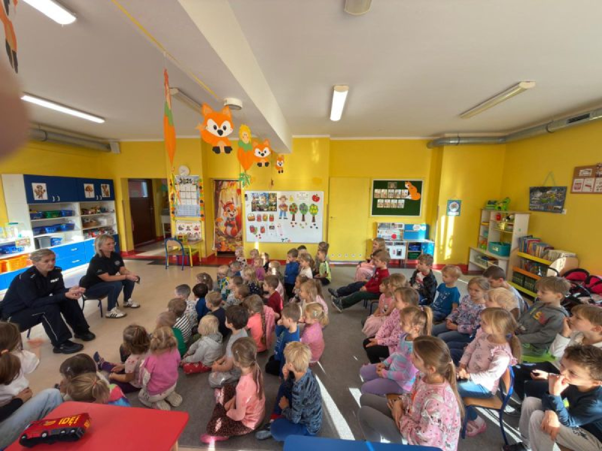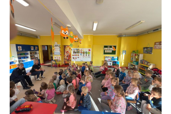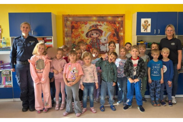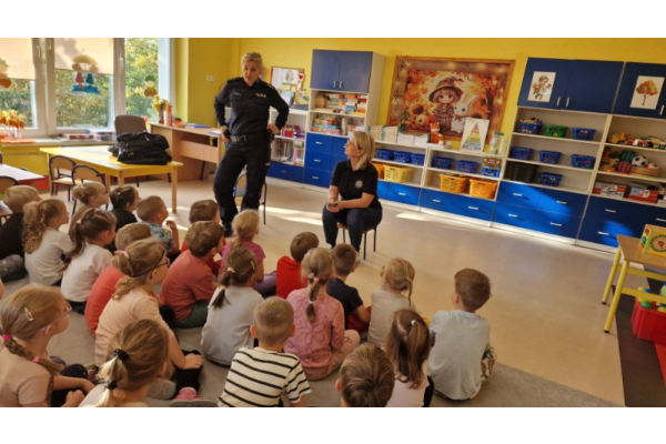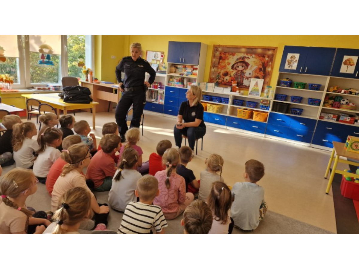 Panie policjantki przeprowadziły prelekcję na temat bezpiecznego poruszania się po drodze. Dzieci utrwaliły zasady przechodzenia przez jezdnię i rolę elementów odblaskowych. To była bardzo pouczająca lekcja bezpieczeństwa drogowego. Na koniec dzieci miały okazje przymierzyć kajdanki, co sprawiło im ogromną radość ;)