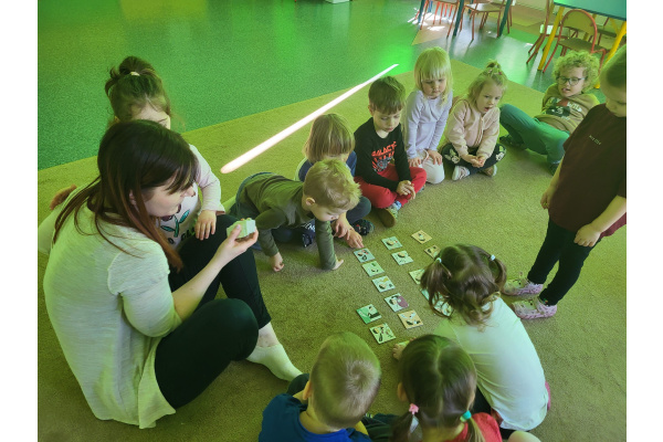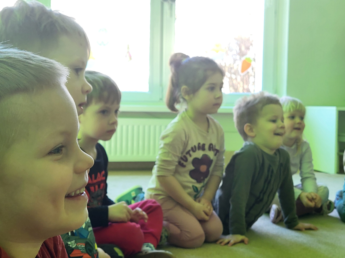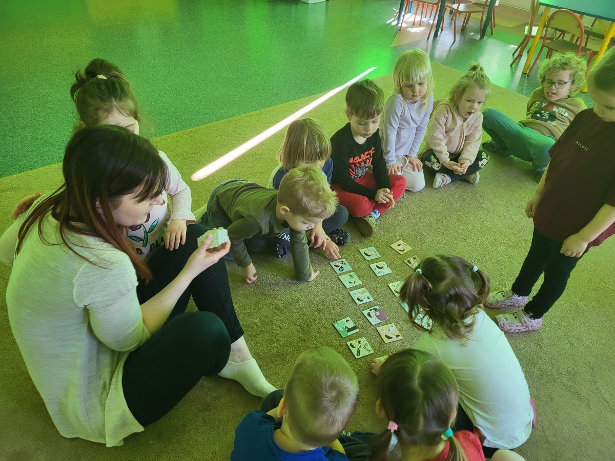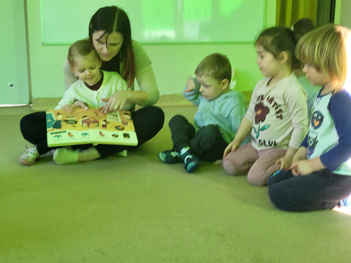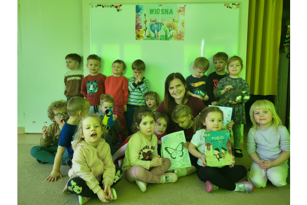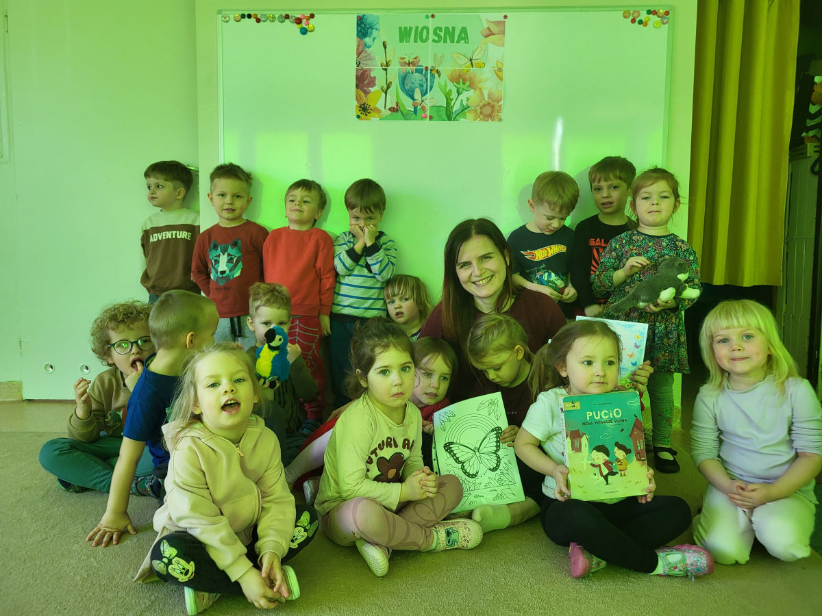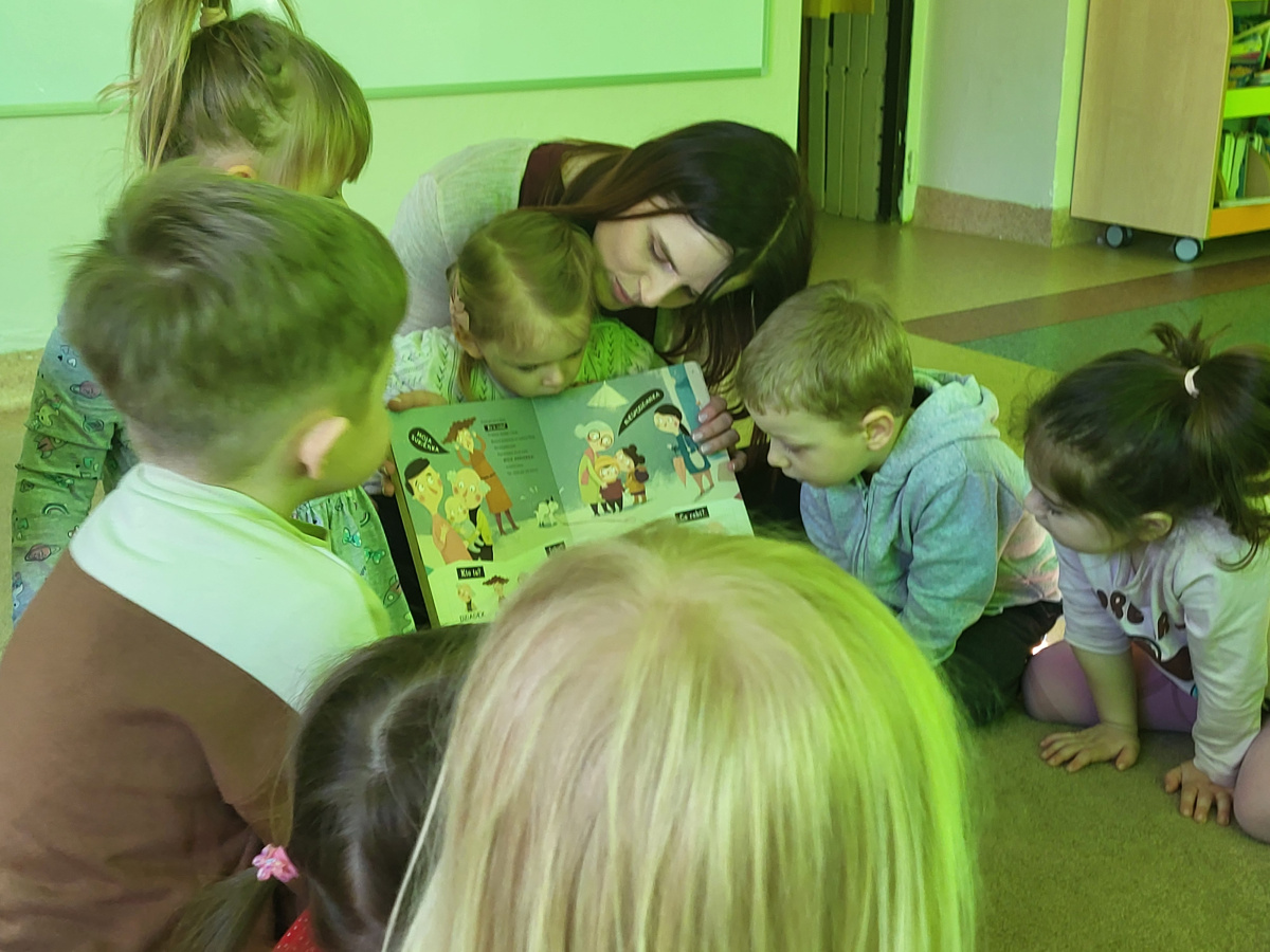 W ramach akcji „Cała Polska czyta dzieciom” odwiedziła nas mama Oli, która przeczytała dzieciom książkę „Pucio uczy się mówić”. Przedszkolaki z dużym zainteresowaniem wysłuchały opowiadania, a następnie uczestniczyły w zabawie typu memory, dopasowując obrazki. Było to miłe i wartościowe spotkanie, które rozwijało uwagę oraz zainteresowanie książką.