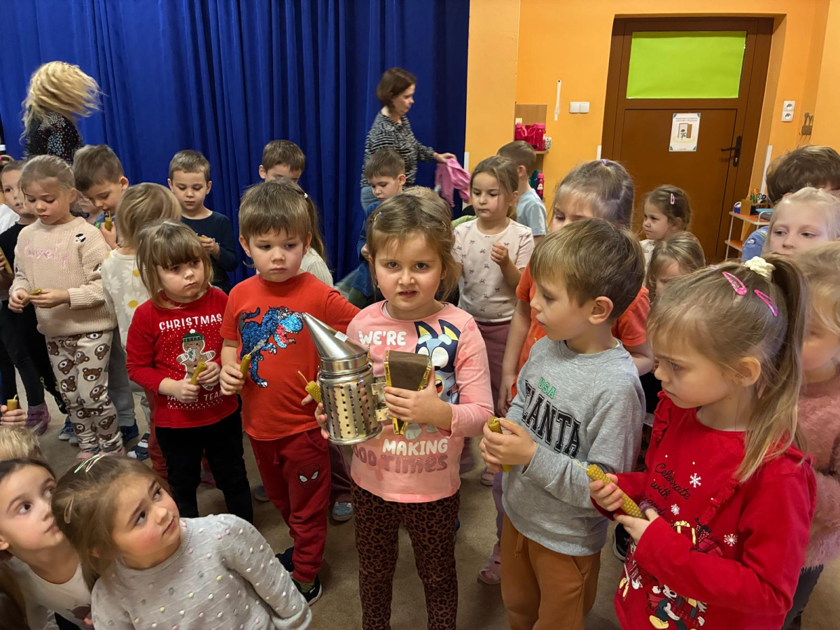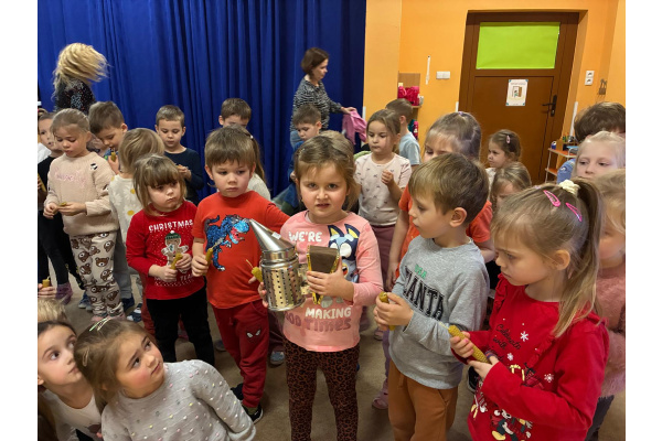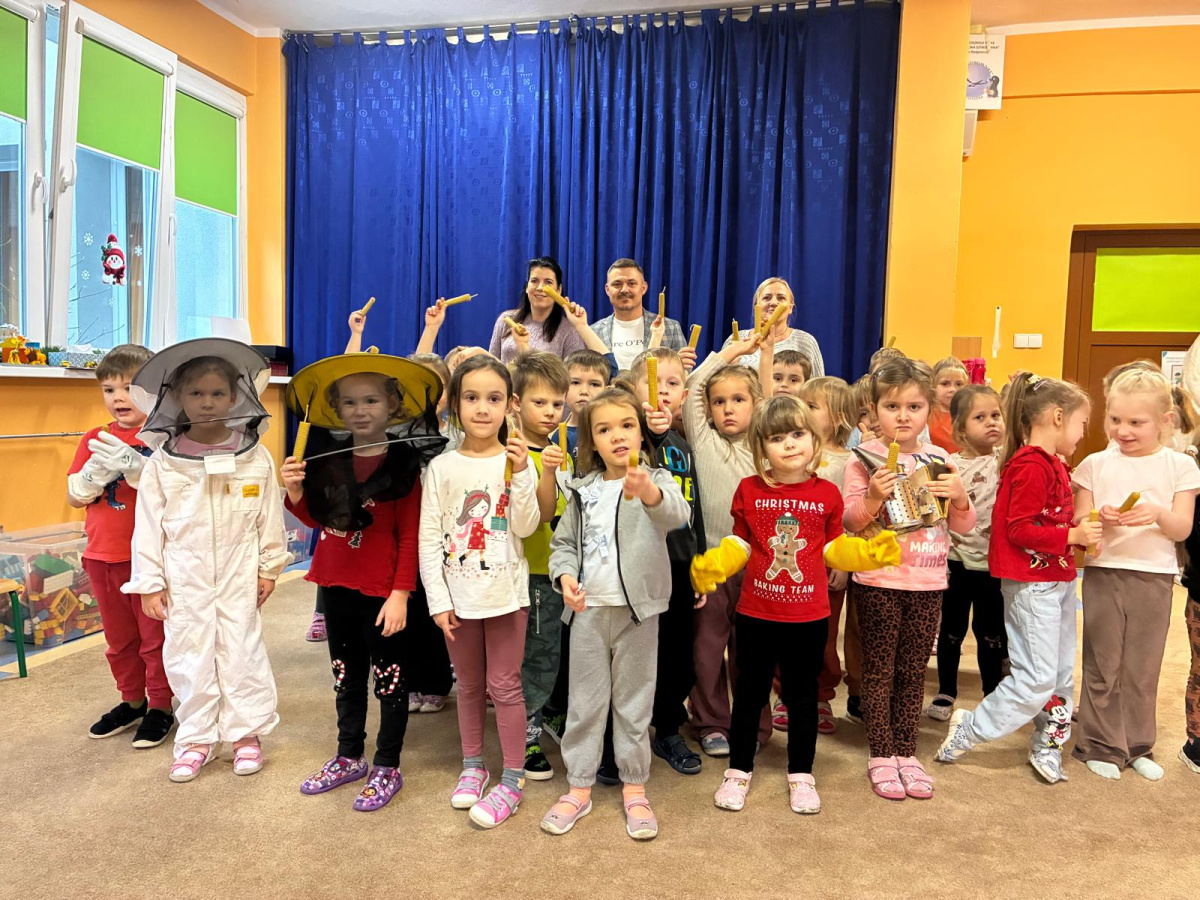 Ostatnio do przedszkola zawitał Pan Pszczelarz, który opowiedział nam o swojej pracy. Dodatkowo każdy z nas zrobił świece z wosku. Na koniec wręczyliśmy Panu podziękowanie za super lekcję, a w zamian dostaliśmy miodziki, które mogliśmy zabrać ze sobą do domu.