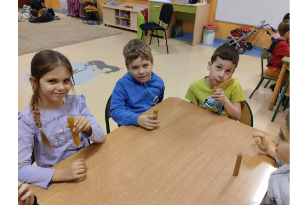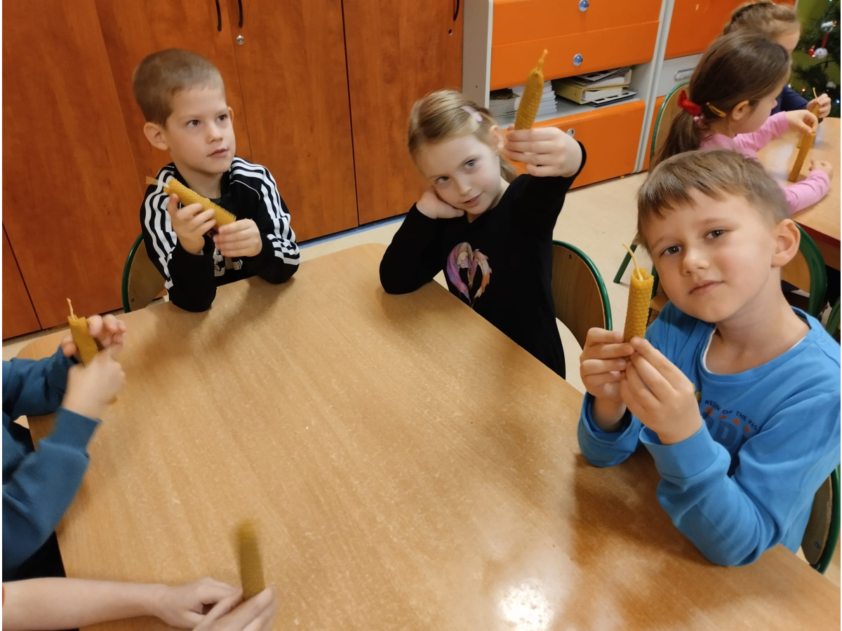 4. grudnia nasze przedszkole odwiedził Pszczelarz, który prowadzi własną pasiekę. Opowiedział on wiele ciekawowstek na temat życia pszczół ich pracy w ulu, o produktach powstałych z ich ciężkiej pracy. Na zakończenie spotkania, każde dziecko miało możliwość wykonać własną świeczkę z pszczelego wosku. Serdecznie dziękujemy za wizytę i bardzo interesującą lekcję.