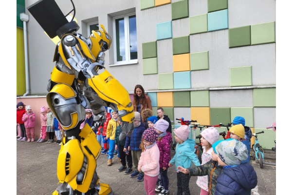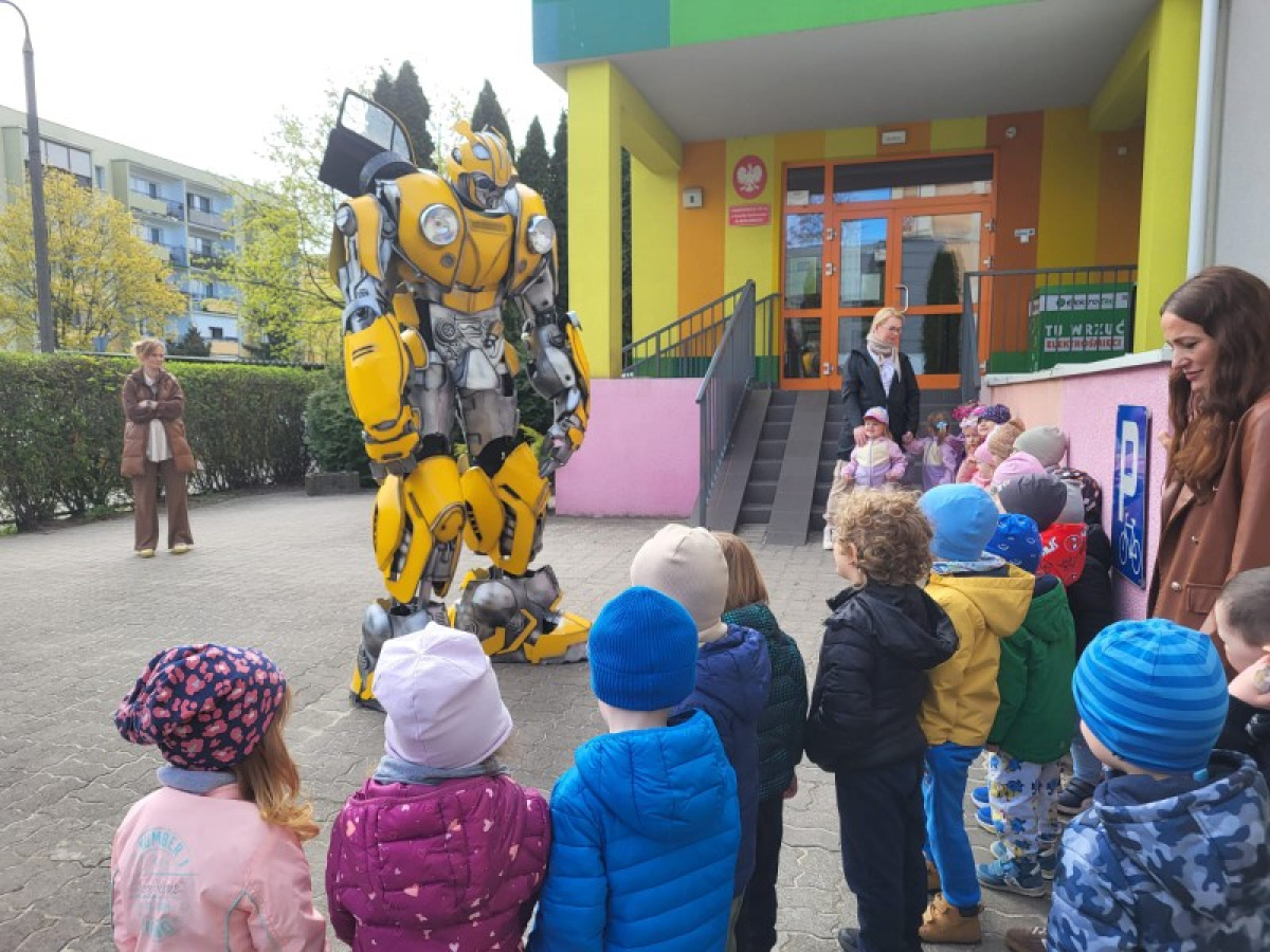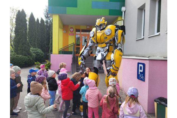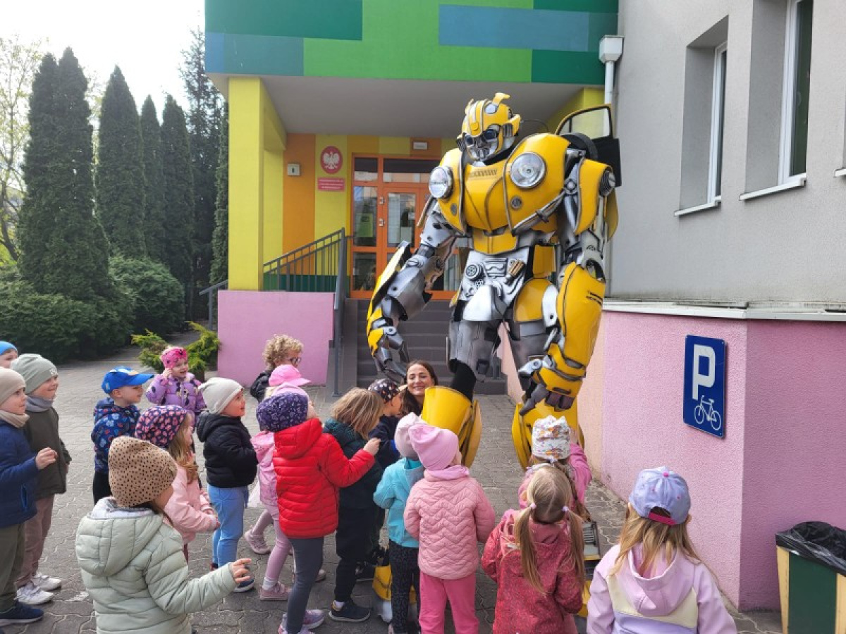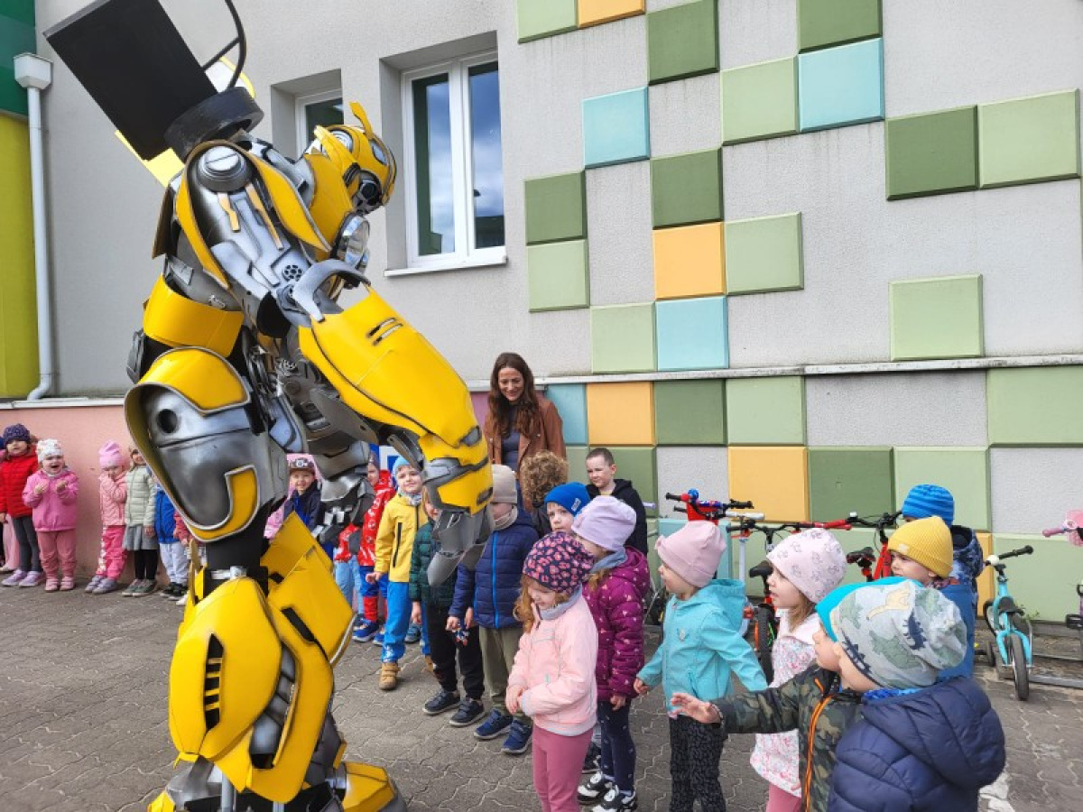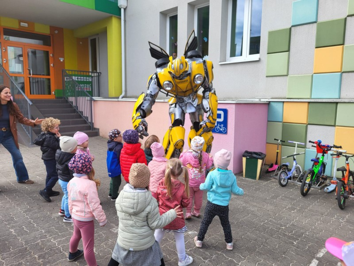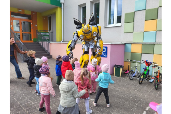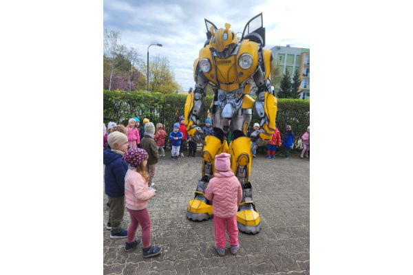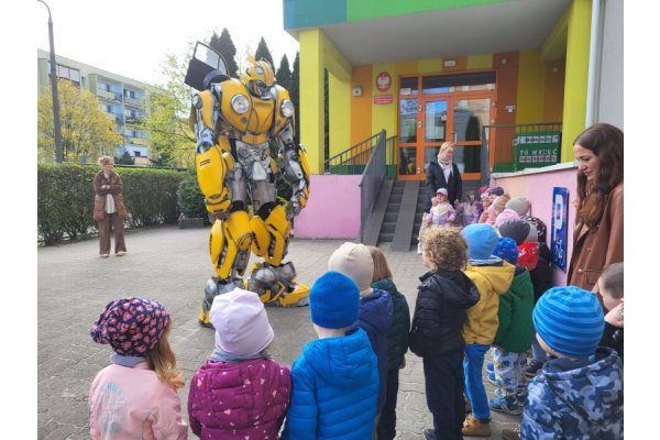 23 kwietnia nasze przedszkole odwiedził wyjątkowy gość – Transformer o imieniu Terrax, Strażnik Przyrody. Z okazji Dnia Ziemi dzieci miały okazję dowiedzieć się, jak dbać o naszą planetę, dlaczego warto segregować odpady oraz jak ważna jest troska o środowisko. Spotkanie było pełne radości, wspólnej zabawy i cennych ekologicznych wskazówek.