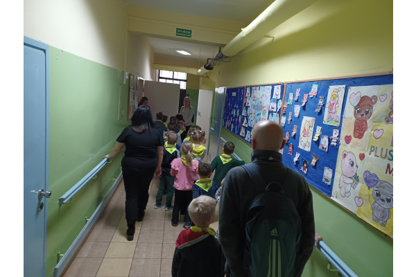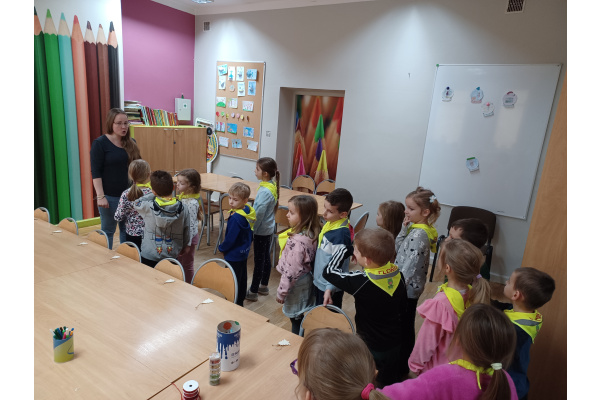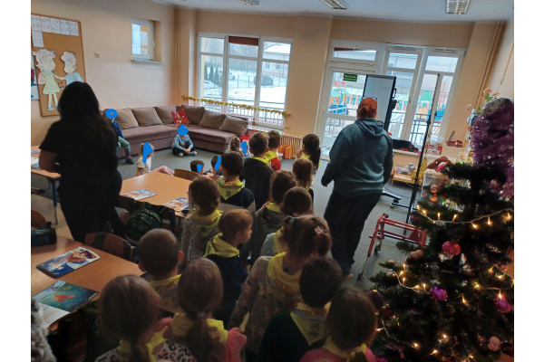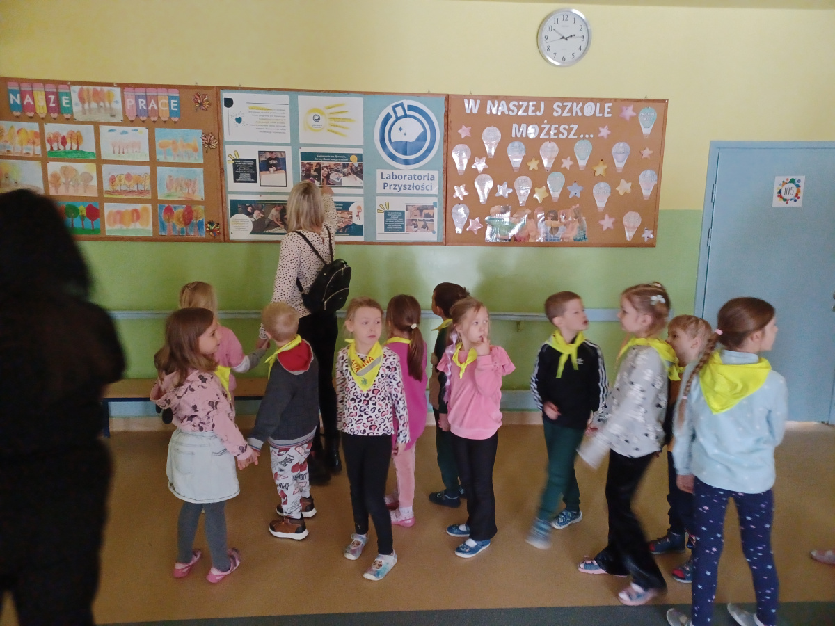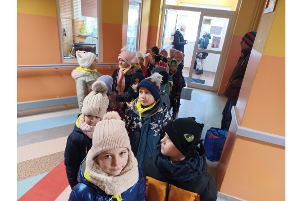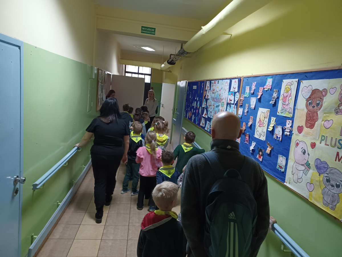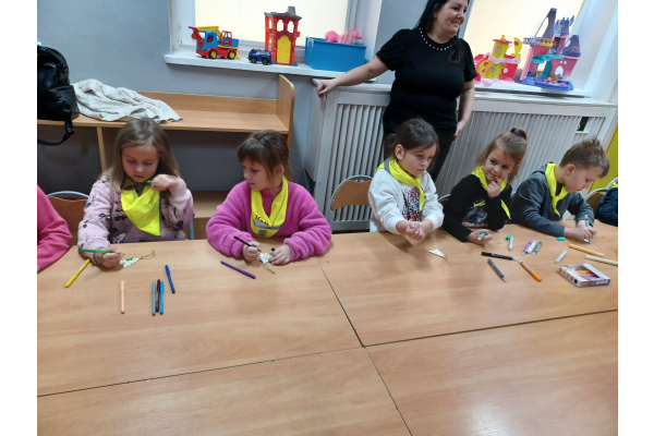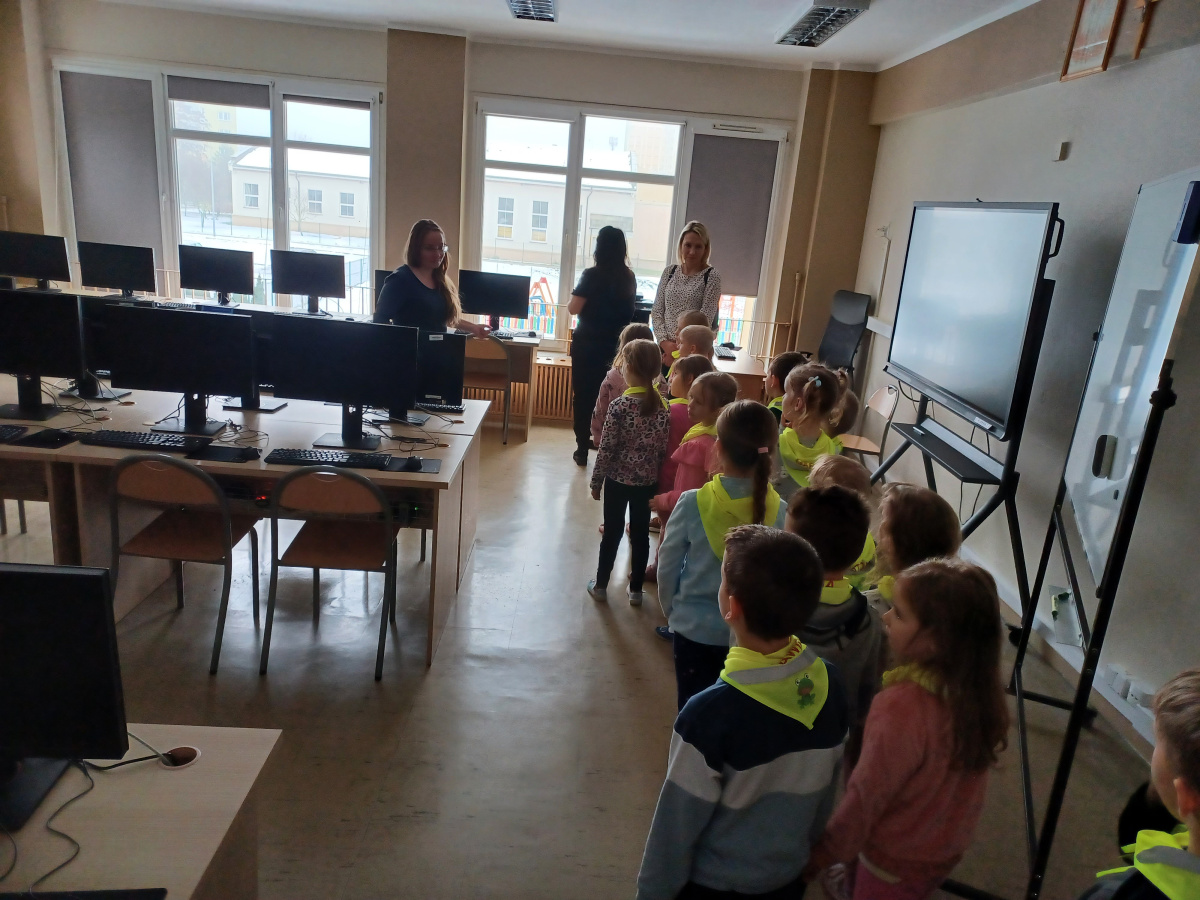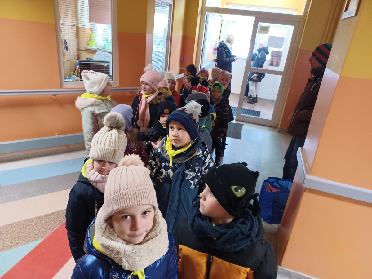 2. grudnia Żabki udały się z wizytą do Szkoły Podstawowej nr 65 Filia. Naszym przewodnikiem w budynku była pani Monika, która oprowadziła nas i pokazała nam różne pomieszczenia w szkole, opowiedziała, jakie zajęcia odbywają się w poszczególnych klasach. Na koniec udaliśmy się do świetlicy, w której wzięliśmy udział w zajęciach plastycznych. Dzieci wykonały piękne ozdoby choinkowe. Wizyta w szkole była wielkim przeżyciem dla przedszkolaków, a największe wrażenie zrobiła sala komputerowa. Serdecznie dziękujemy za zaproszenie, oprowadzenie i zajęcia!