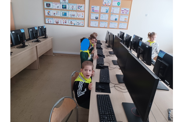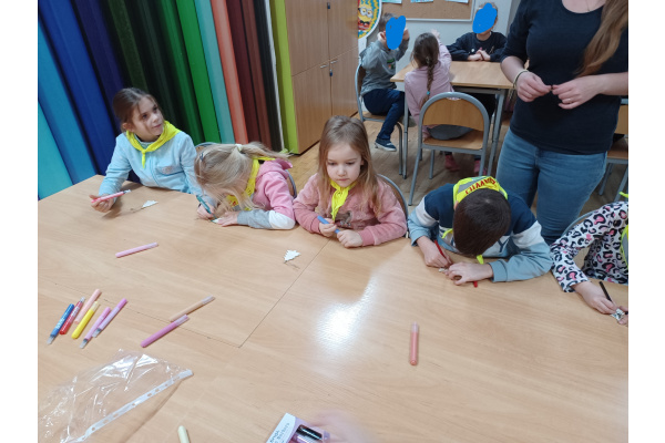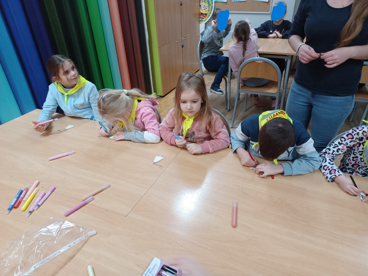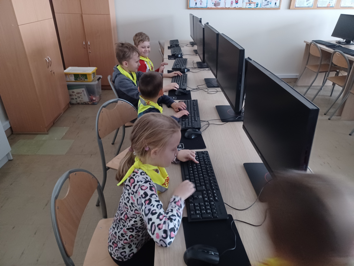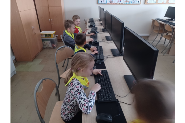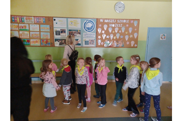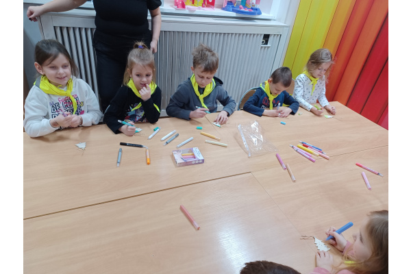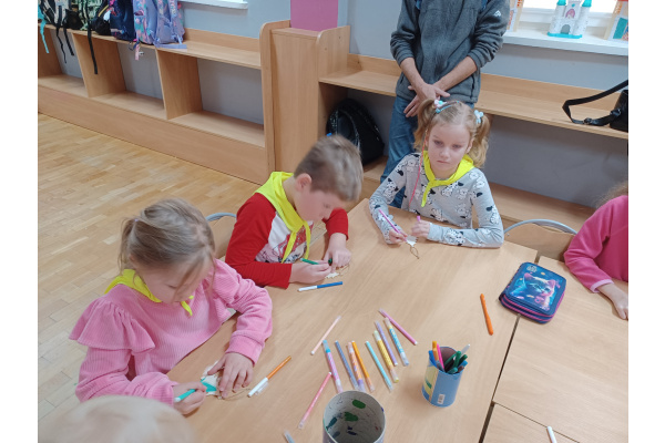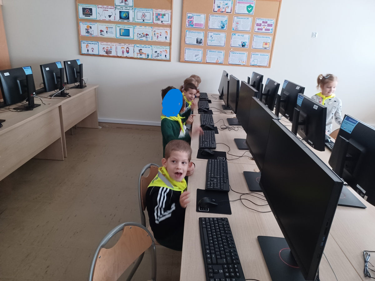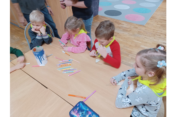 2. grudnia Żabki udały się z wizytą do Szkoły Podstawowej nr 65 Filia. Naszym przewodnikiem w budynku była pani Monika, która oprowadziła nas i pokazała nam różne pomieszczenia w szkole, opowiedziała, jakie zajęcia odbywają się w poszczególnych klasach. Na koniec udaliśmy się do świetlicy, w której wzięliśmy udział w zajęciach plastycznych. Dzieci wykonały piękne ozdoby choinkowe. Wizyta w szkole była wielkim przeżyciem dla przedszkolaków, a największe wrażenie zrobiła sala komputerowa. Serdecznie dziękujemy za zaproszenie, oprowadzenie i zajęcia!