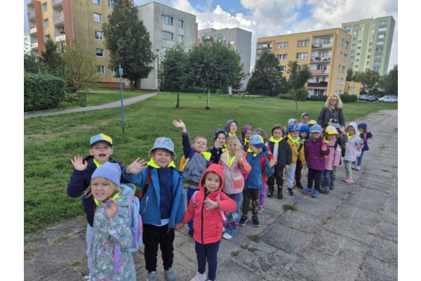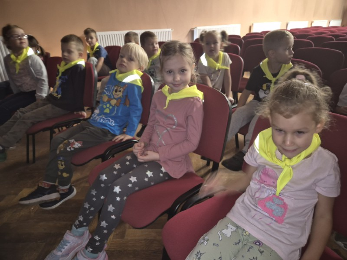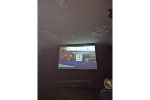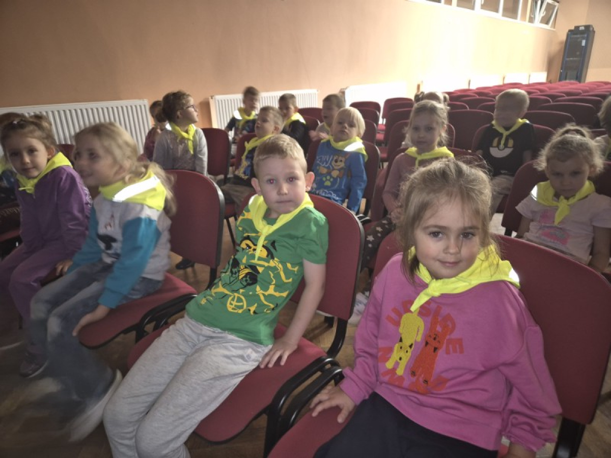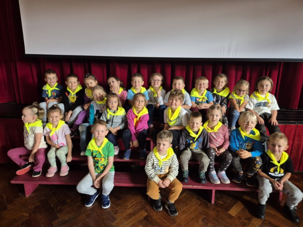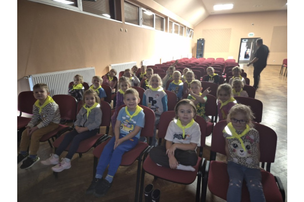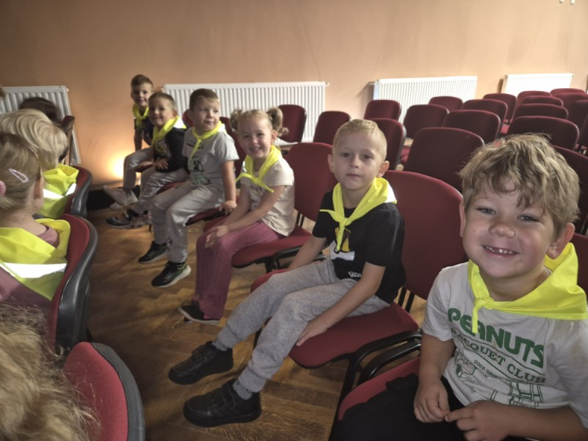 "Zajączki" udały się na pieszą wycieczkę w celu obejrzenia bajek. Podczas seansu filmowego dzieci poznały przygody Kubusia Puchatka i jego przyjaciół. Dużo humoru i wartości wychowawcze bajek rozbudziły zainteresowanie małych widzów. Wycieczka była okazją do utrwalenia zasad bezpiecznego poruszania się po ulicy.