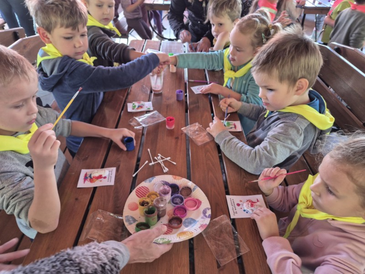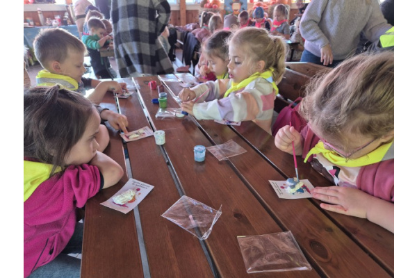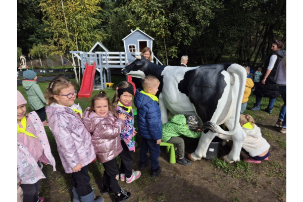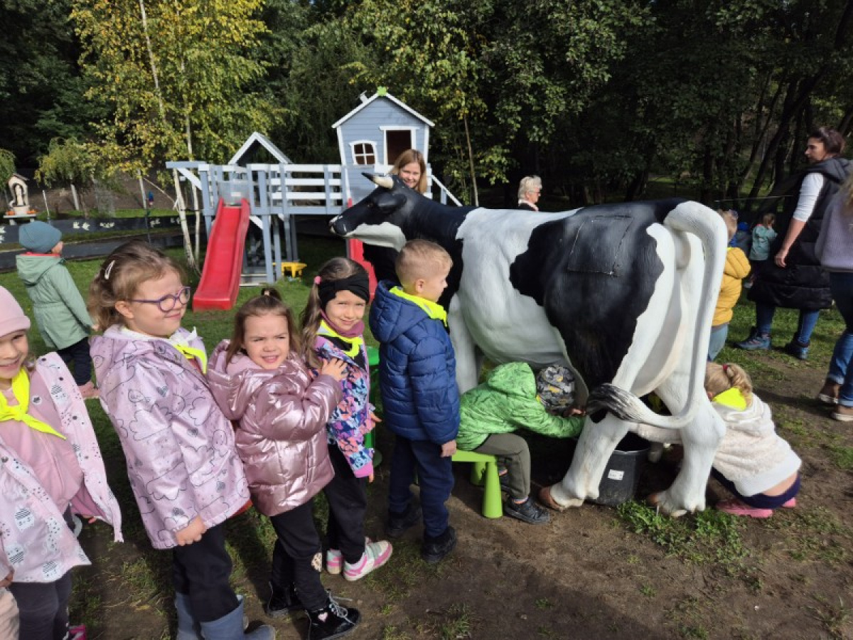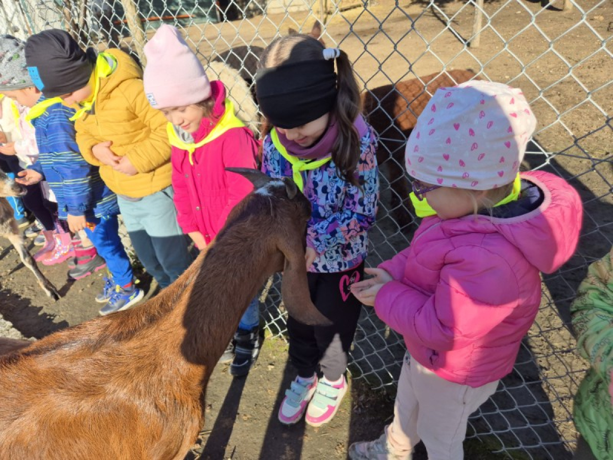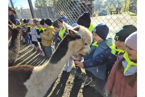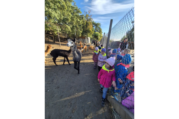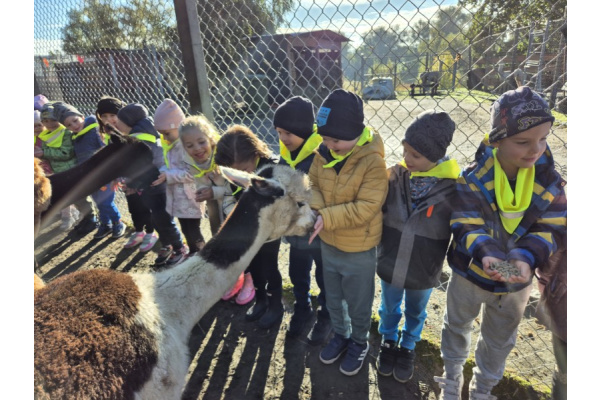 Wyjazd autokarem z przedszkola to duże przeżycie dla dzieci. Dlatego już dużo wcześniej przedszkolacy przygotowywali się do wycieczki. Po przyjeździe na miejsce dzieci miały możliwość obcowania ze zwierzętami, karmić je. Dowiedziały się ciekawostek na temat życia alpak, kóz, osła, wielbłąda , kangura, koni. Przedszkolacy uczestniczyli w zajęciach plastycznych , przejażdżce traktorem a także zabawach ruchowych na świeżym powietrzu. Uśmiechy nie znikały z twarzy dzieci, które w promieniach jesiennego słońca bezpiecznie wróciły do przedszkola.