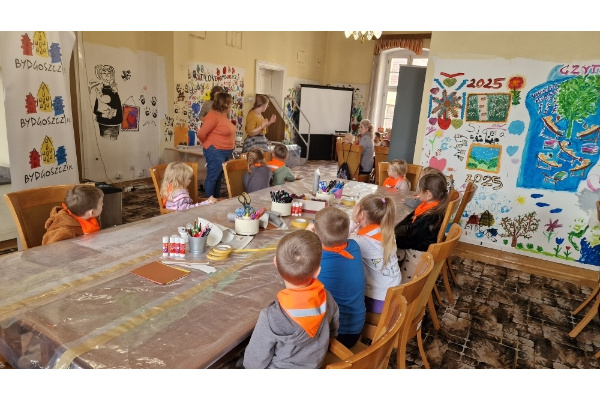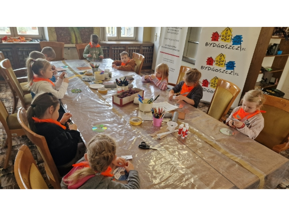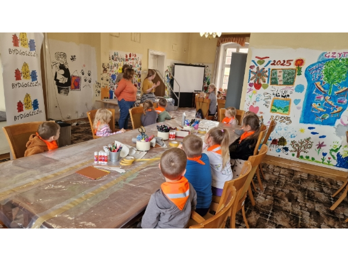 Świetliki udały się na warsztaty edukacyjne, poświęcone tematowi recyklingu i dbania o środowisko, które odbyły się w Bibliotece Głównej. Zajęcia miały na celu wprowadzenie najmłodszych w ideę segregacji odpadów oraz pokazanie, że z pozornie niepotrzebnych materiałów można stworzyć coś nowego i pożytecznego. Na początku spotkania dzieci wysłuchały krótkiej pogadanki na temat tego, czym jest recykling oraz dlaczego ważne jest segregowanie śmieci. Następnie przystąpiono do zajęć plastycznych – przedszkolaki wykonywały własnoręczne prace z wykorzystaniem materiałów pochodzących z recyklingu (m.in. kawałkach materiałów, płyt CD, starych gazet). Dzieci z dużym zaangażowaniem uczestniczyły w warsztatach, wykazując się kreatywnością oraz chęcią współpracy. Zajęcia zakończyły się prezentacją wykonanych prac. Odwiedziliśmy także ciekawe miejsca w centrum Bydgoszczy.