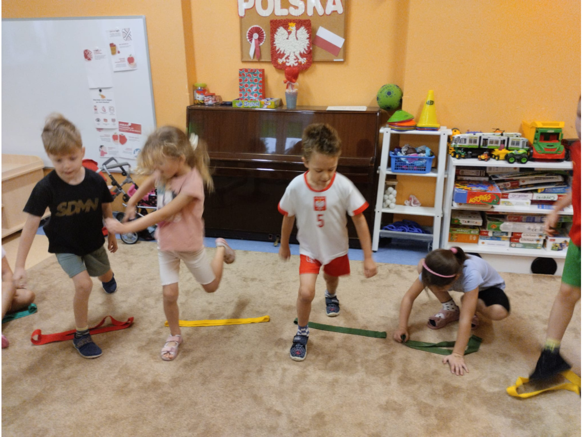 O tym, że sport to ważna sprawa, każda Żabka dobrze wie. Ćwiczeń nie odmawia, bo zdrowo rosnąć chce!!! Dzieci z grupy IX bardzo lubią sportowe wyzwania oraz wszelkie formy aktywności fizycznej. Są szybkie i zwinne, wspaniale radzą sobie z każdym ćwiczeniem. Brawo przedszkolaki!