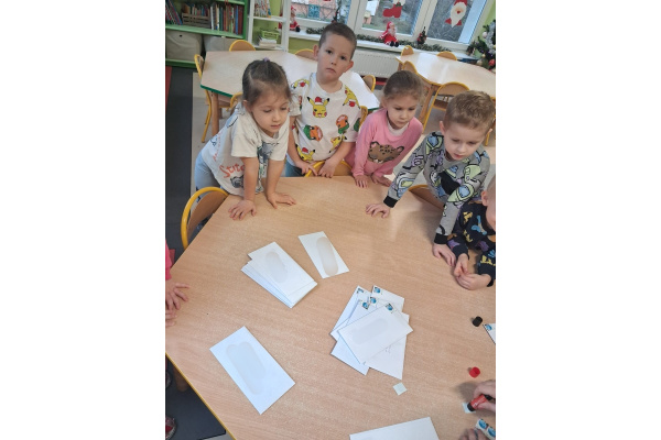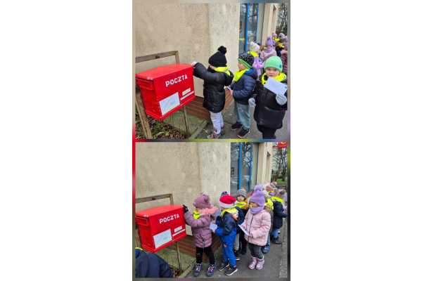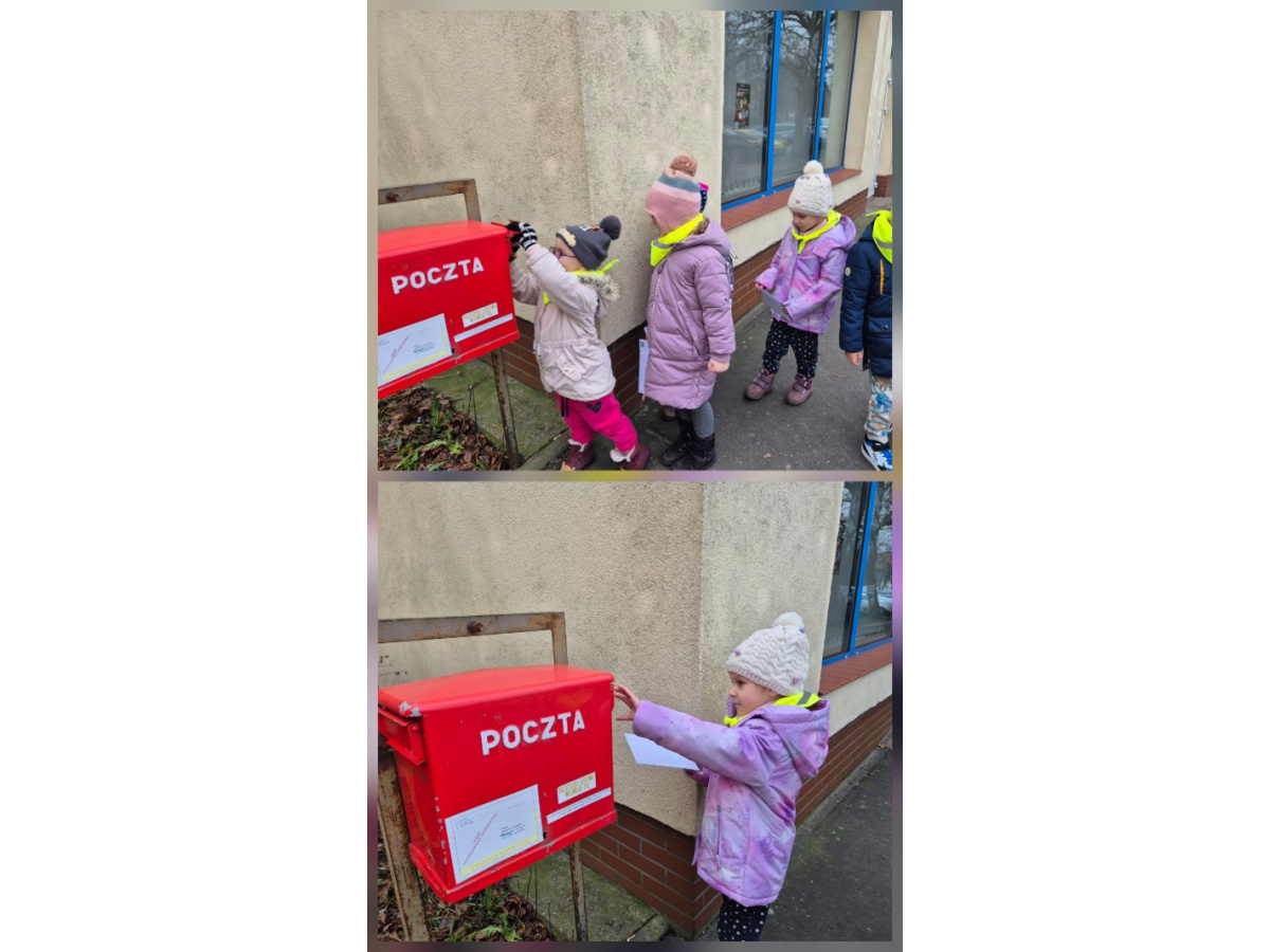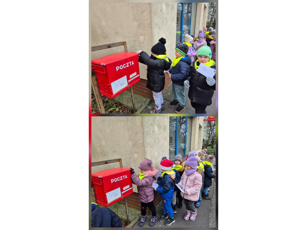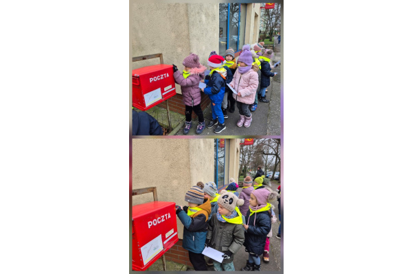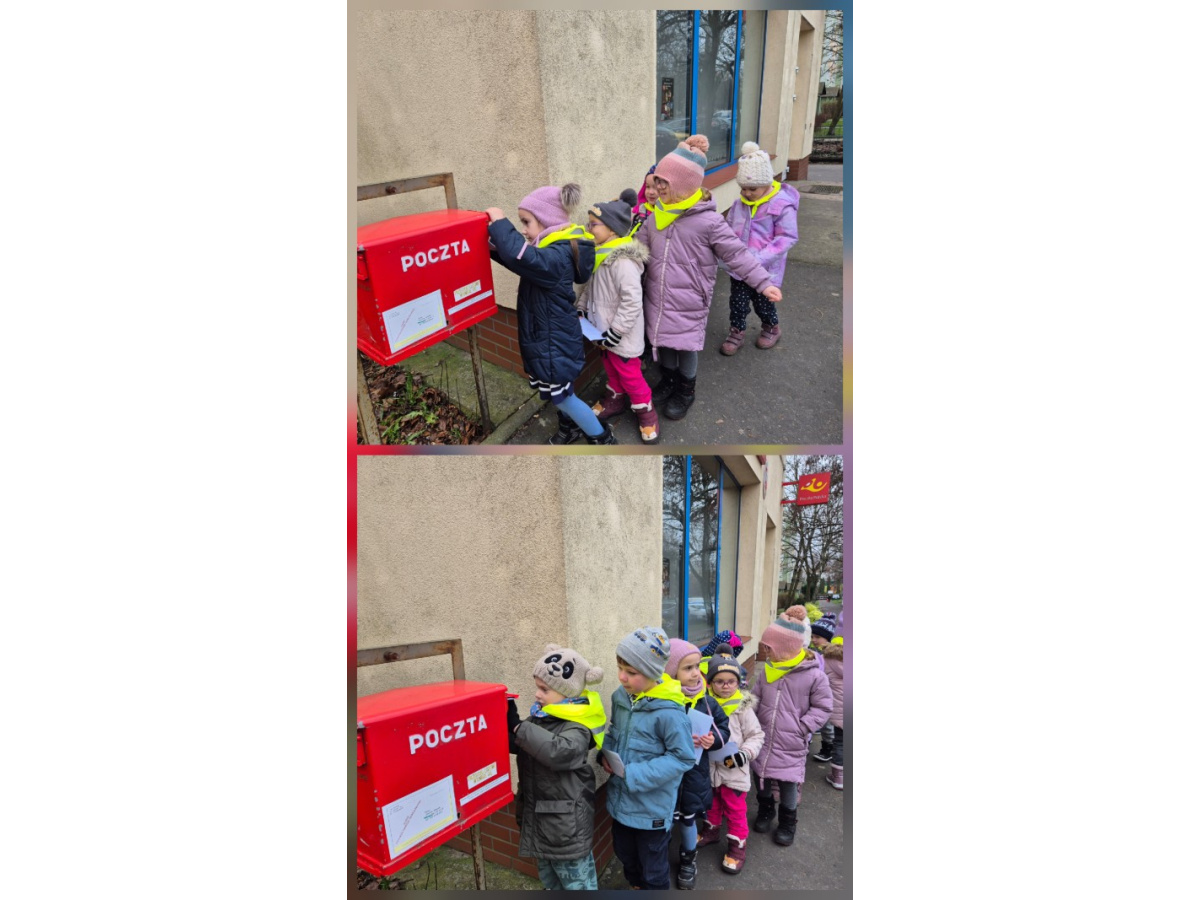 Piękna tradycja związana ze Świętami Bożego Narodzenia to składanie życzeń za pomocą kartek świątecznych. Dzieci wraz z paniami takie kartki przygotowały i poszły wrzucić je do skrzynki na pobliskiej Poczcie. Przy okazji przedszkolacy dowiedzieli się kto to jest nadawca, adresat, listonosz. Zamieszczone w kartkach życzenia na pewno sprawią radość rodzinom przedszkolaków.