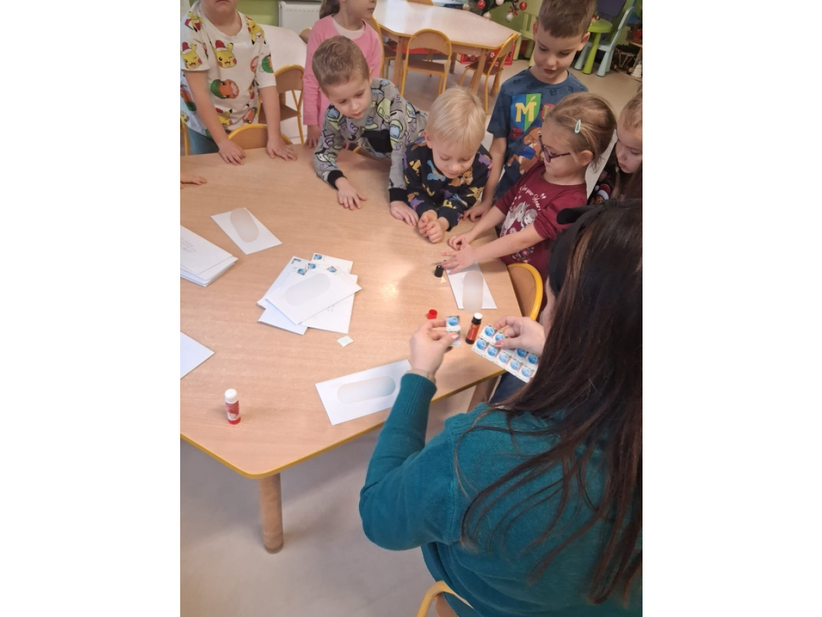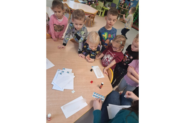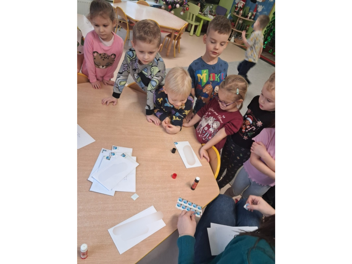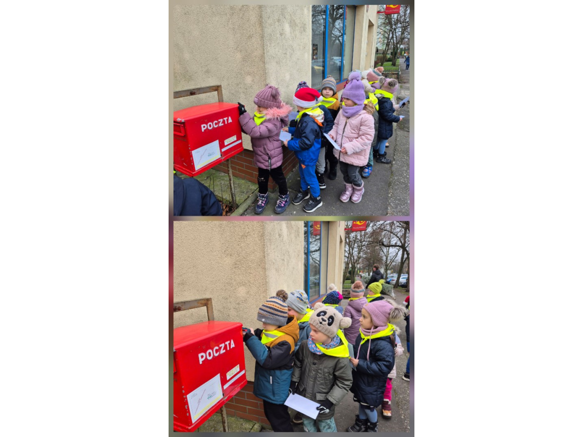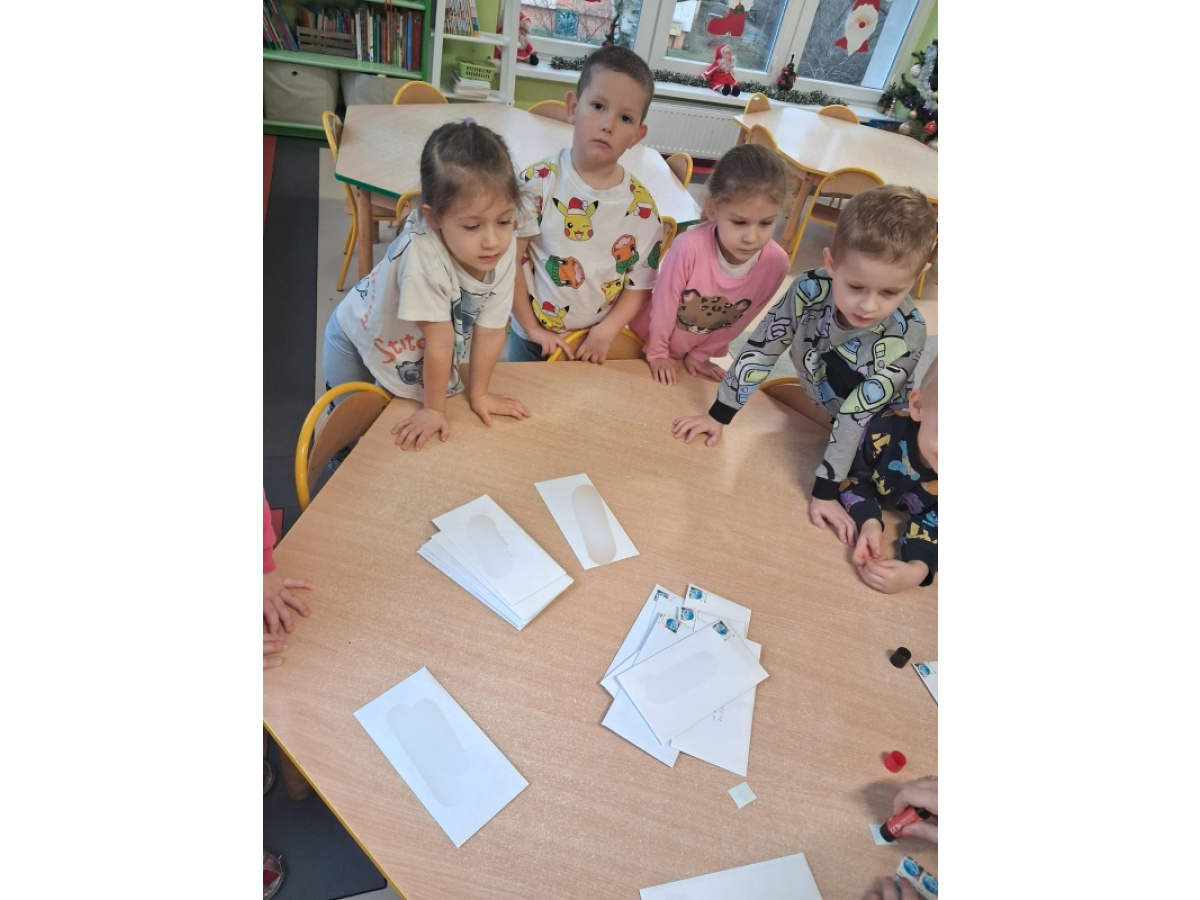 Piękna tradycja związana ze Świętami Bożego Narodzenia to składanie życzeń za pomocą kartek świątecznych. Dzieci wraz z paniami takie kartki przygotowały i poszły wrzucić je do skrzynki na pobliskiej Poczcie. Przy okazji przedszkolacy dowiedzieli się kto to jest nadawca, adresat, listonosz. Zamieszczone w kartkach życzenia na pewno sprawią radość rodzinom przedszkolaków.