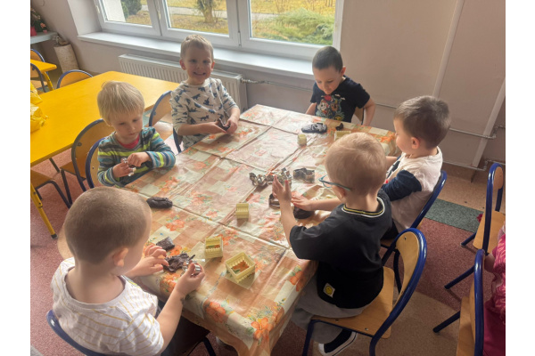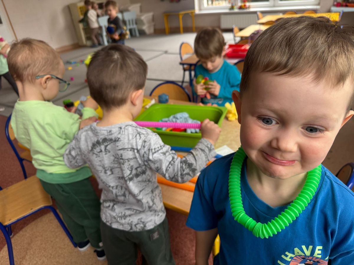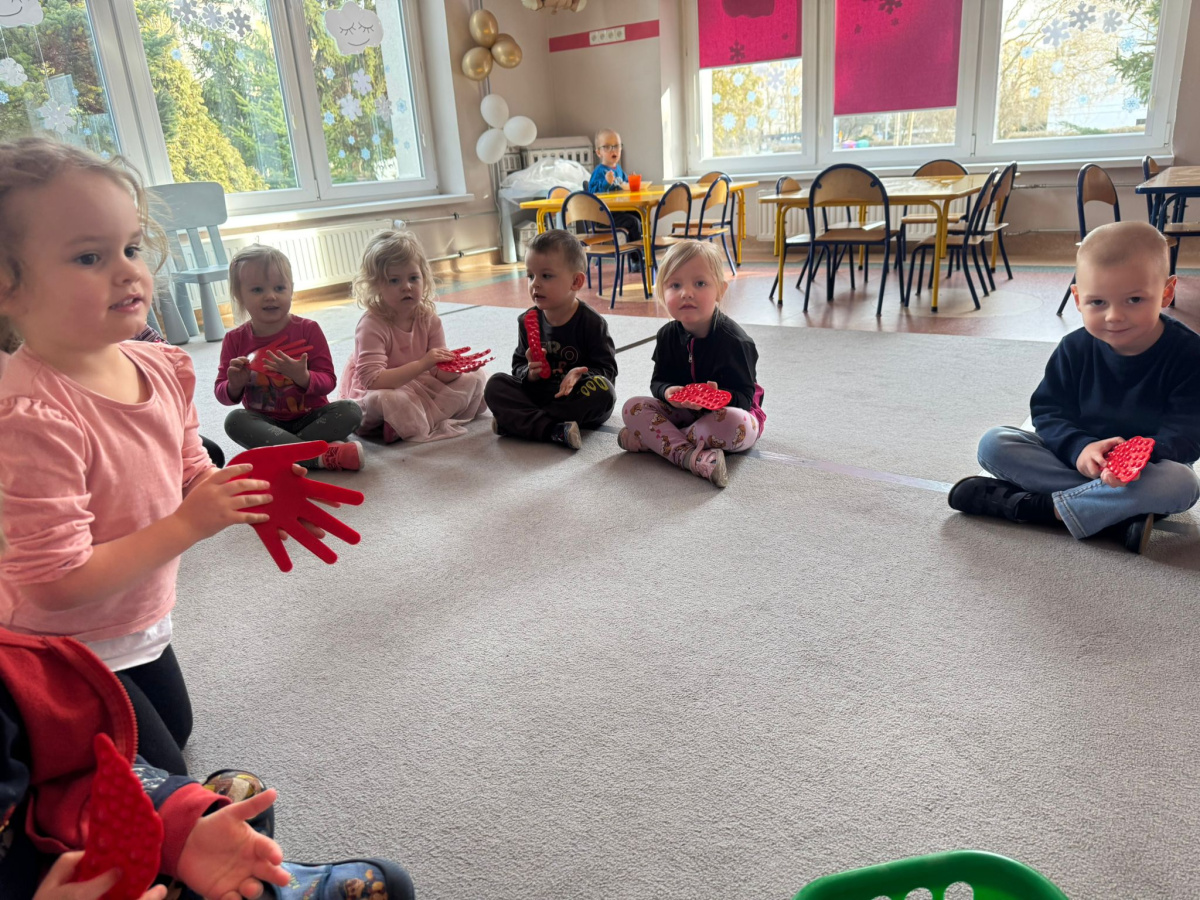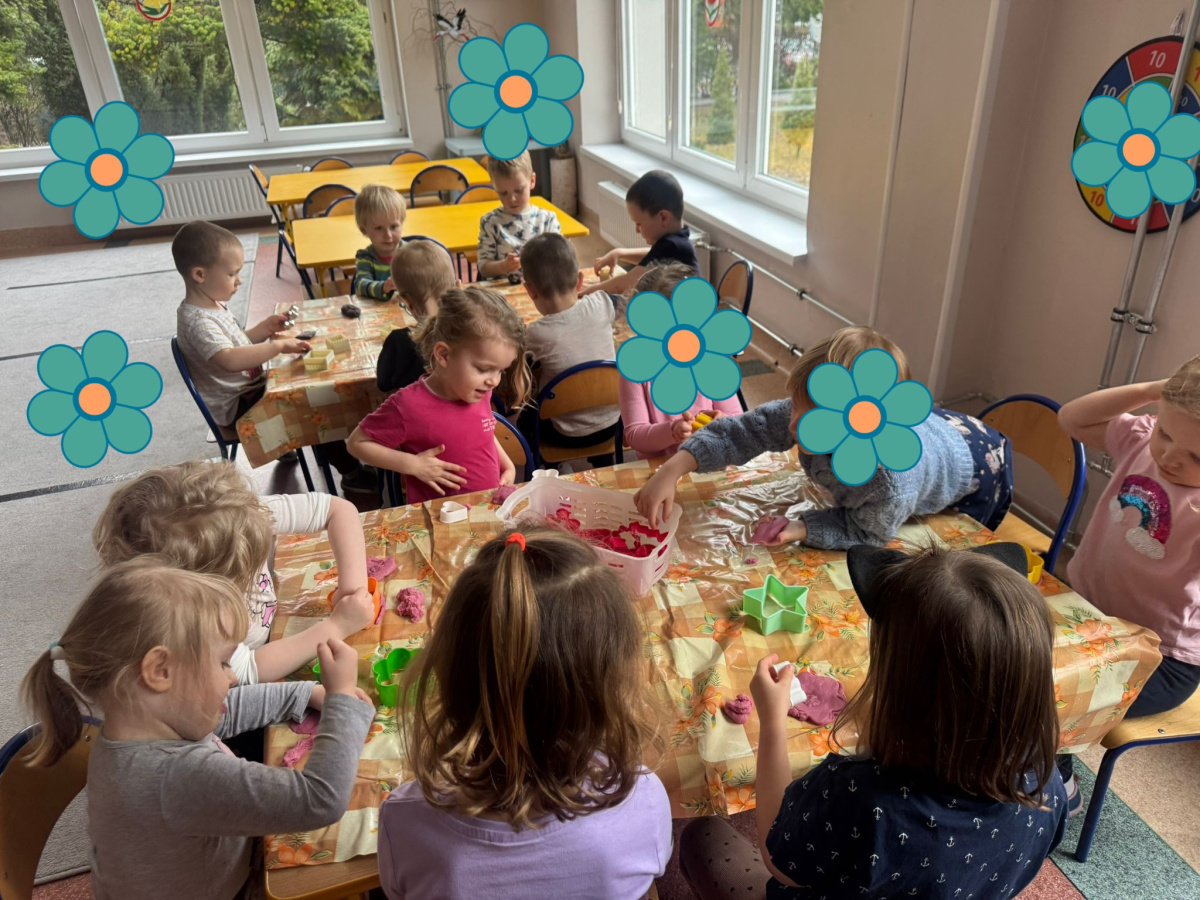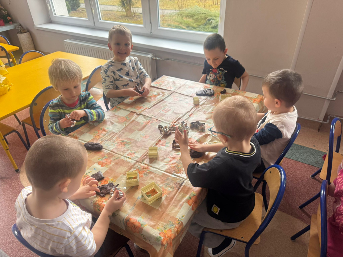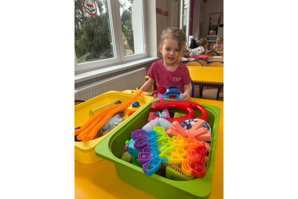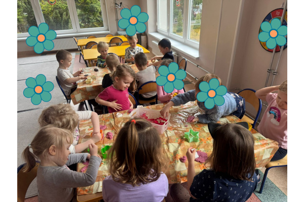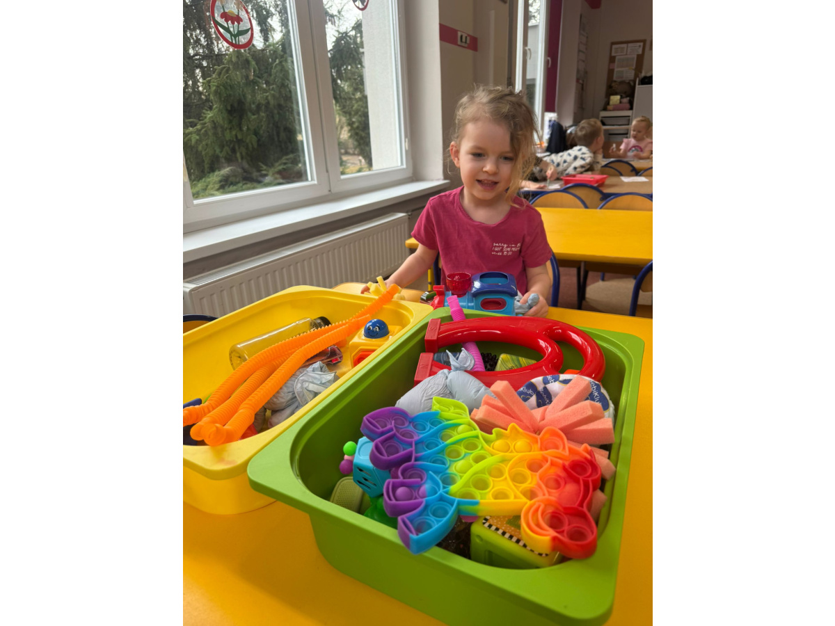 Dzieci miały możliwość poznawania świata poprzez różne zmysły. Bawiły się masami plastycznymi, jak malinowa i czekoladowa masa spożywcza – ugniatały, wałkowały i tworzyły własne, pomysłowe prace. Dużym zainteresowaniem cieszyły się również zabawki sensoryczne, w których dzieci ćwiczyły sprawność rąk. „Misie” chętnie korzystają także z różnorodnych gniotków, piłeczek i kolorowych gadżetów, które pomagały im się wyciszyć i skupić. Powyższe zajęcia sprawiły dzieciom ogromną radość, pobudziły ich ciekawość oraz wspierały rozwój motoryki małej i integracji sensorycznej.