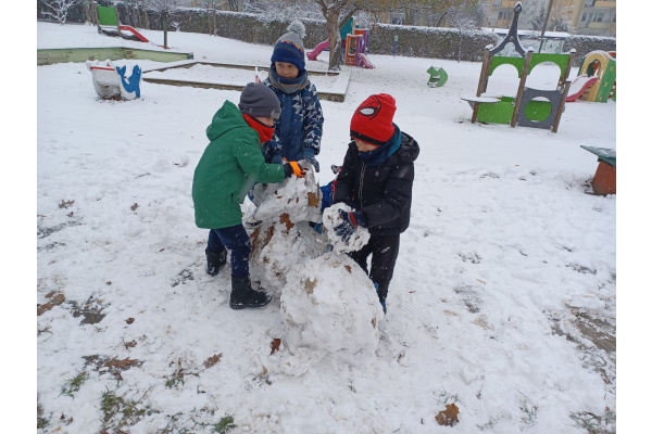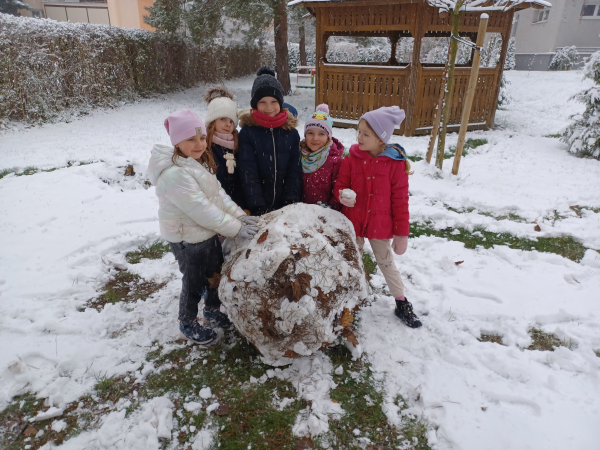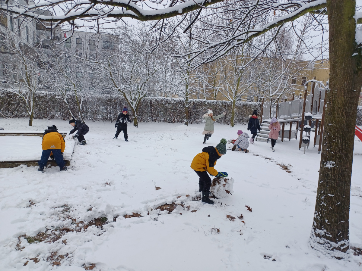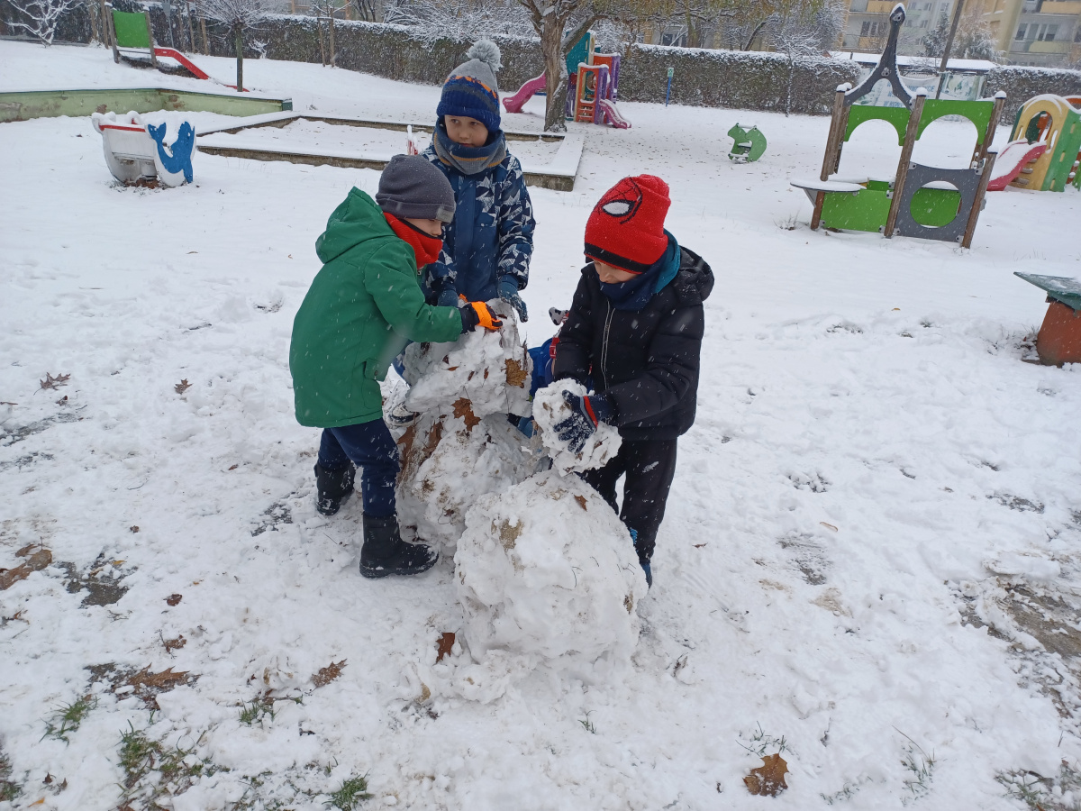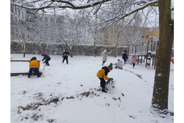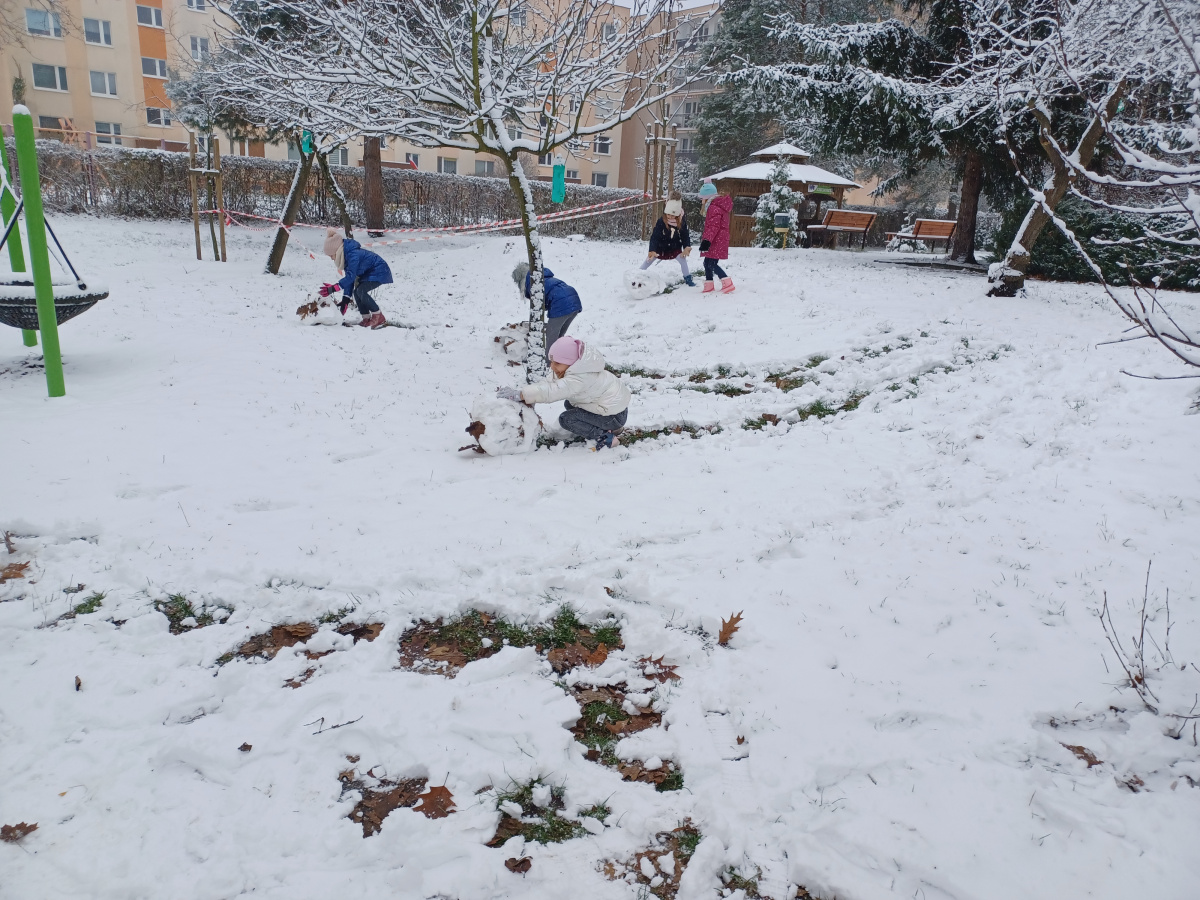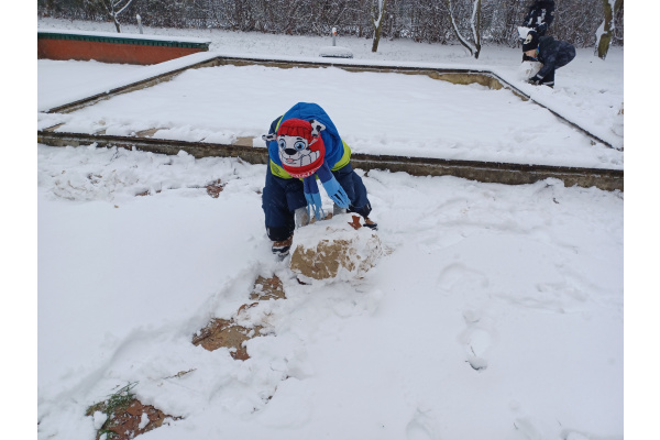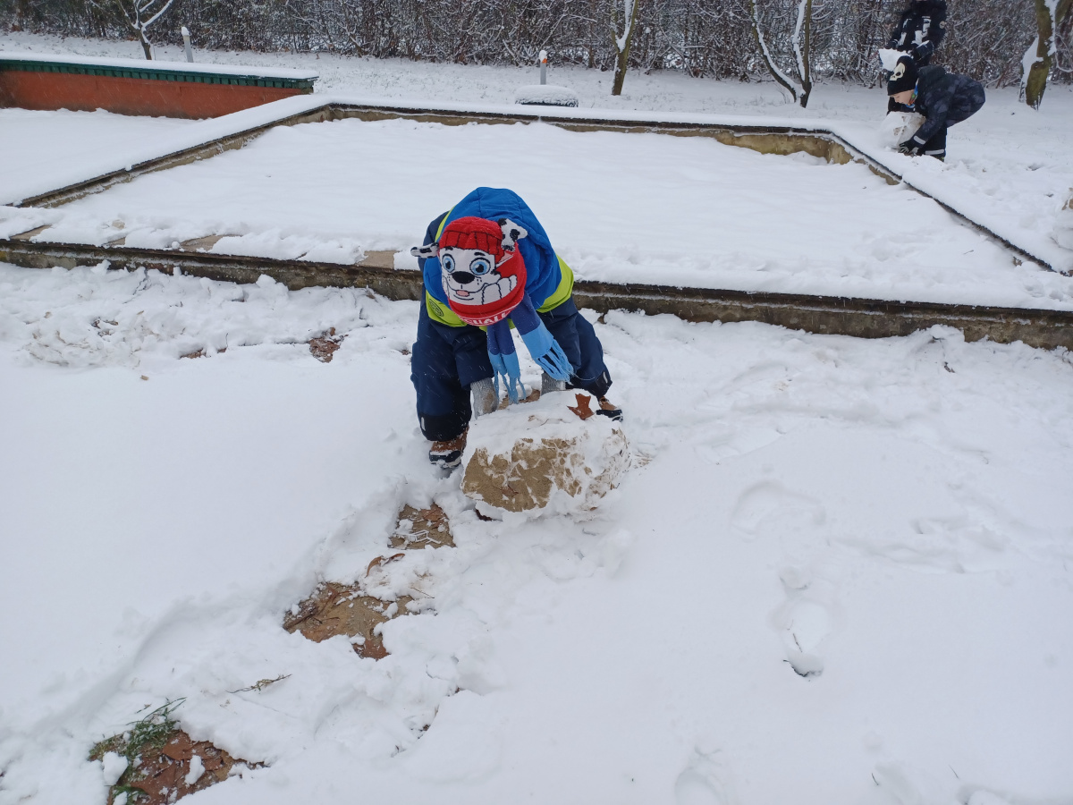 Dziś zawitała do nas prawdziwa zima - spadł śnieg. Korzystając z aury, wyszliśmy na plac. Dzieci uwielbiają zabawy na świeżym powietrzu. Przedszkolaki oddały się zimowemu szaleństwu, lepiąc śnieżne budowle, rzucając śnieżkami, kopiąc tunele. Było głośno i radośnie.