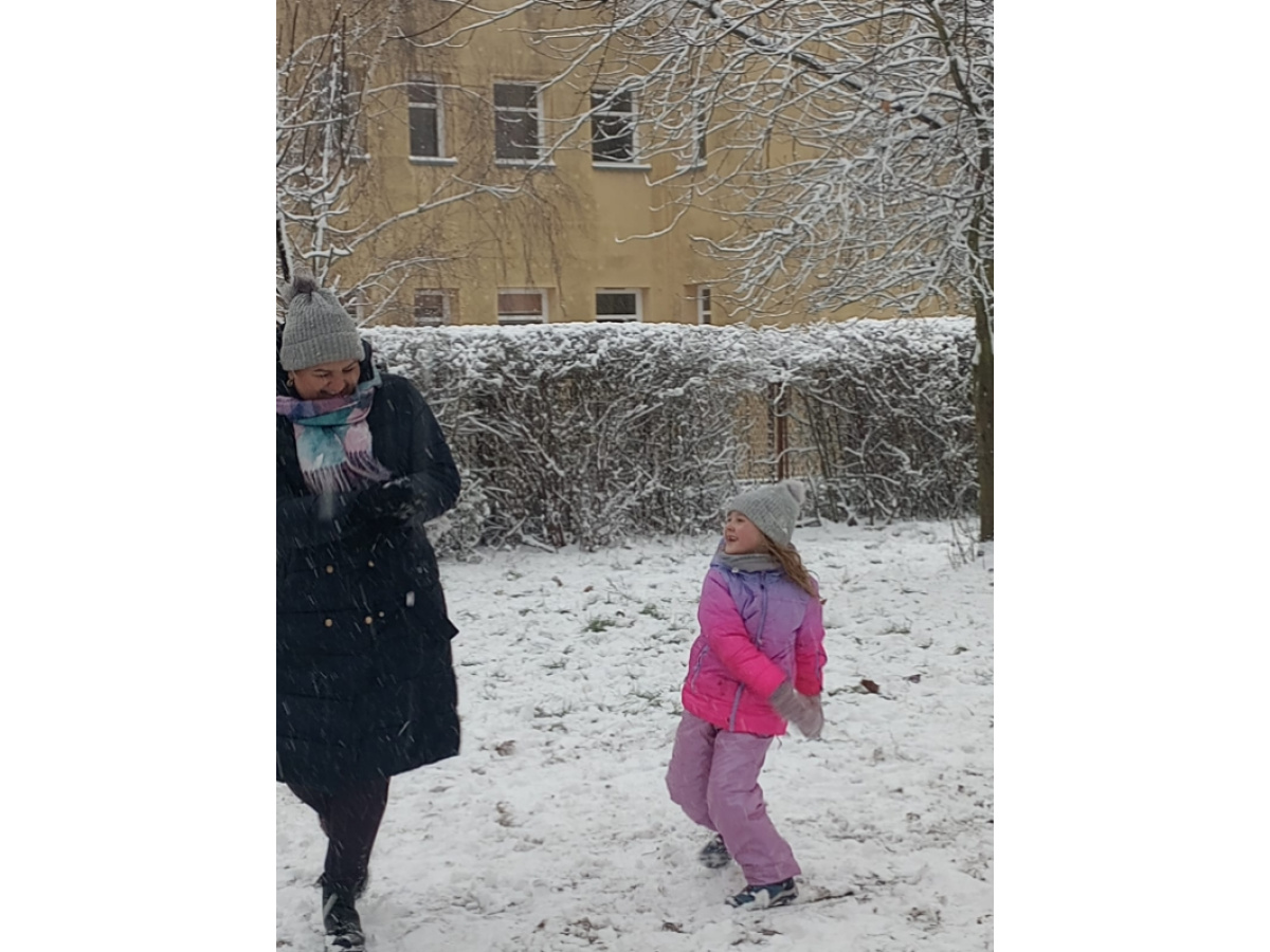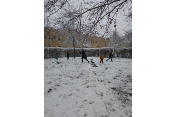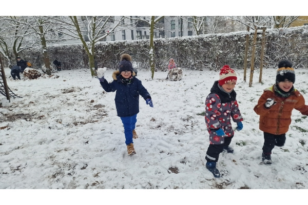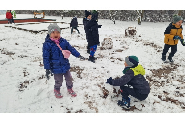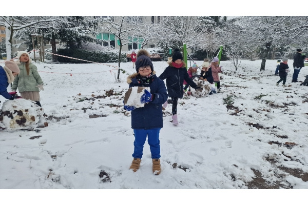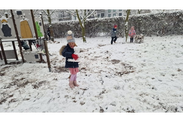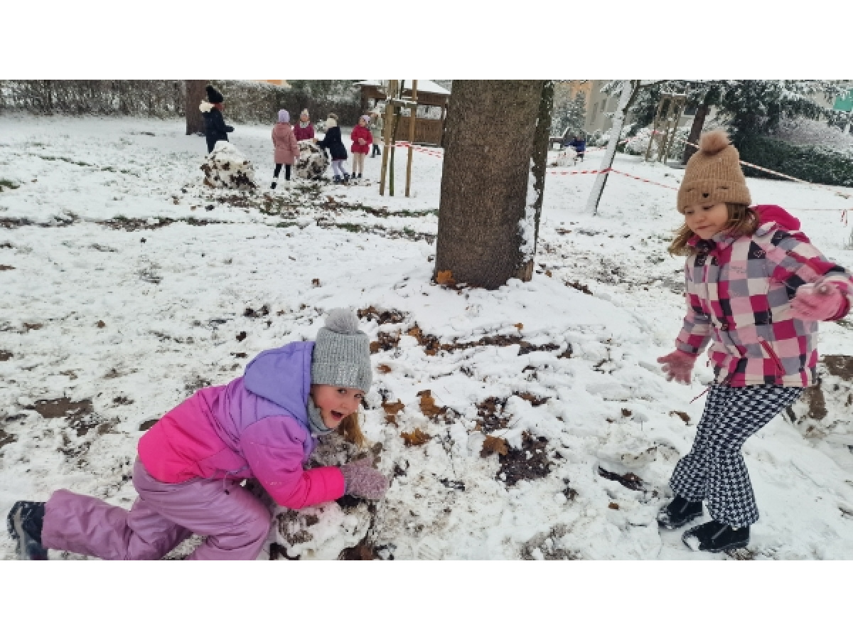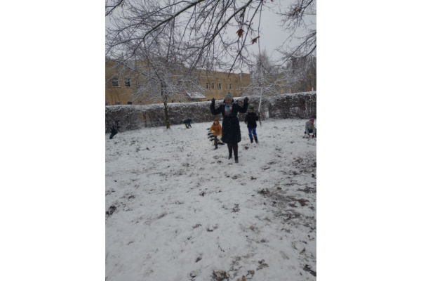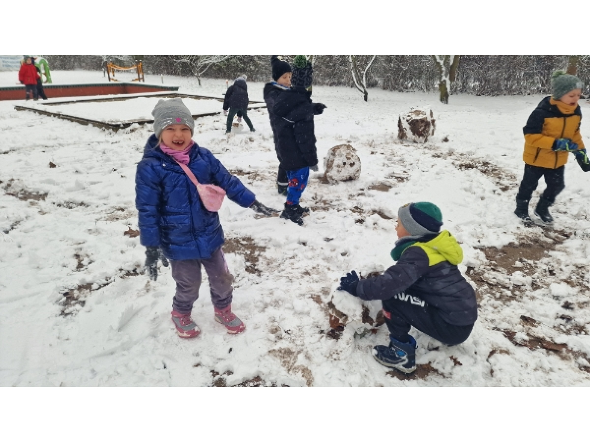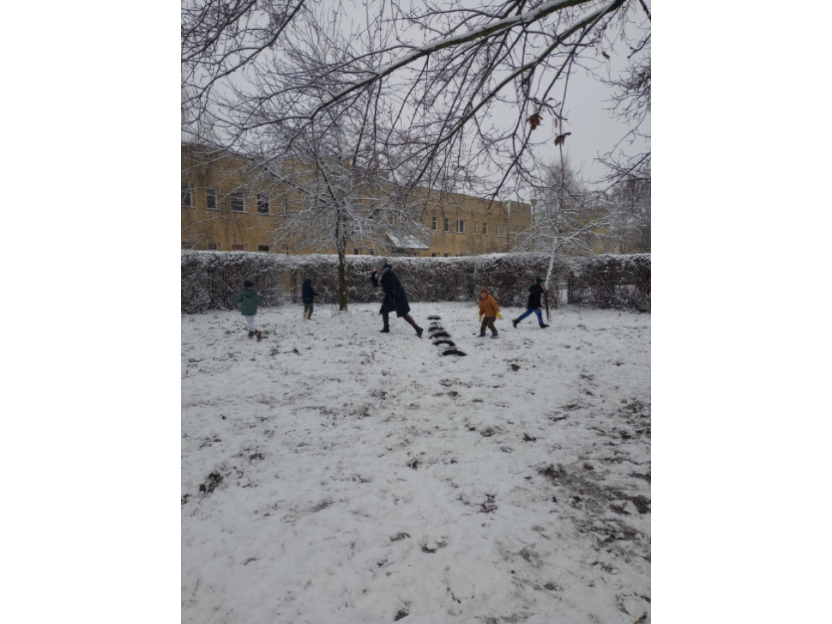 Gdy spadł pierwszy śnieg, nie pozostało nic innego jak iść się w nim pobawić! Były wielkie śnieżne kule, wspólne rzuty śnieżkami, a także biegi i skoki w sniegu. Zabawa była przednia!