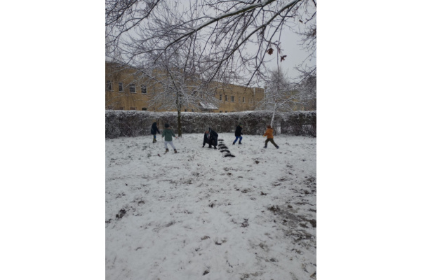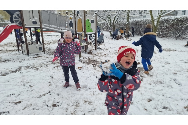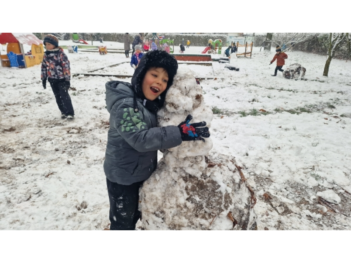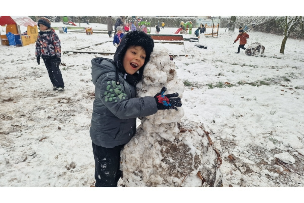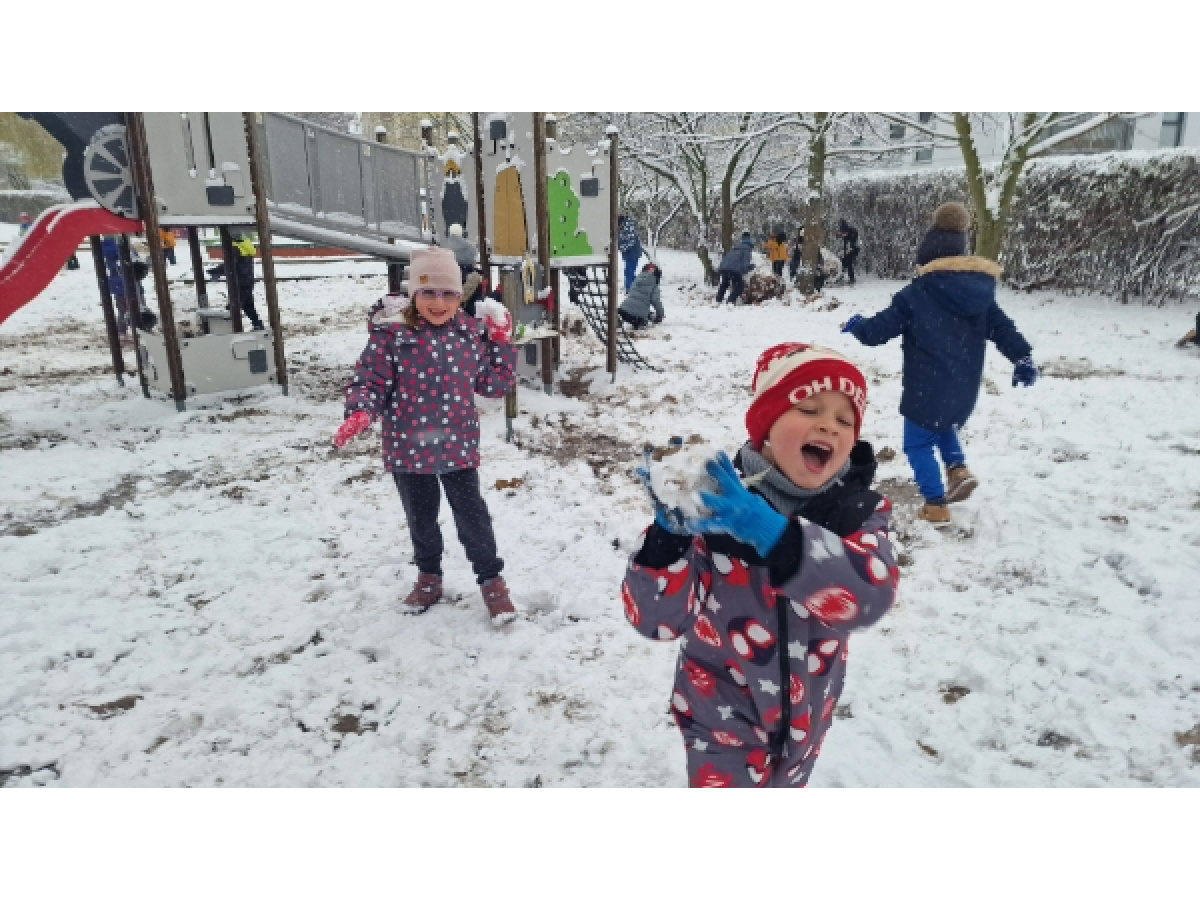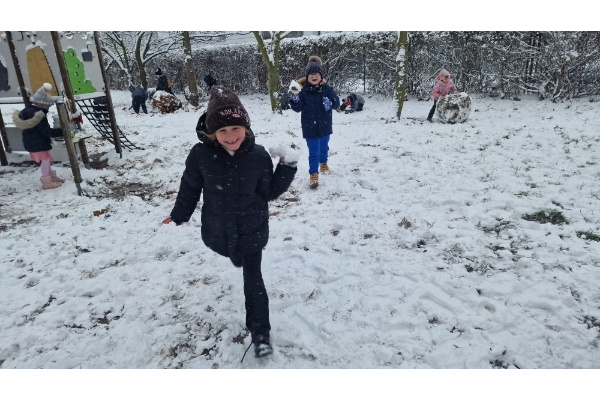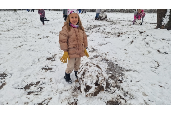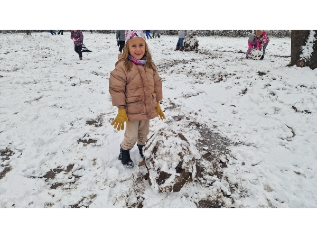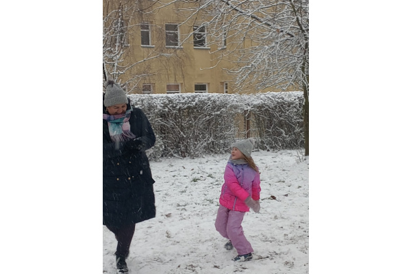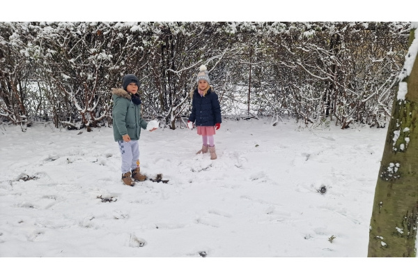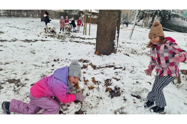 Gdy spadł pierwszy śnieg, nie pozostało nic innego jak iść się w nim pobawić! Były wielkie śnieżne kule, wspólne rzuty śnieżkami, a także biegi i skoki w sniegu. Zabawa była przednia!