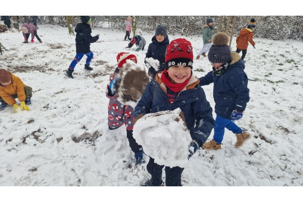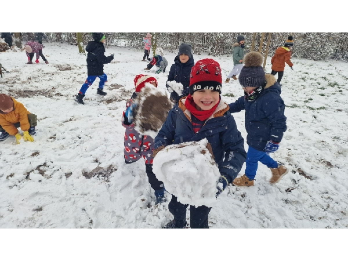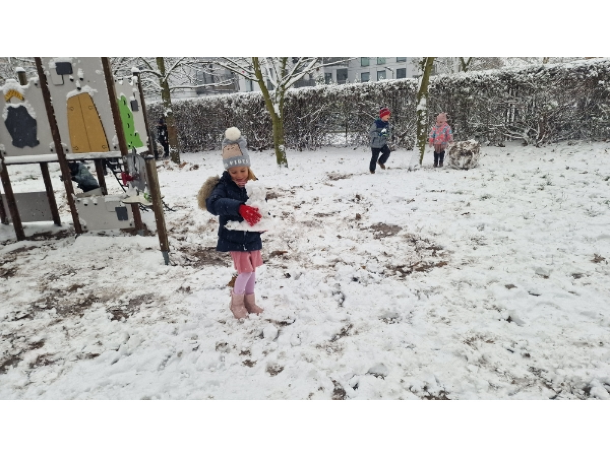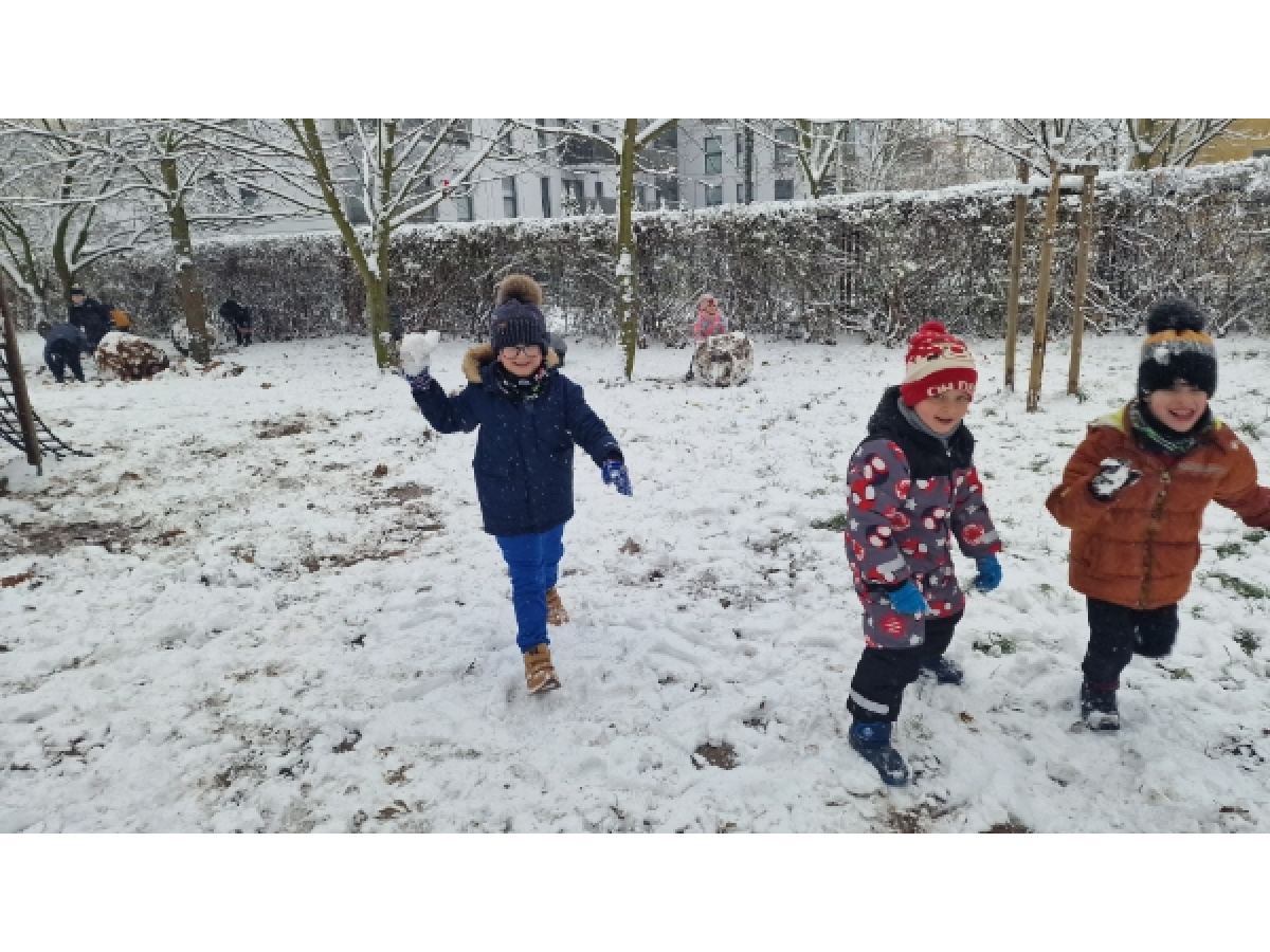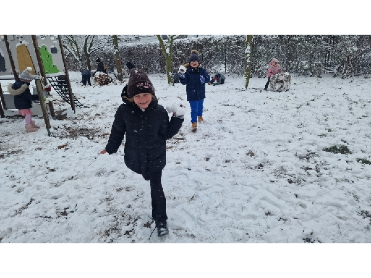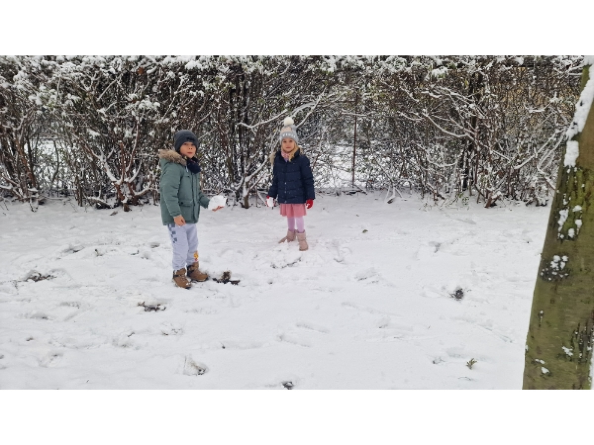 Gdy spadł pierwszy śnieg, nie pozostało nic innego jak iść się w nim pobawić! Były wielkie śnieżne kule, wspólne rzuty śnieżkami, a także biegi i skoki w sniegu. Zabawa była przednia!