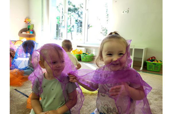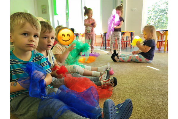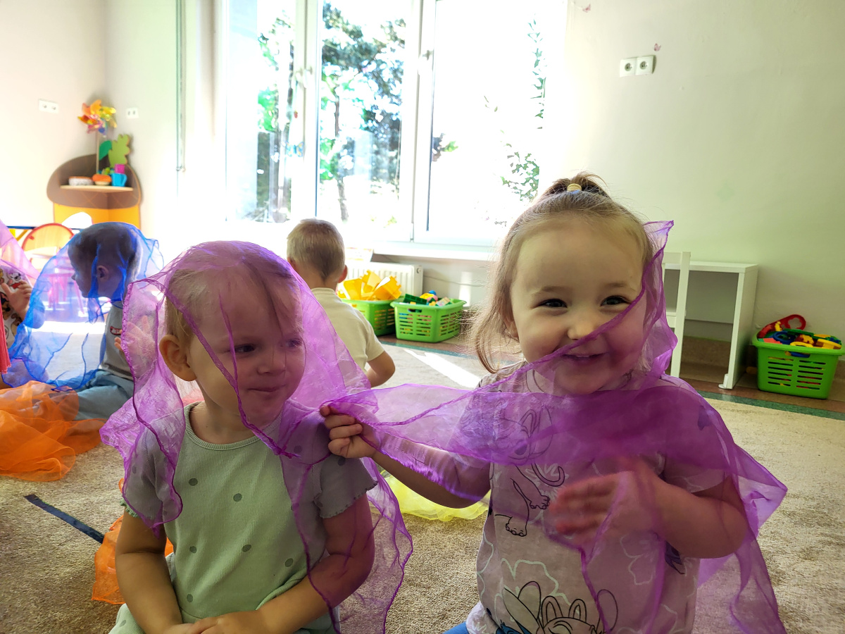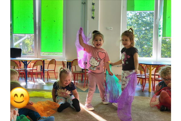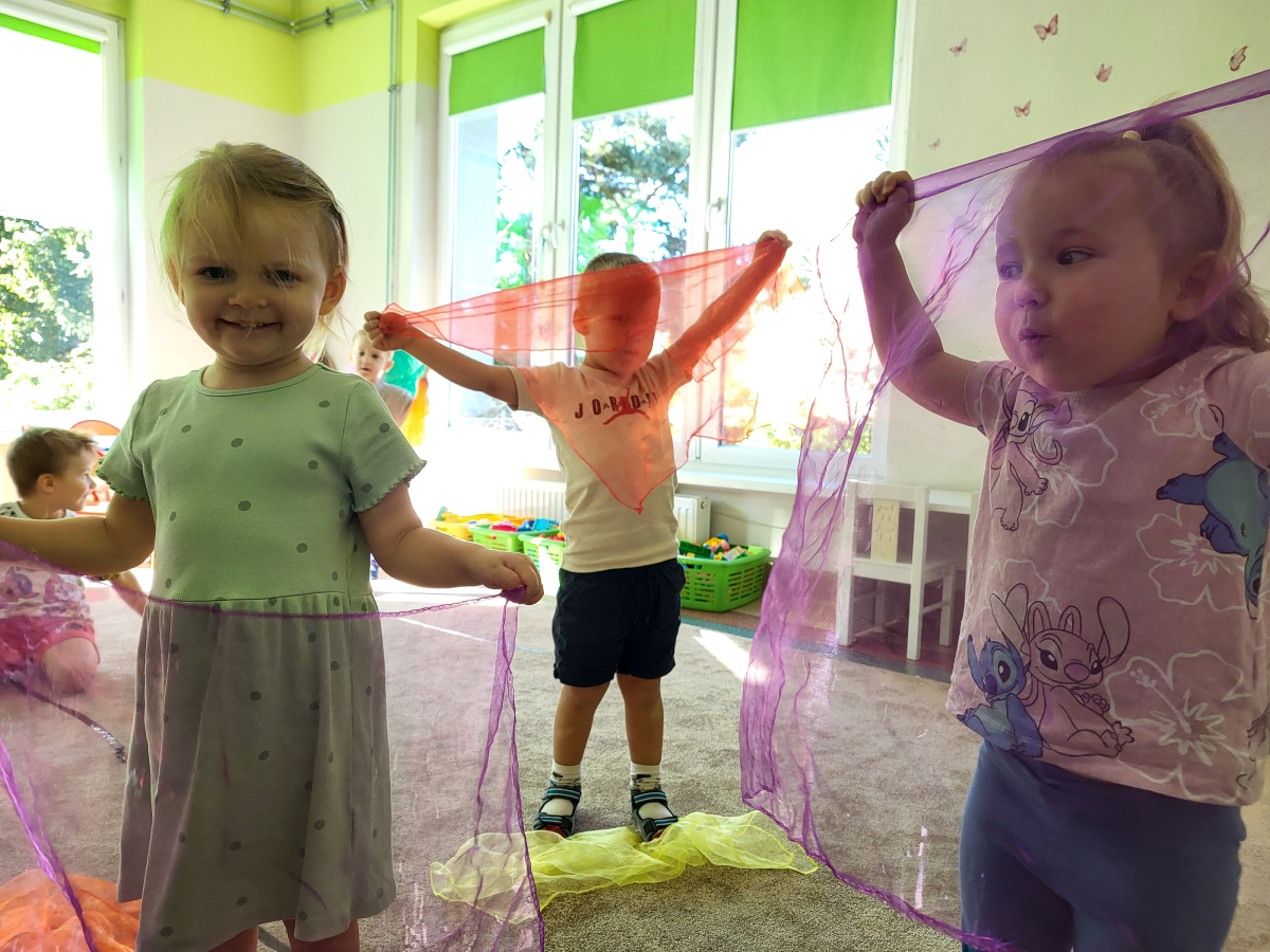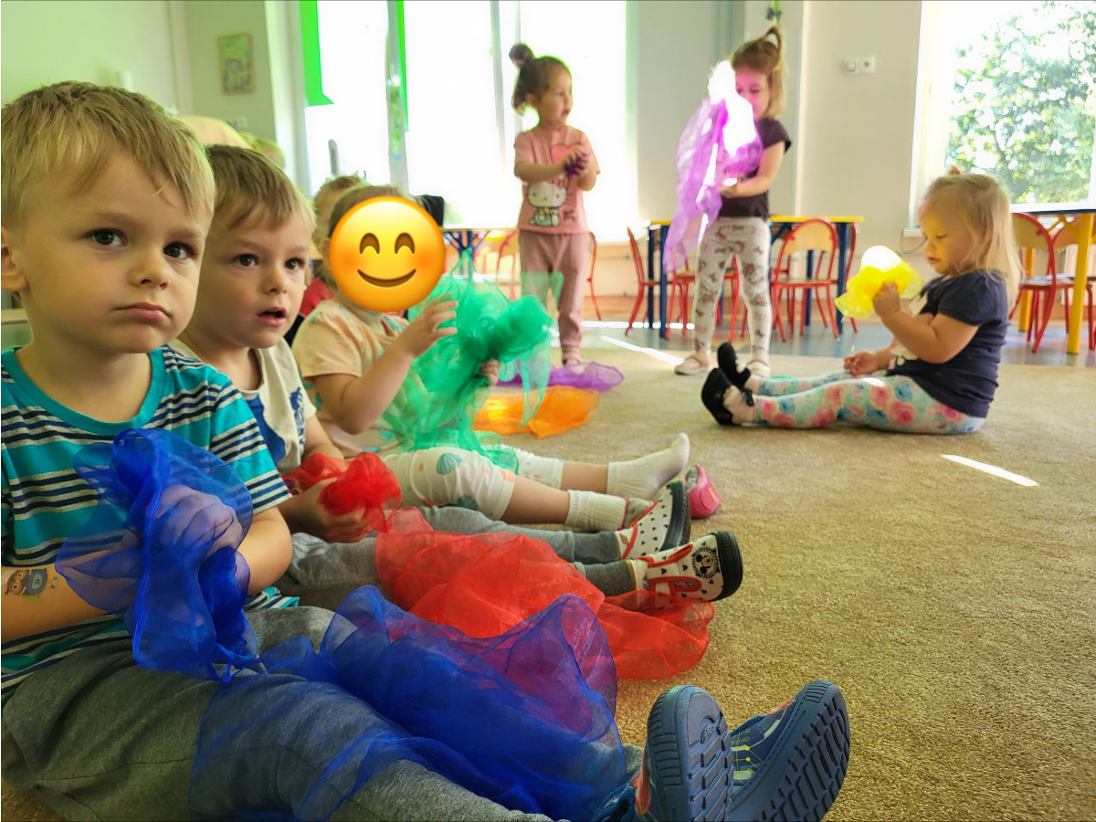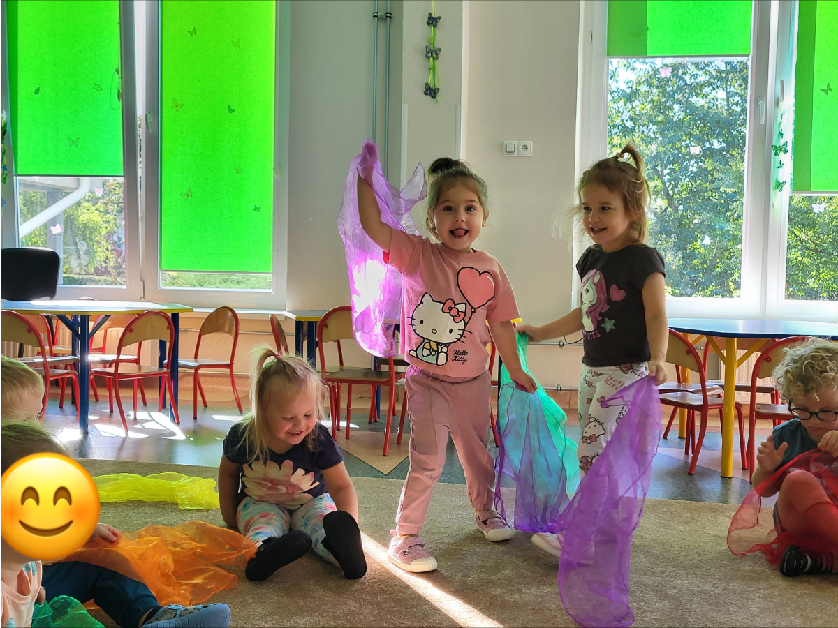 Zajęcia muzyczne z chustkami bardzo sie wszystkim motylkom podobały, odkrywanie muzyki klasycznej w taki sposób jest bardzo twórcze.
